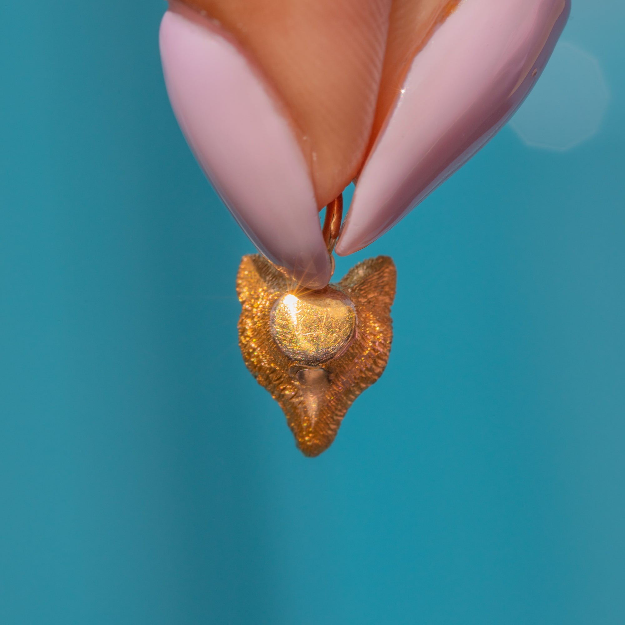 This antique 18ct Gold fox pendant is bursting with personality! We adore the delicate Goldwork, from the fur detailing to the sweet ears and, not forgetting, the scintillating Diamonds creating that twinkle in her eyes.