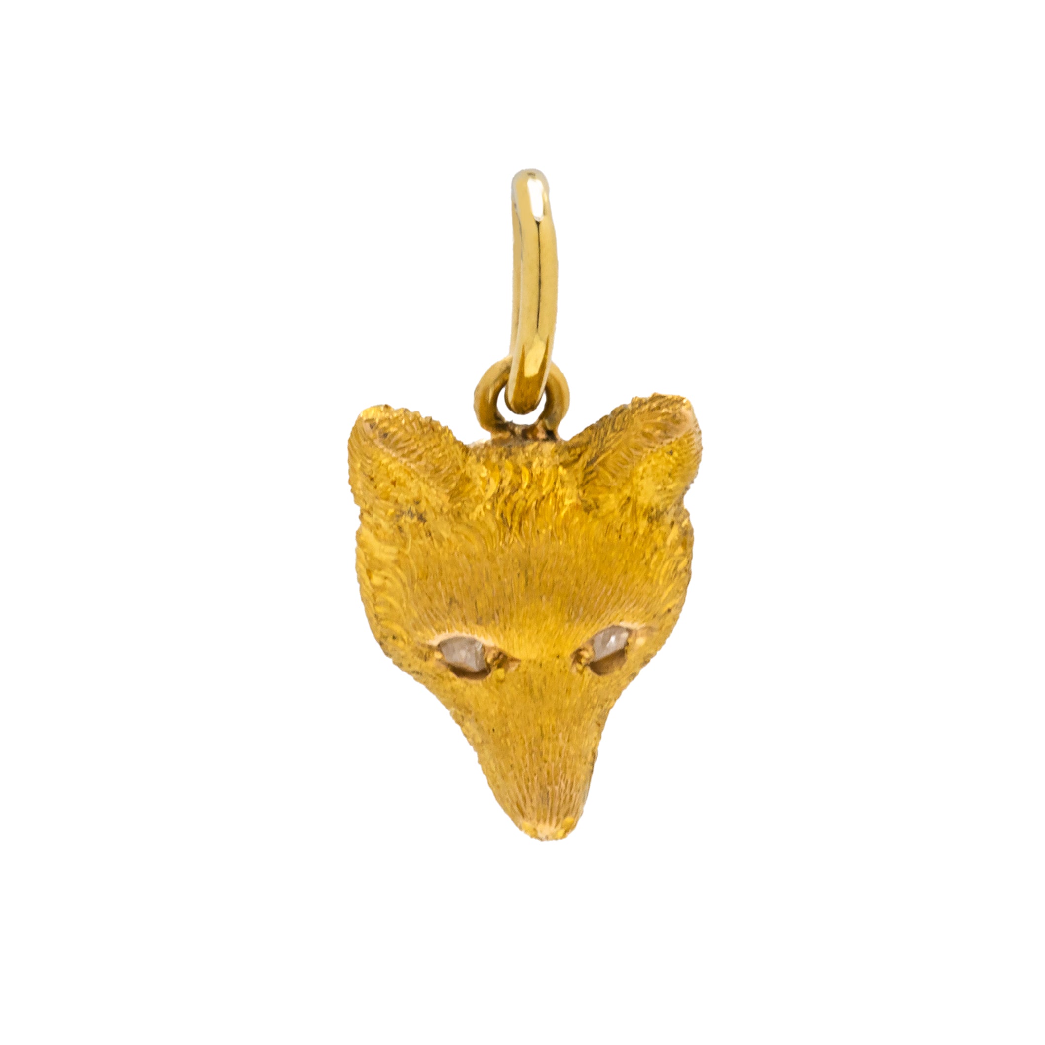 Antique 18ct Gold Fox Charm with Diamond Eyes