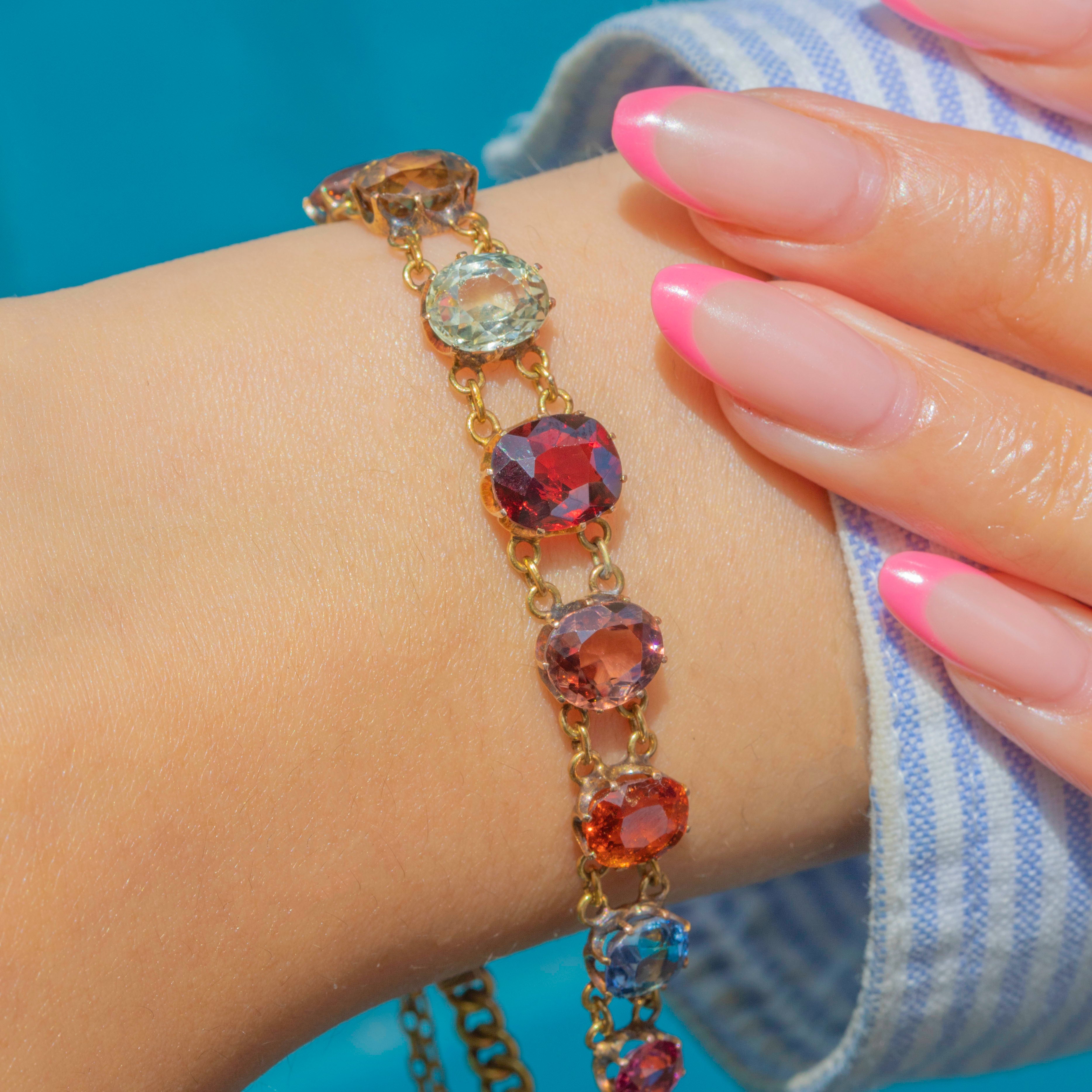 Each gemstone is set within quintessentially Victorian 18ct Gold claw settings, connected by a chunky glossy chain to create a luxurious piece of wrist candy for you to feast your eyes upon. The perfect piece to inject a pop of colour into your collection, this antique riviere bracelet is a must-have!