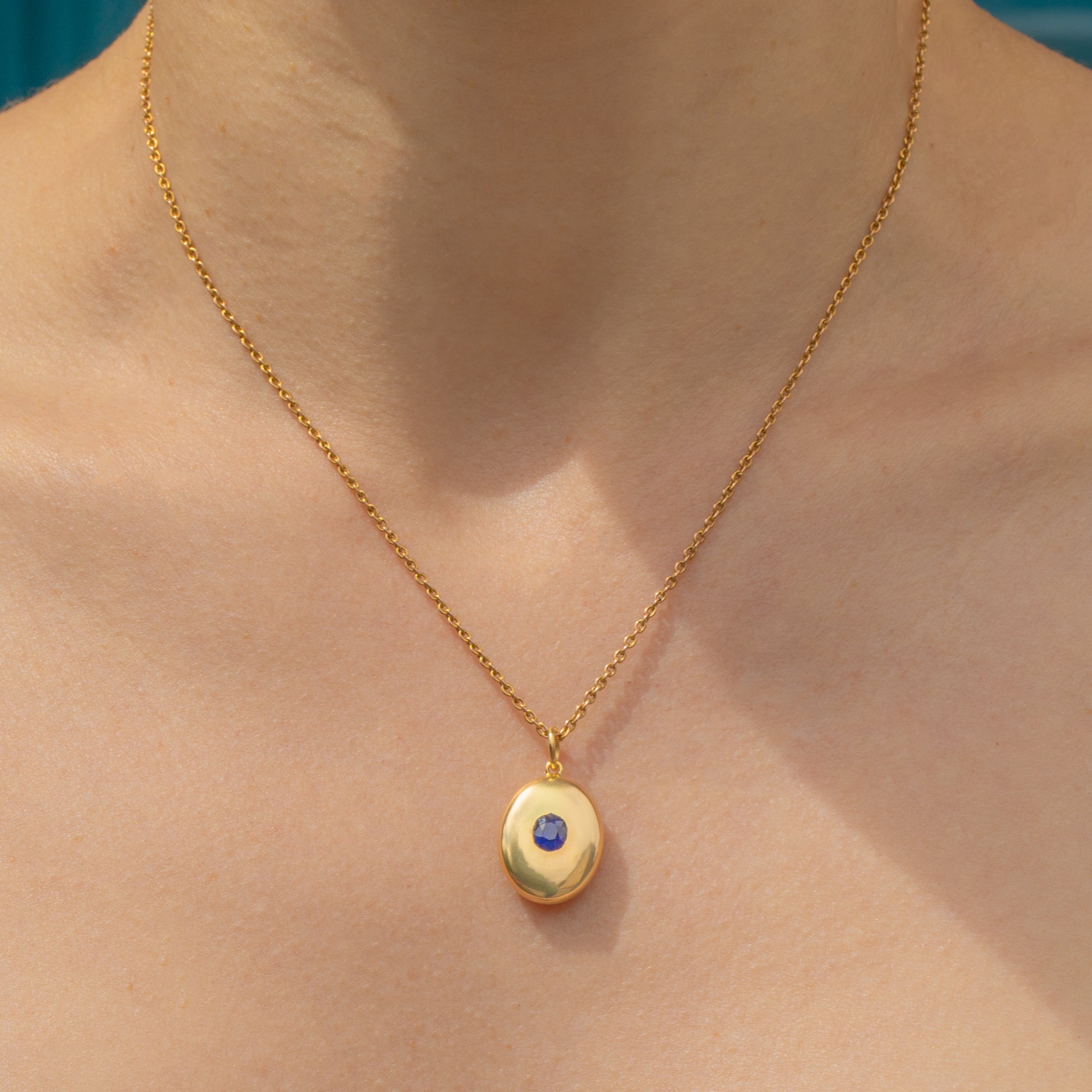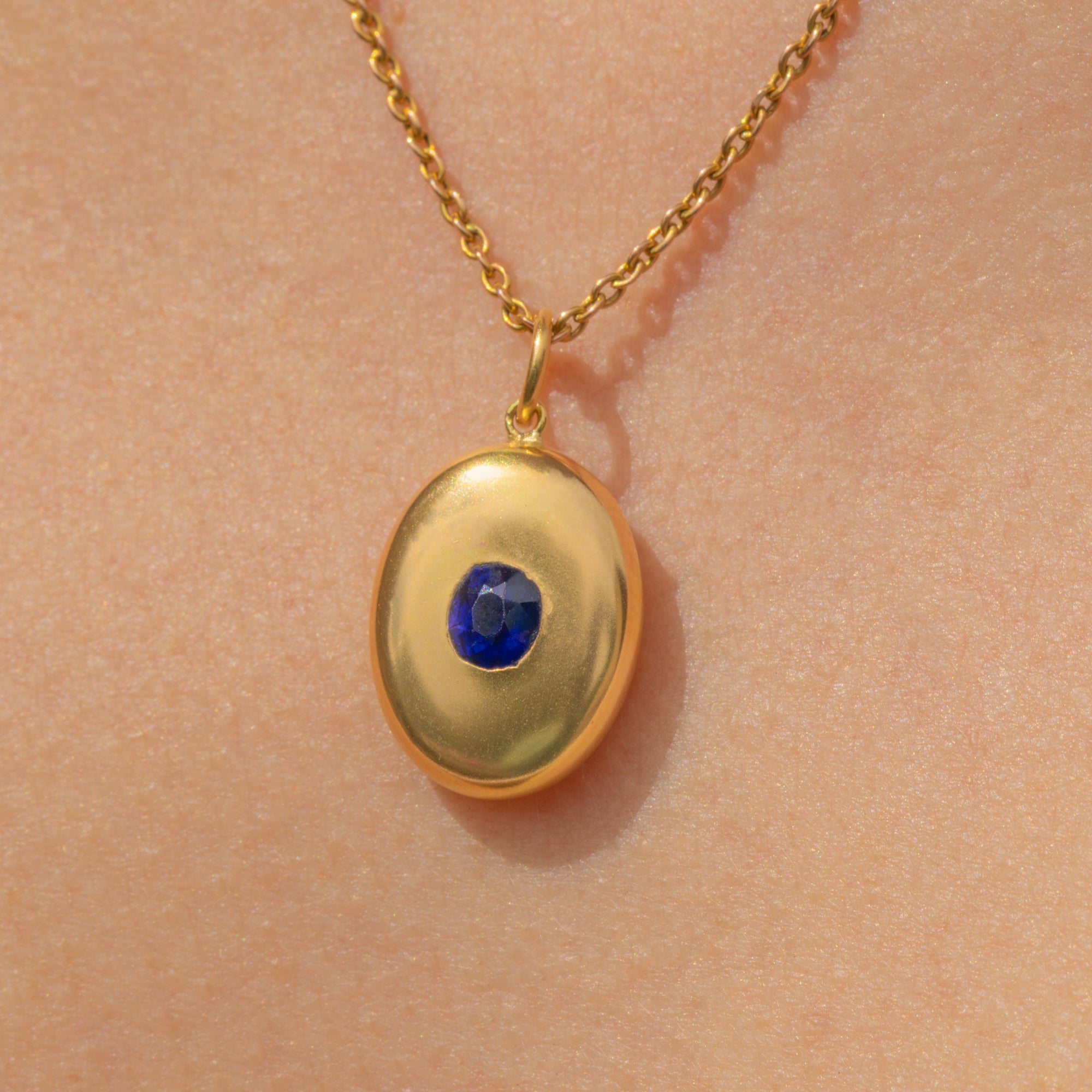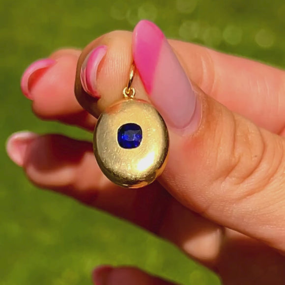 Her glistening Sapphire is encompassed by a halo of buttery 18ct Gold, with a curvaceous and puffy form that will sit comfortably against your chest. Crafted in the 19th century, this Victorian Sapphire pendant possesses a timeless appeal; you are bound to be reaching for her time and time again.