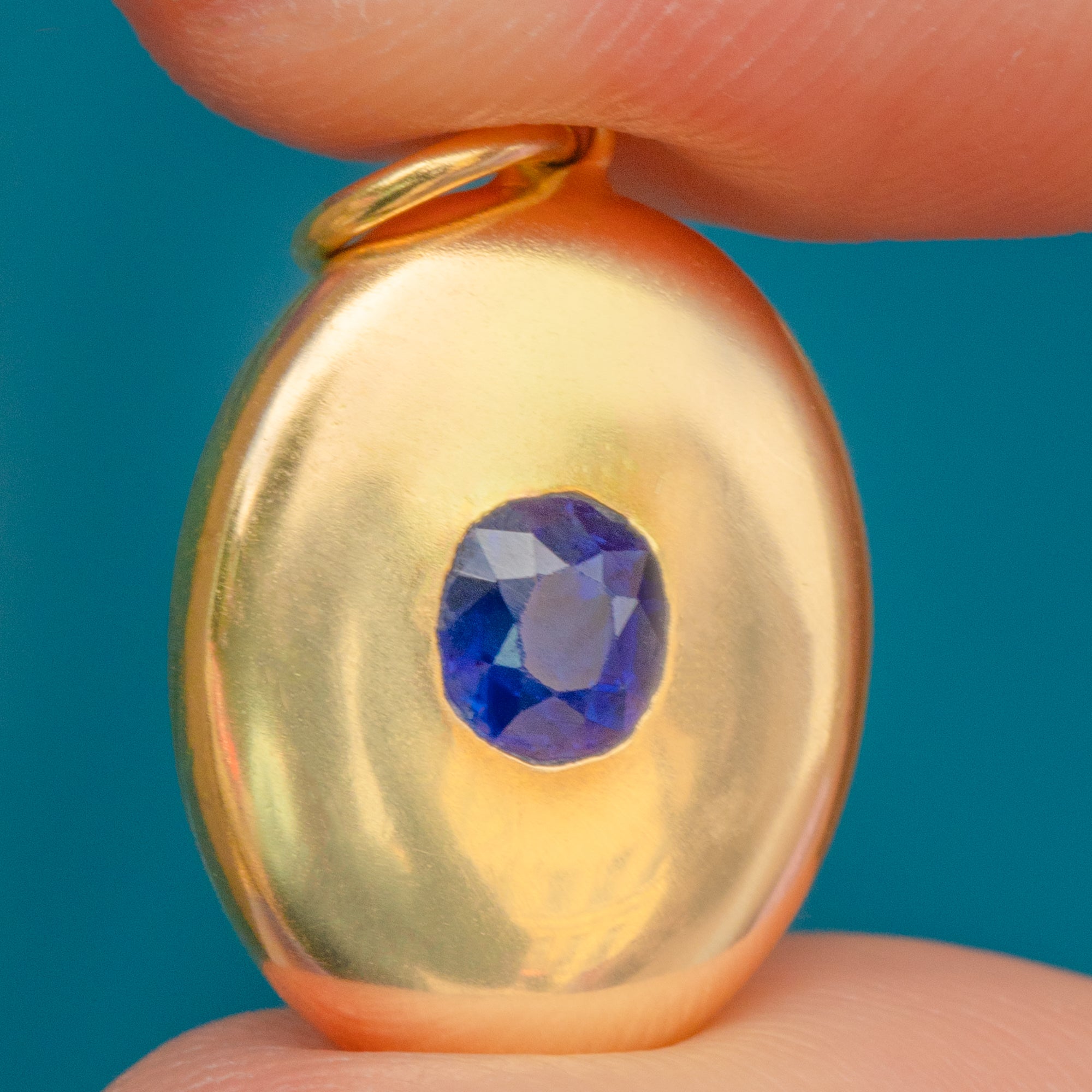 VERY GOOD-EXCELLENT. This antique 18ct Gold natural Ceylon Sapphire pendant is in superb condition! The Sapphire sits securely within its setting offering a mesmerising sparkle, and although there is some slight wear to the edge of the facets, this can only be seen under close inspection. The 18ct Gold has wonderful reflective qualities with a mouthwatering buttery hue throughout. Suspended from a soldered jump-ring, you can wear this Sapphire pendant with the utmost confidence!