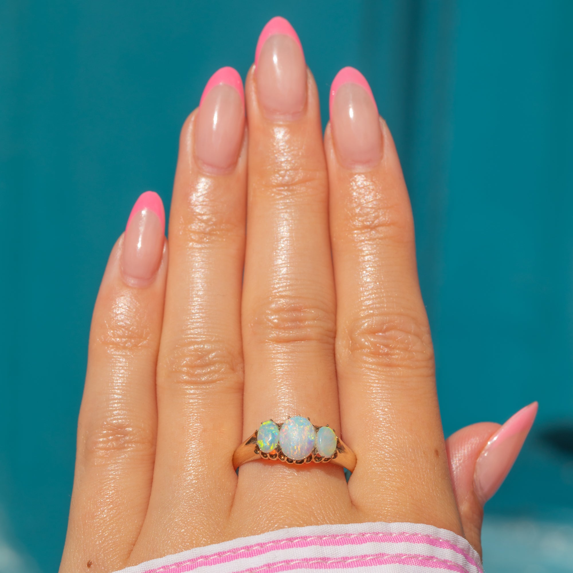 Antique 18ct Gold Opal Three Stone Ring, 1.00ct