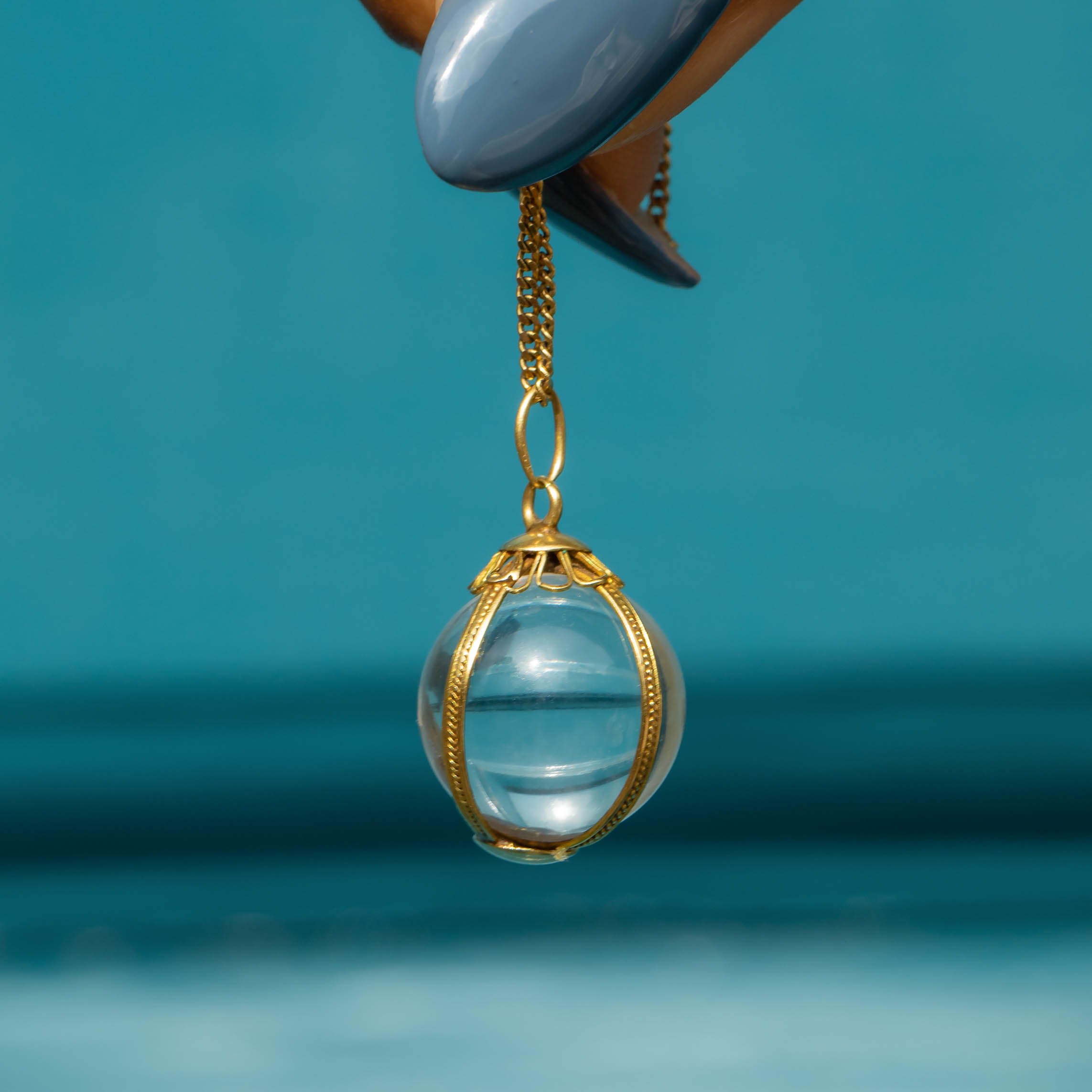 Antique 18ct Gold Rock Crystal Pools of Light Orb Pendant