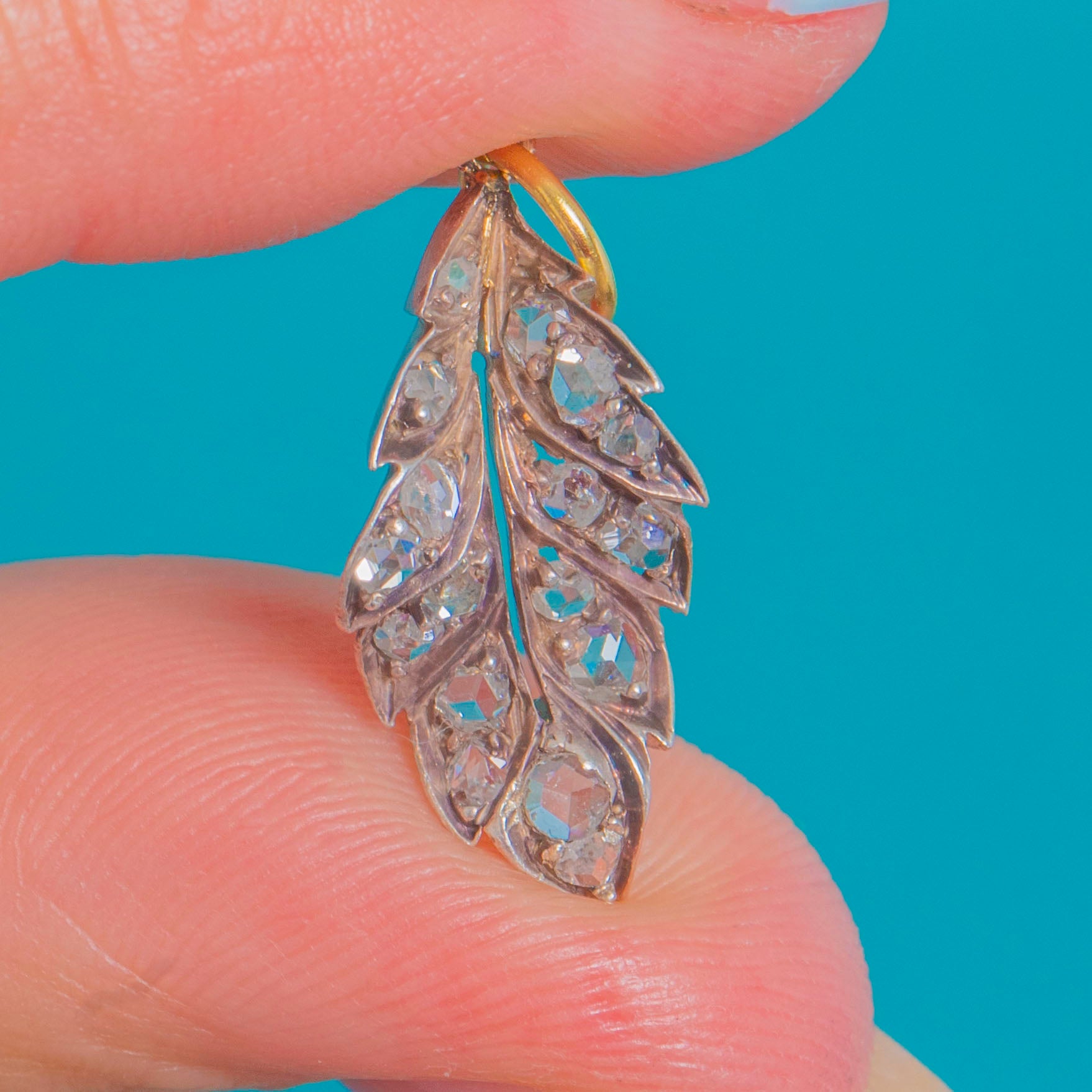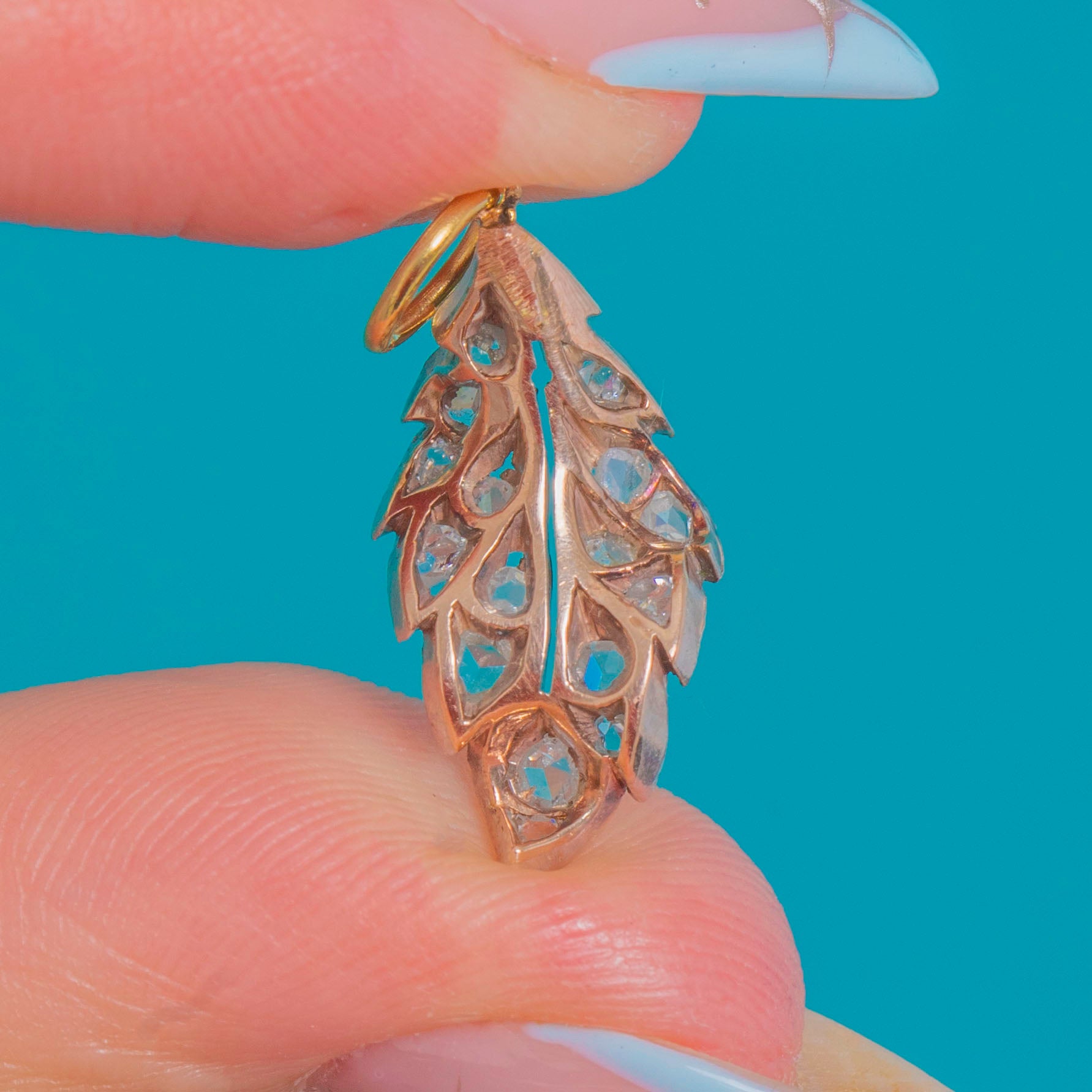 Antique 18ct Gold Rose-Cut Diamond Leaf Charm