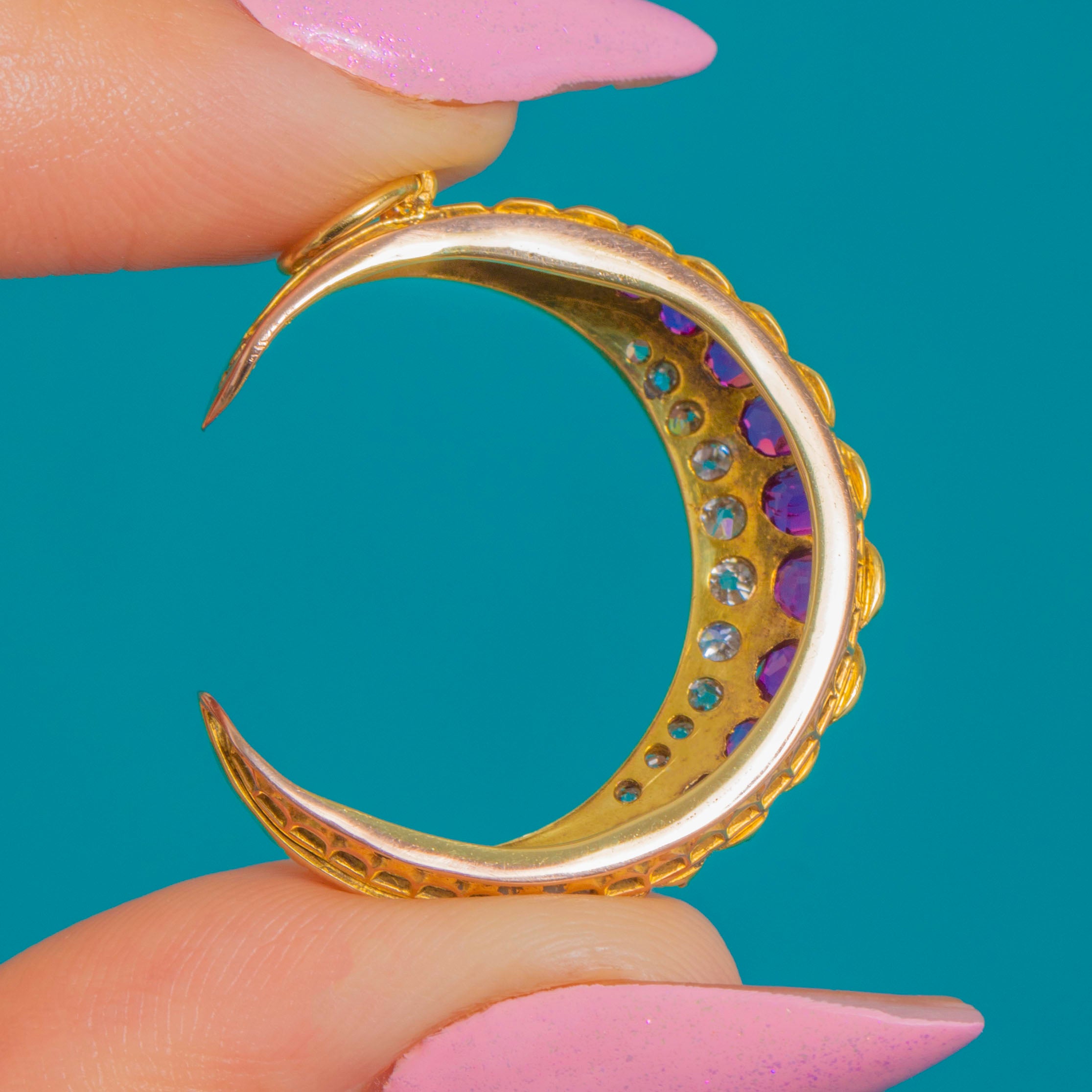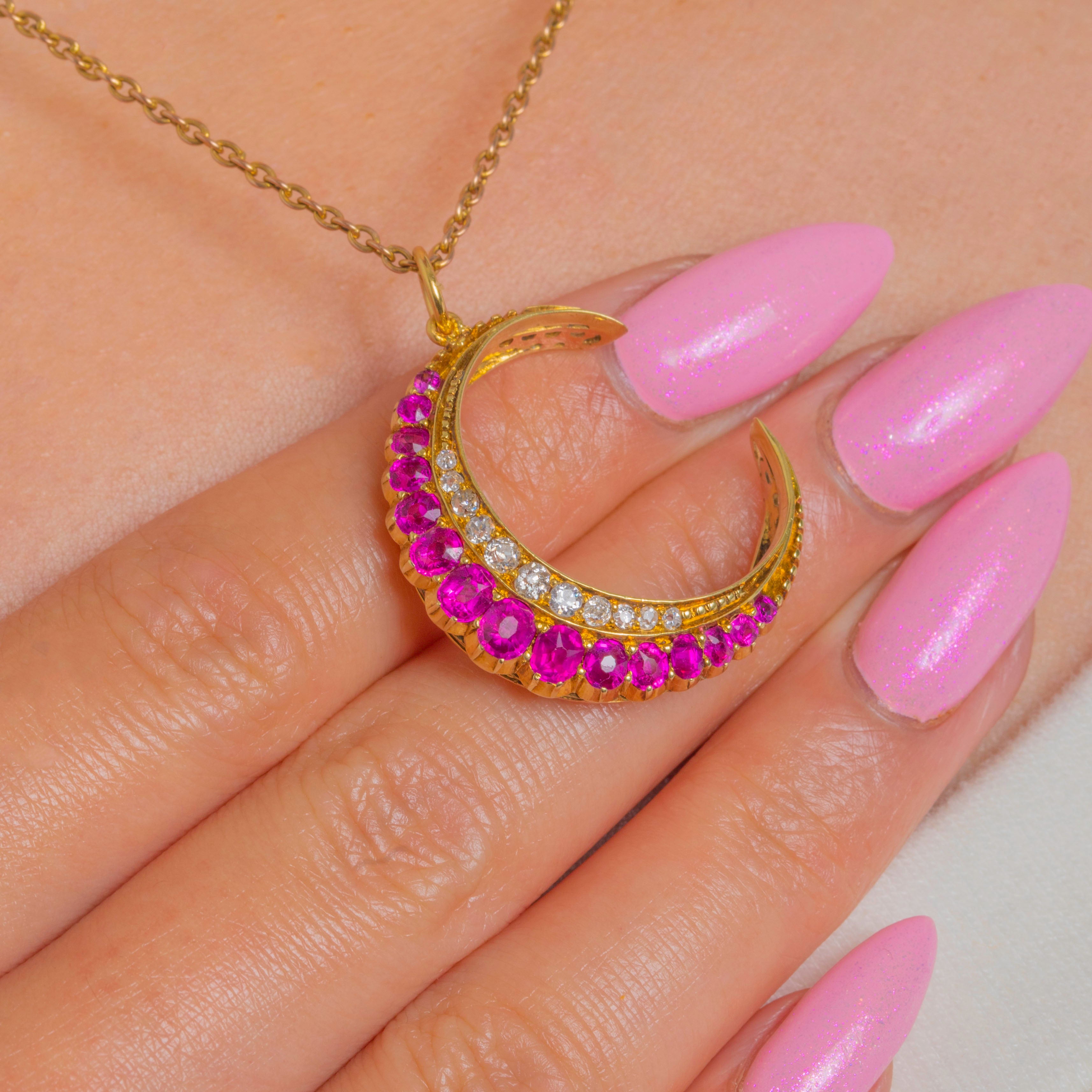 Antique 18ct Gold Ruby Diamond Crescent Moon Pendant