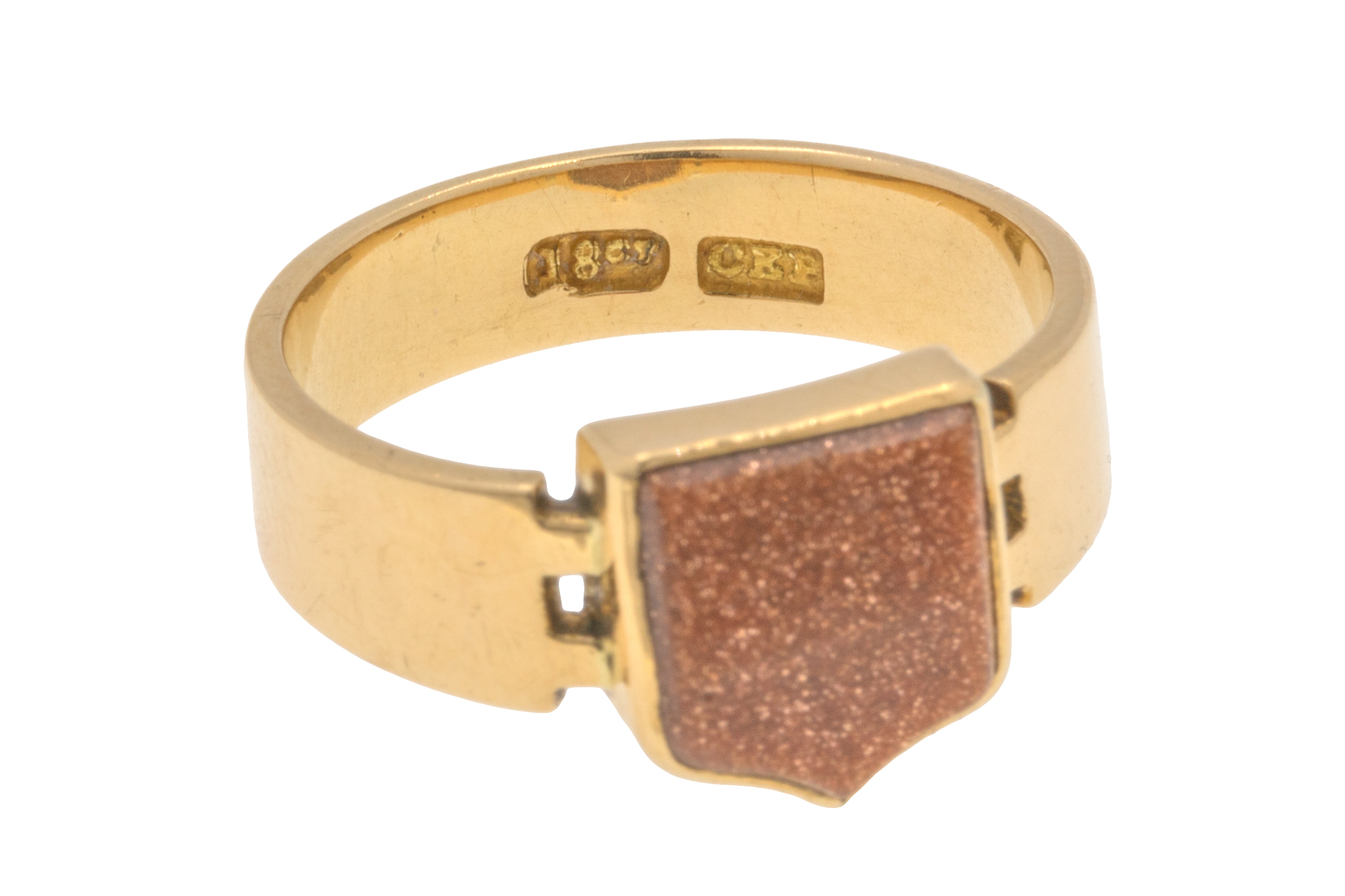 Antique 18ct Gold Signet Ring- Goldstone Shield