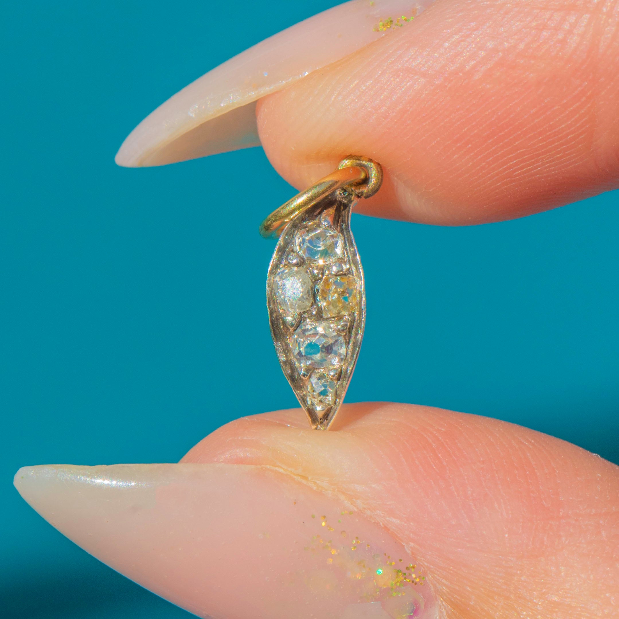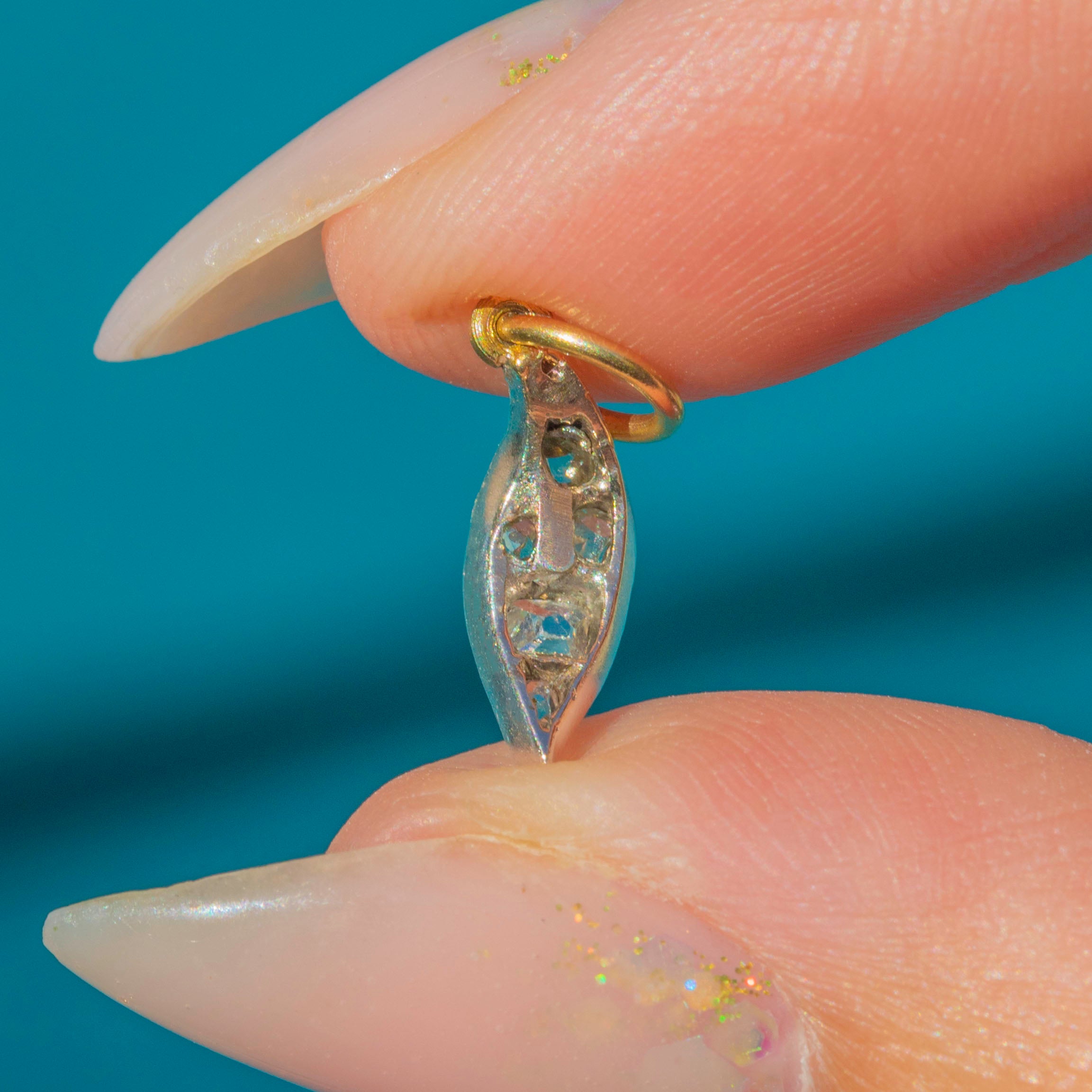 Set with glittering old mine-cut Diamonds, each stone catches the light with that distinctive antique sparkle collectors love. A dainty piece with plenty of character, this versatile charm looks wonderful worn alone on a fine chain or styled as part of a charm bracelet.