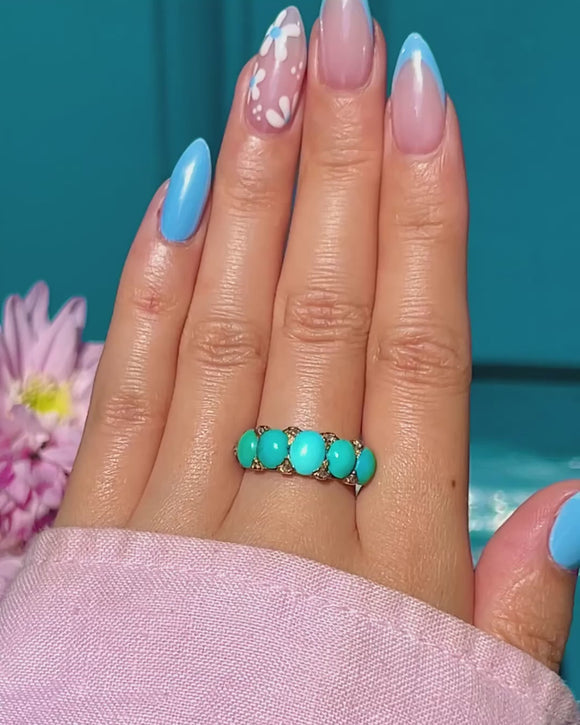 Antique 18ct Gold Turquoise Diamond Five Stone Ring
