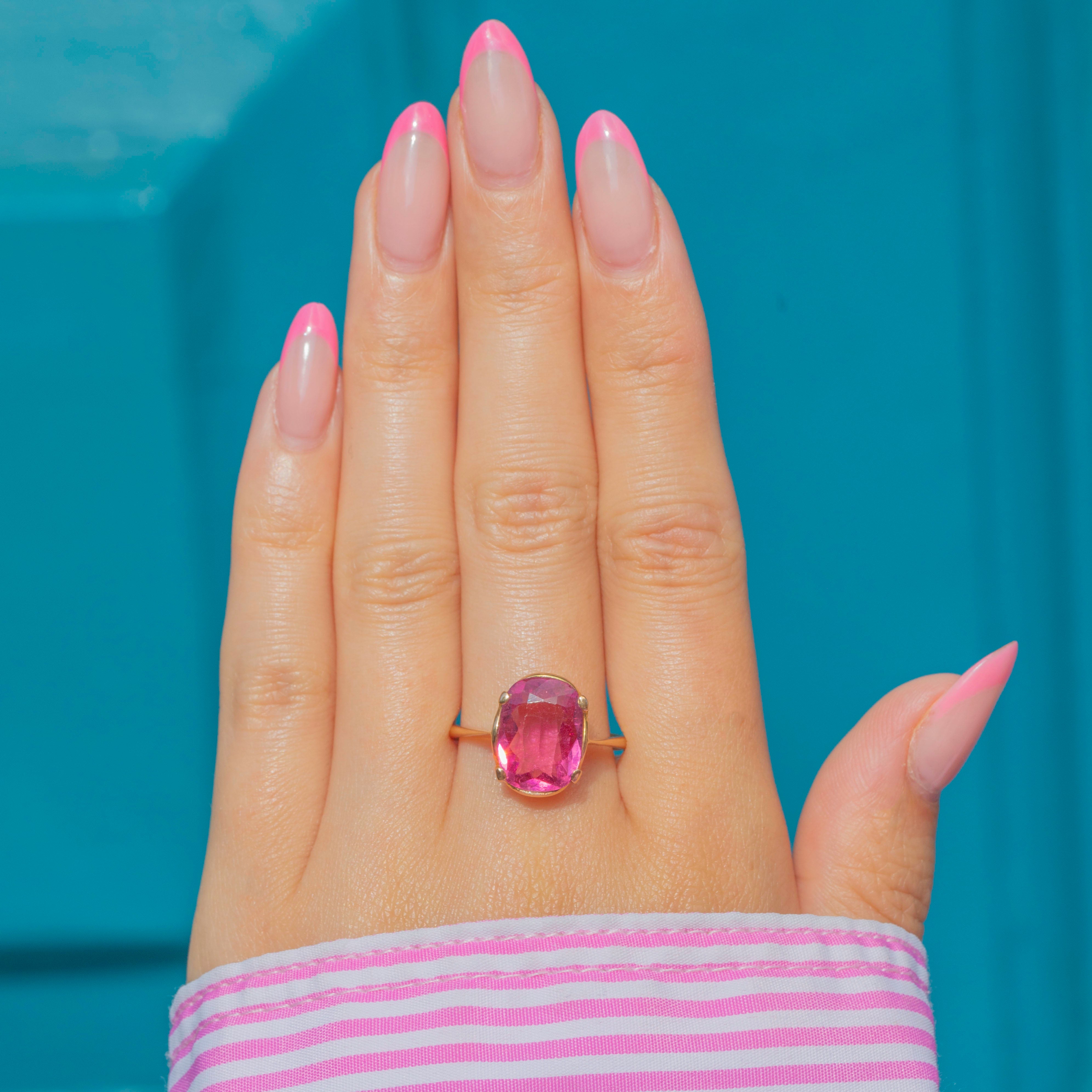 Add a pop of colour to your collection with this vibrant antique 22ct Gold Pink Tourmaline solitaire ring!