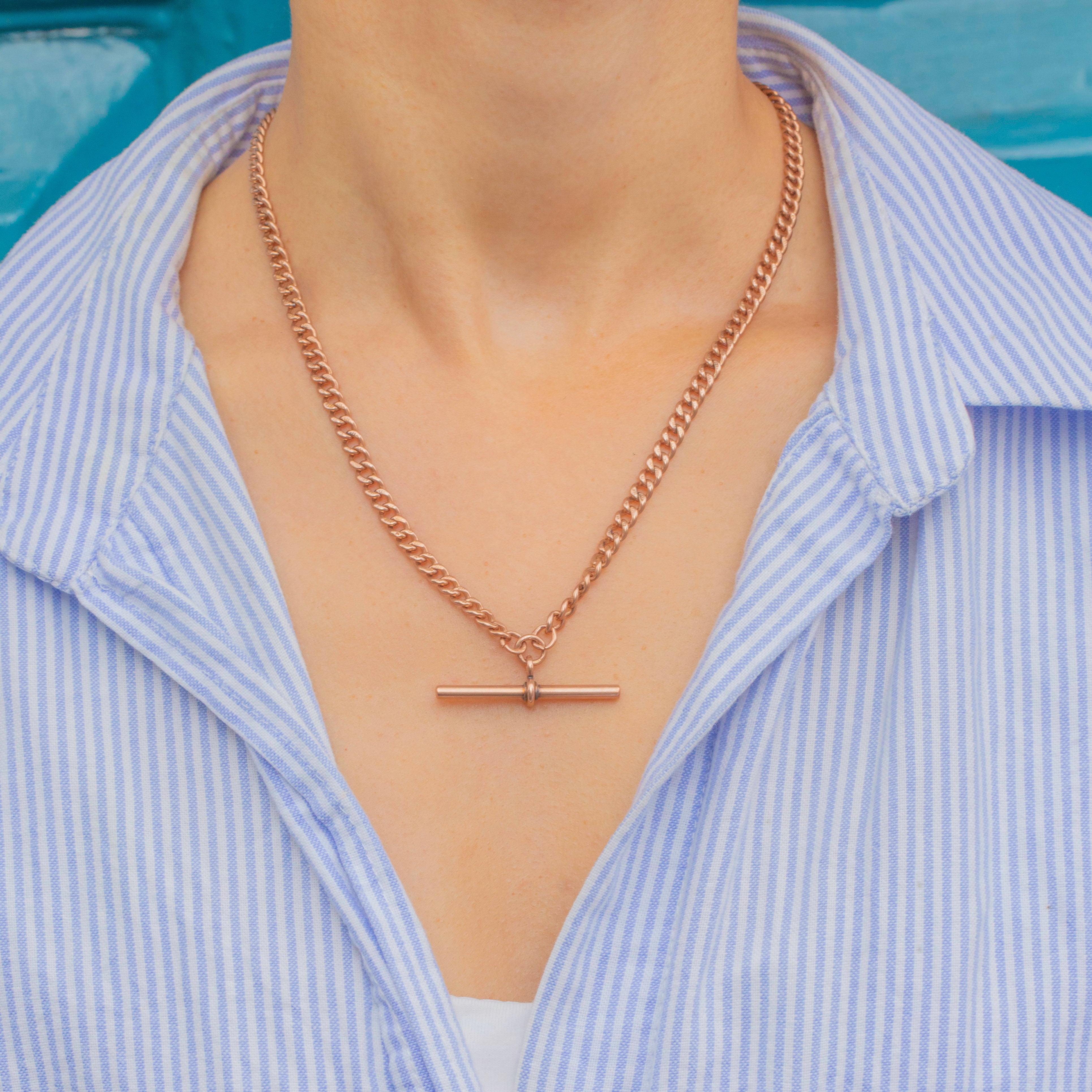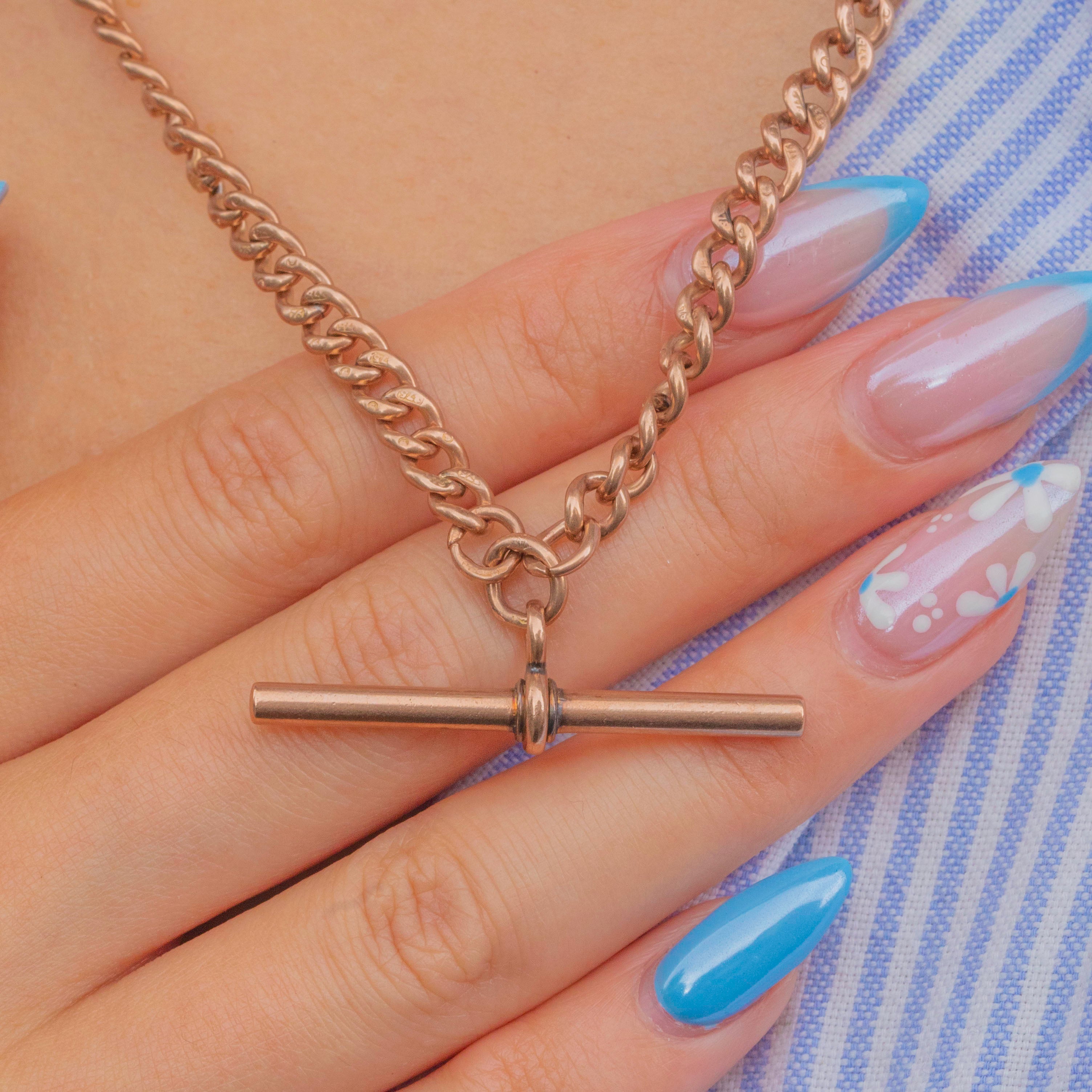Its interlocking glossy curb links radiate blush hues and, at 19.5" long, the chain sits smoothly against your décolletage. Complete with a large T-bar and two highly sought-after dog-clips, it is the perfect customisable piece to suspend a range of charms and pendants.
