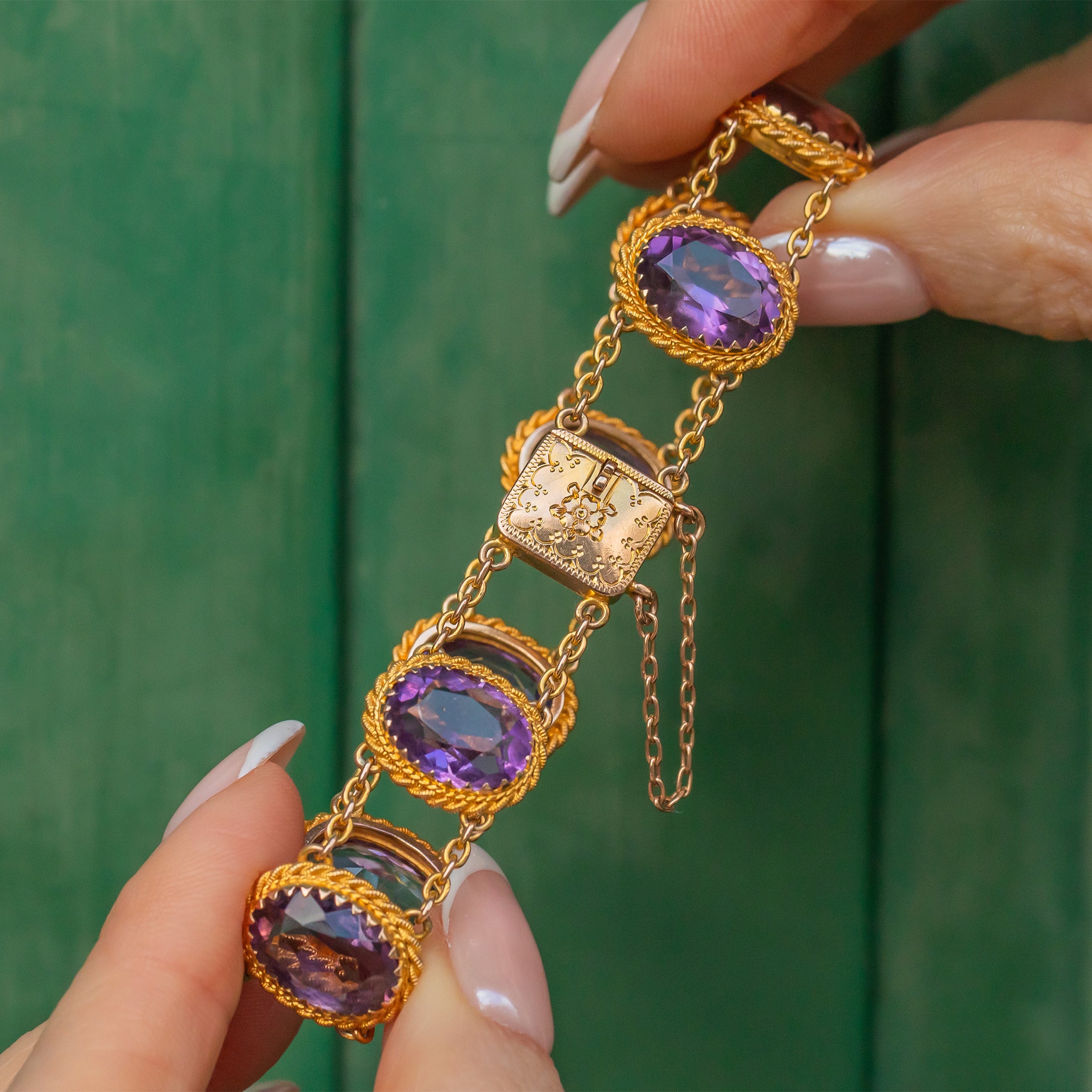 Antique 9ct Gold Amethyst Bracelet, 23.60ct