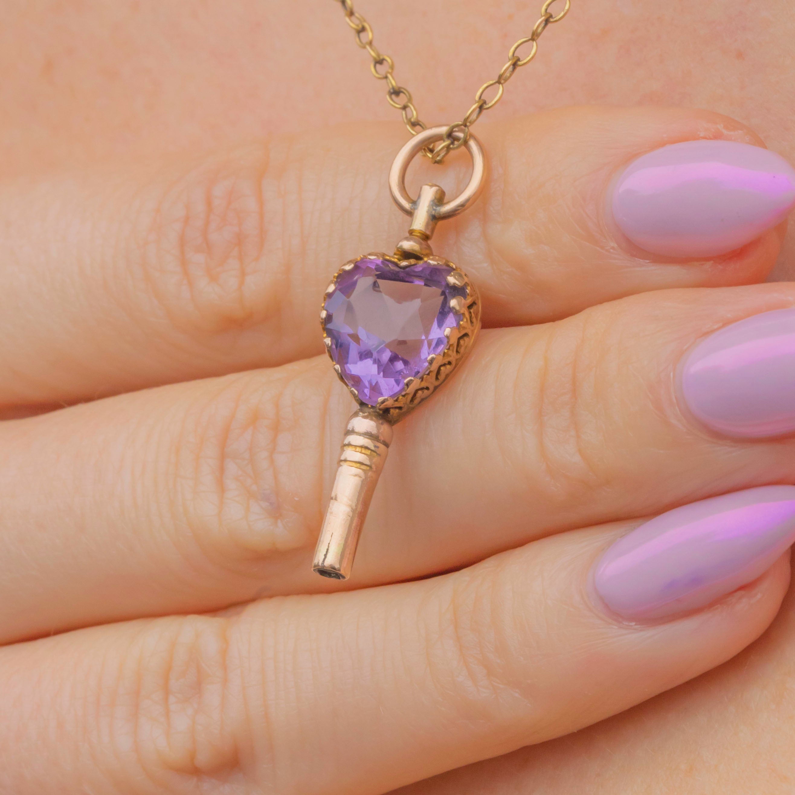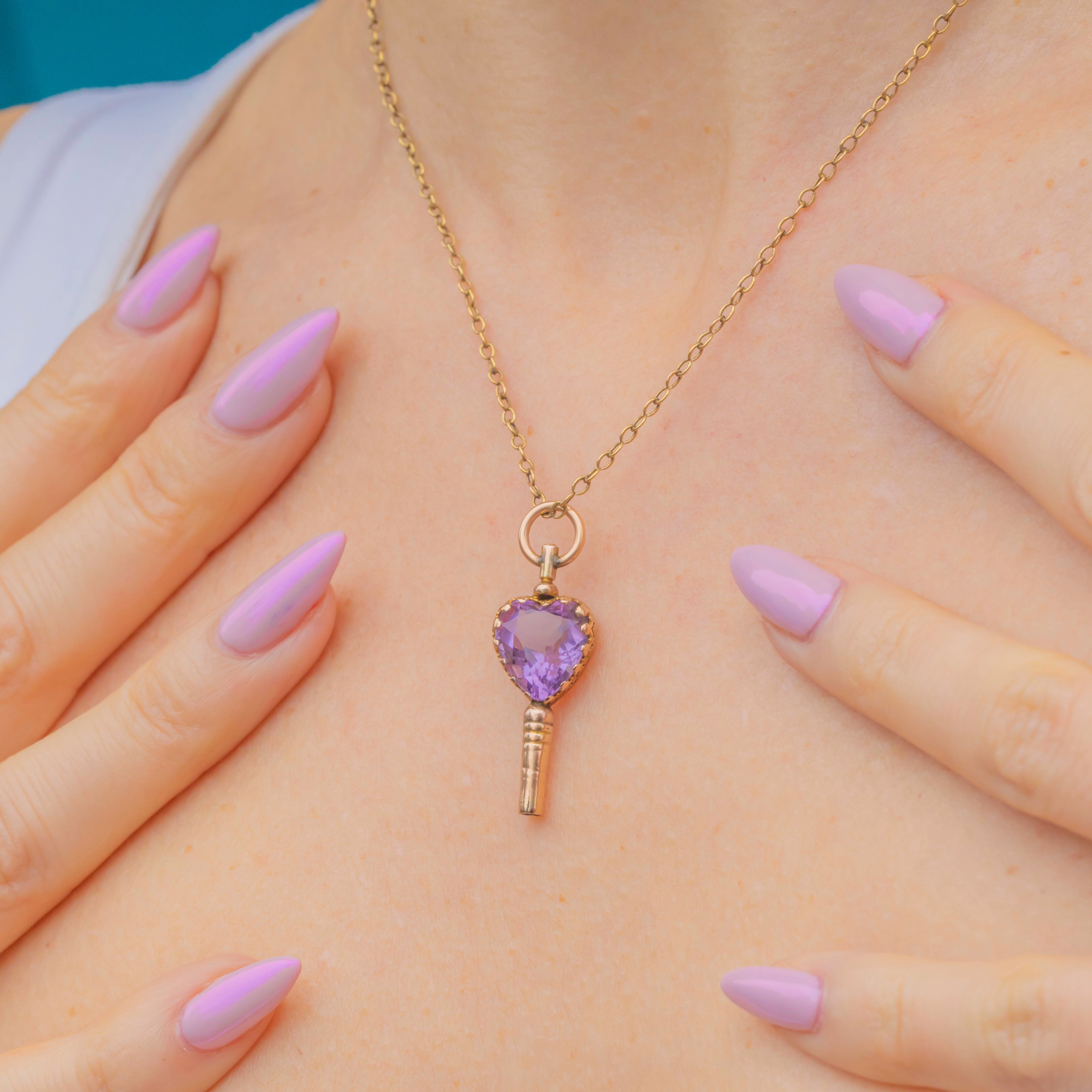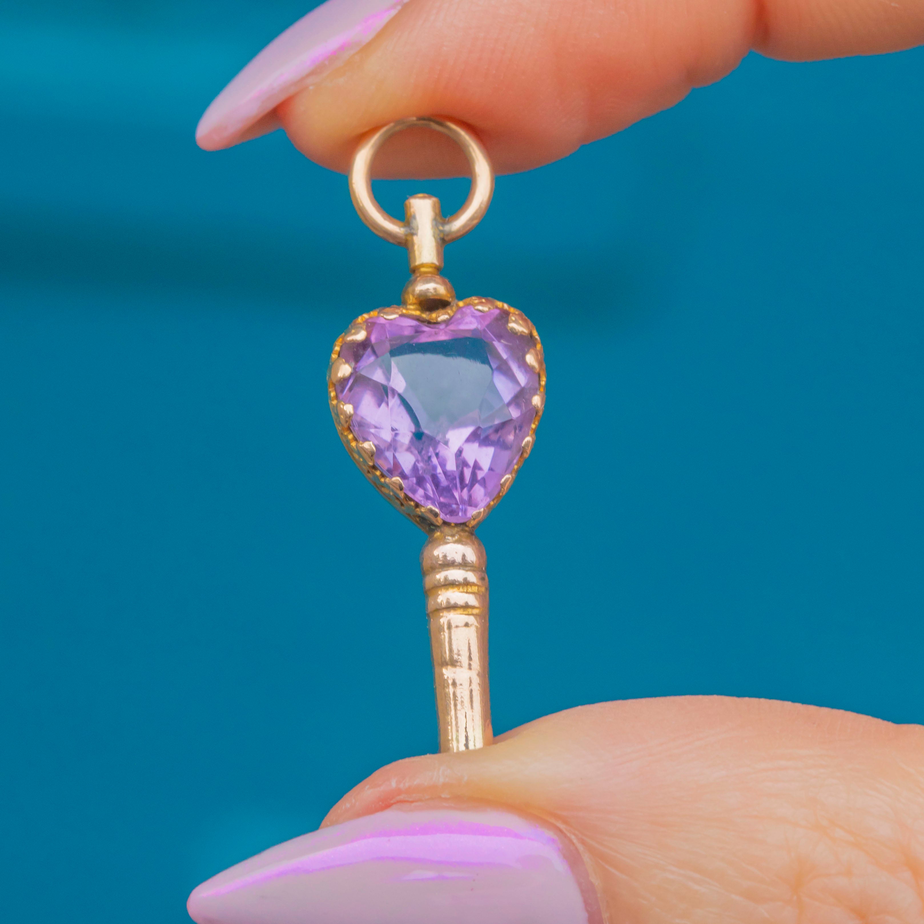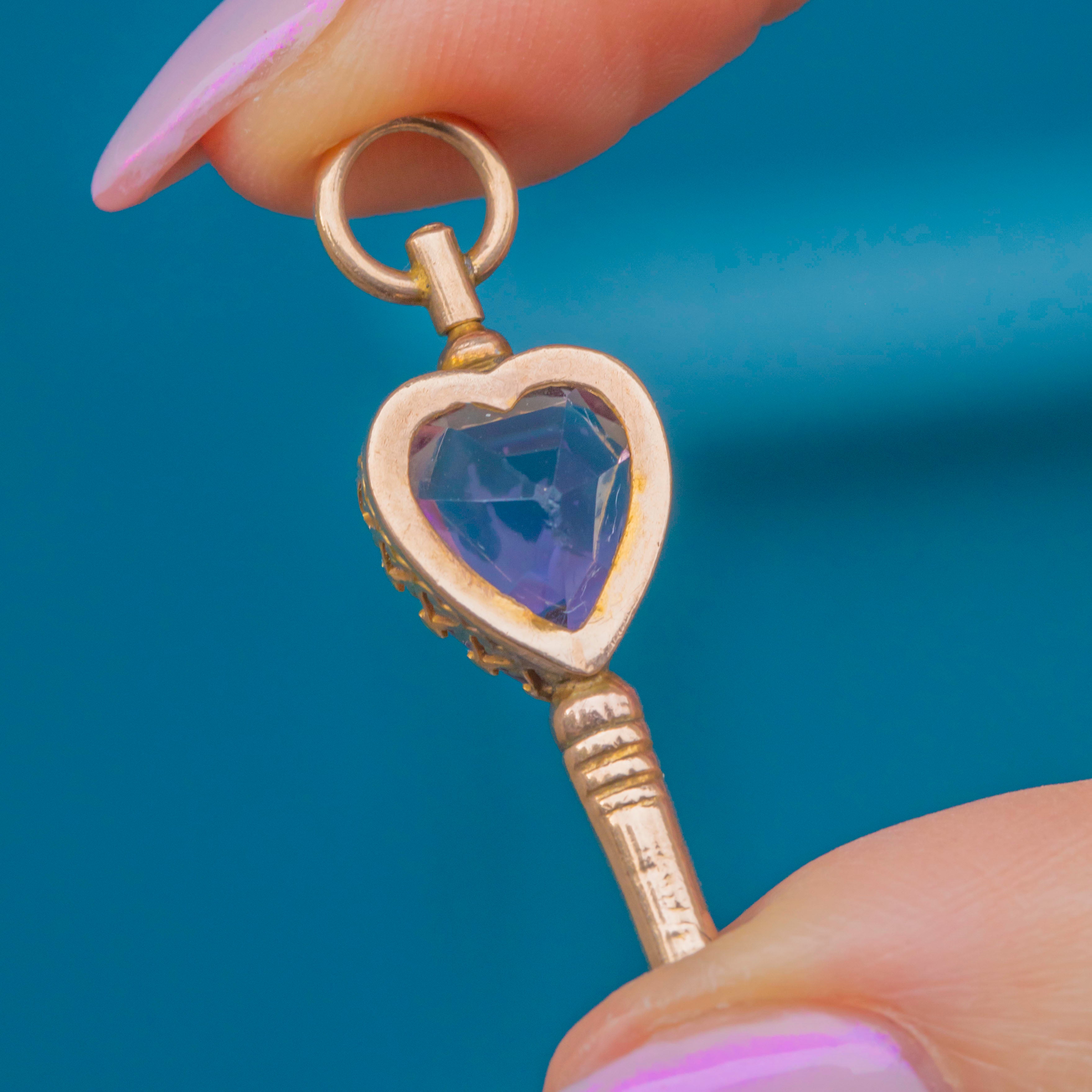 Antique 9ct Gold Amethyst Heart Watch Key Pendant