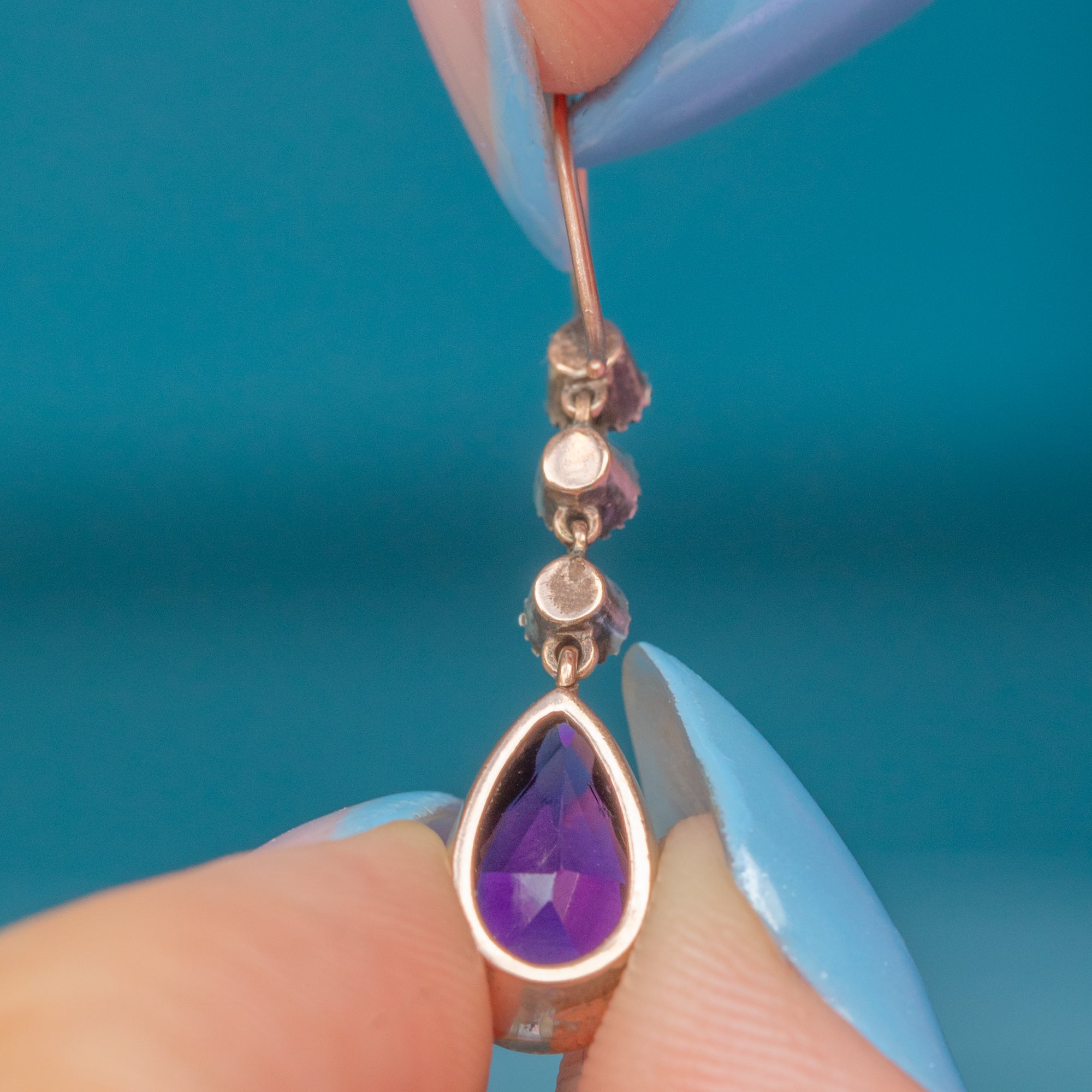 Antique 9ct Gold Amethyst Paste Drop Earrings