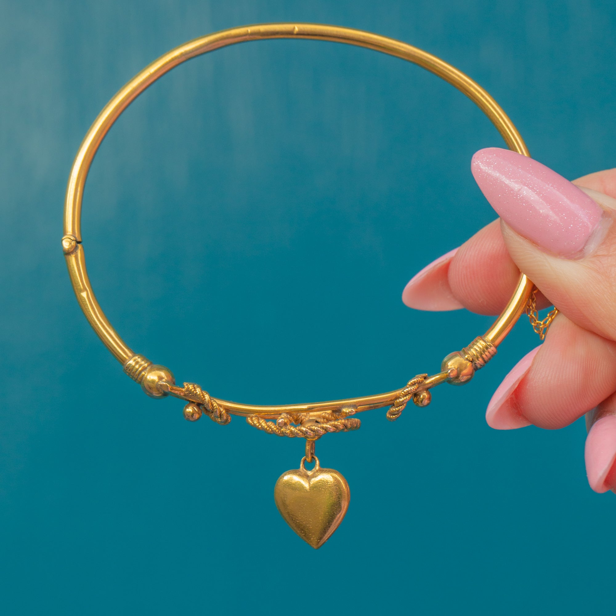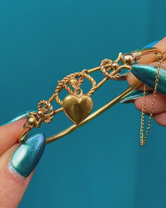Antique 9ct Gold Bangle with Puffy Heart Charm