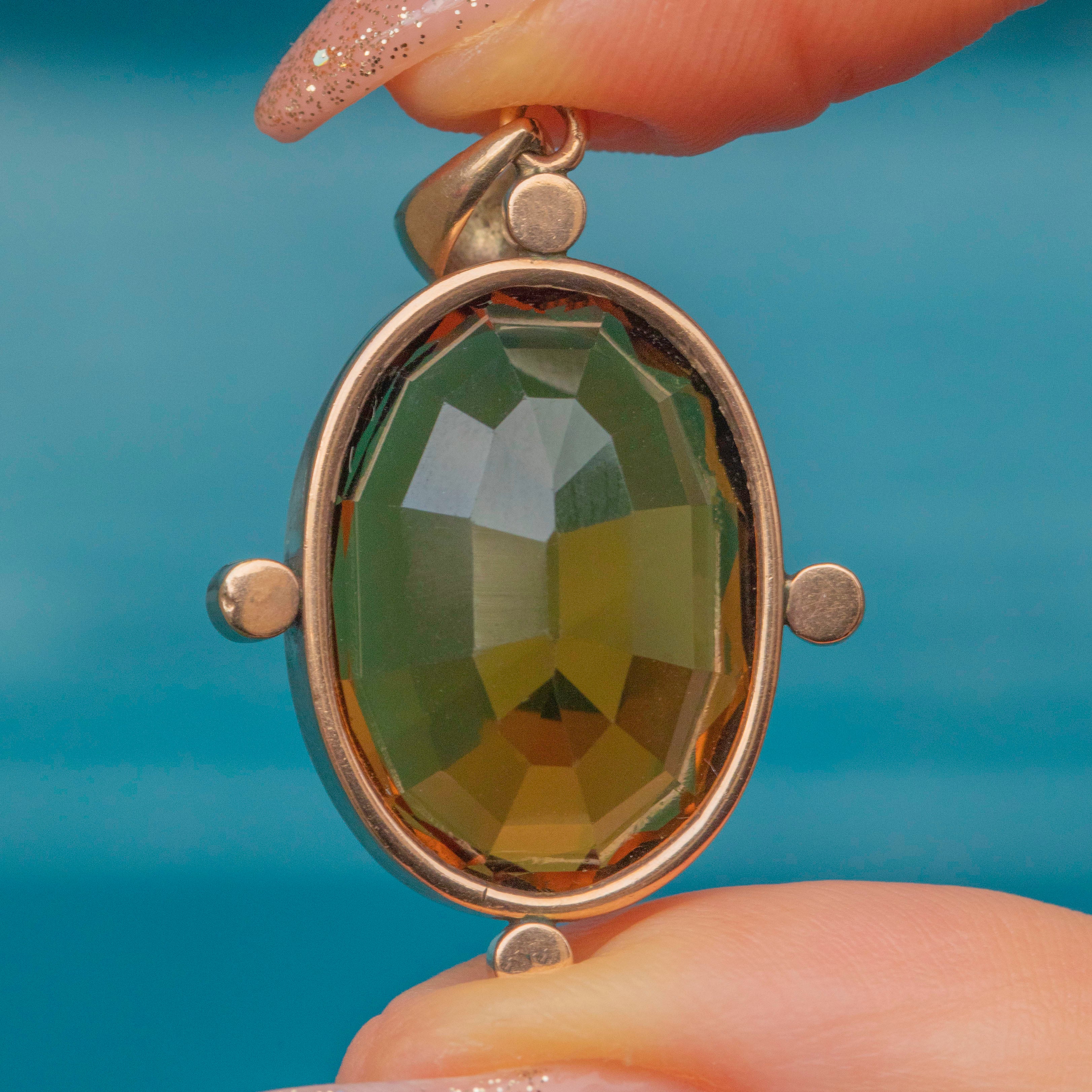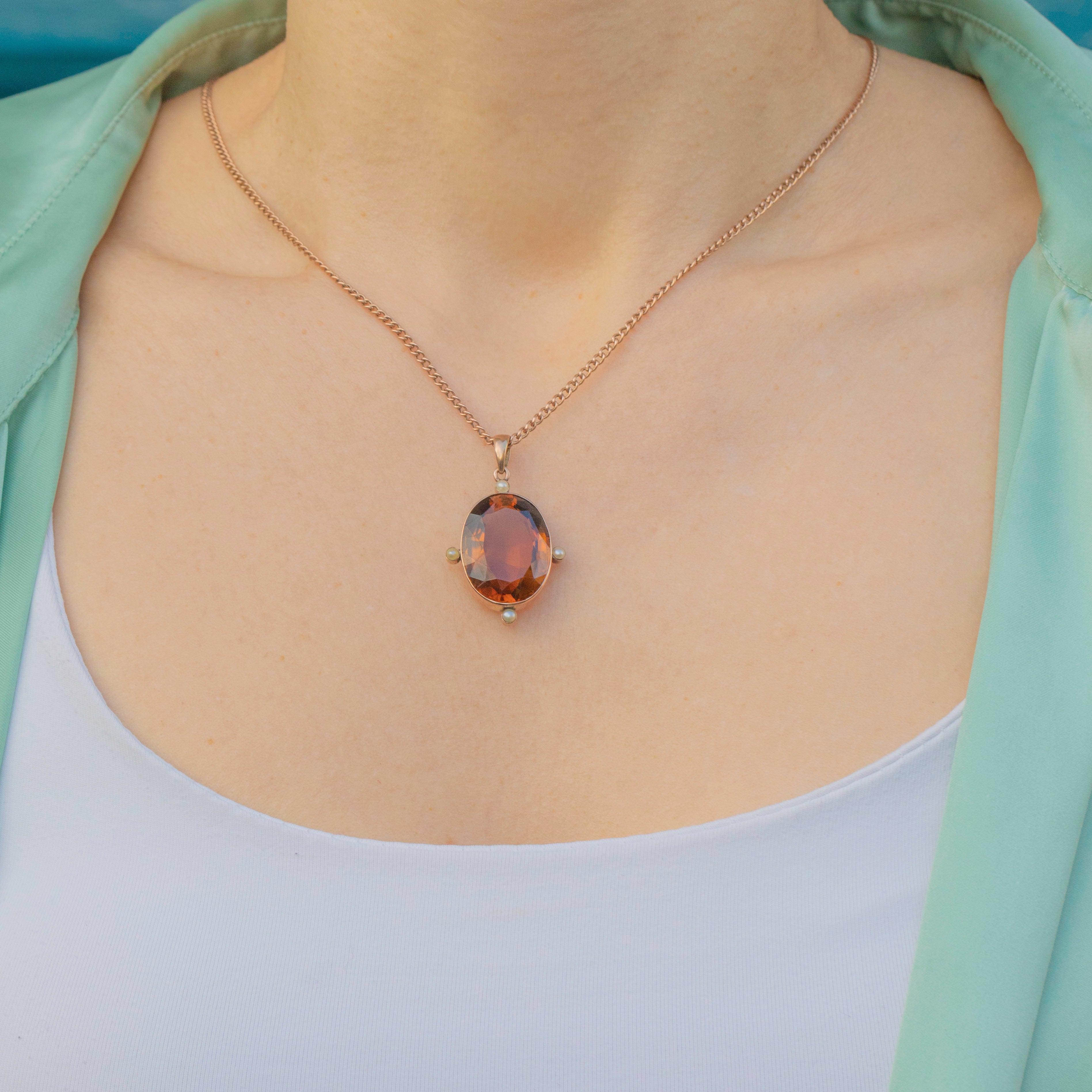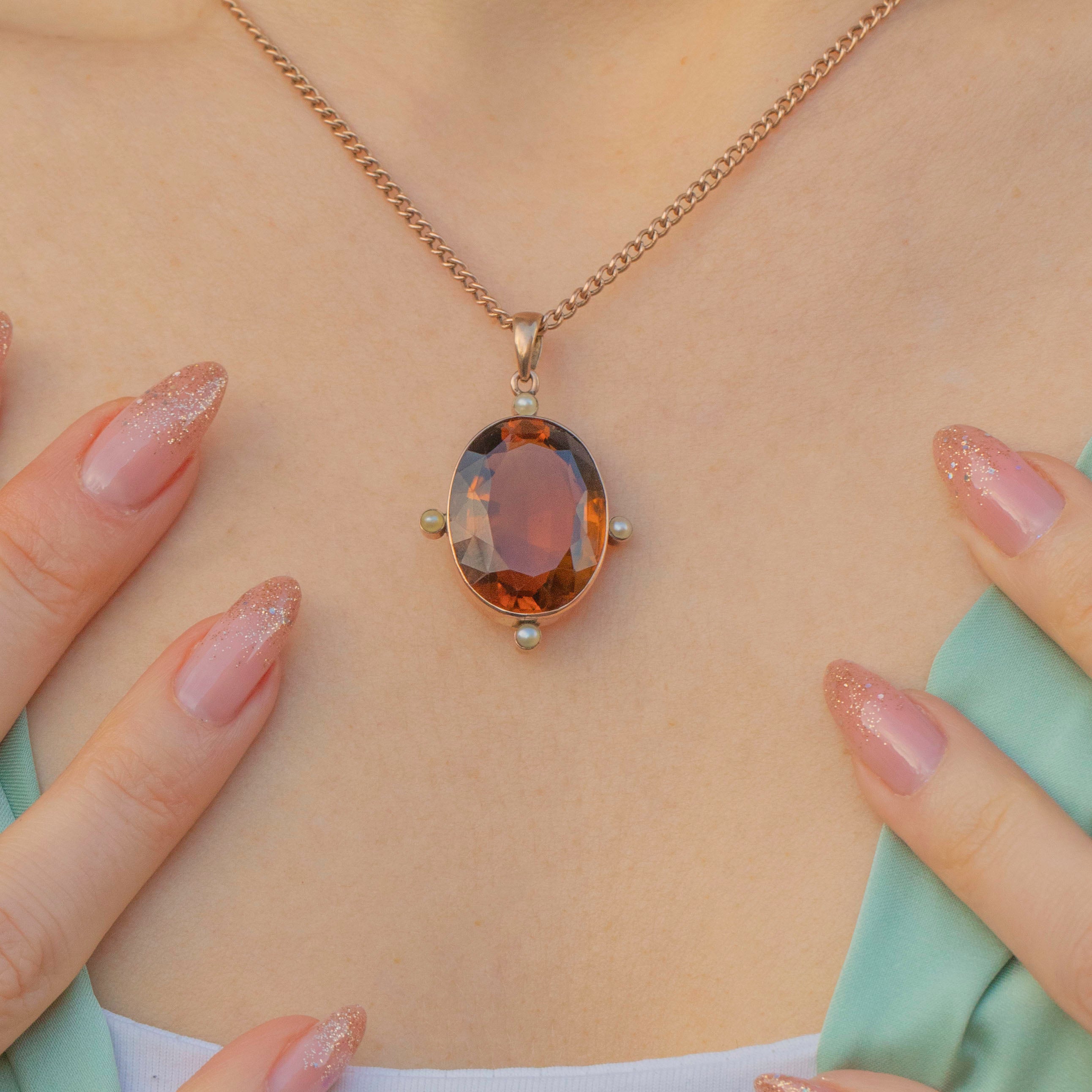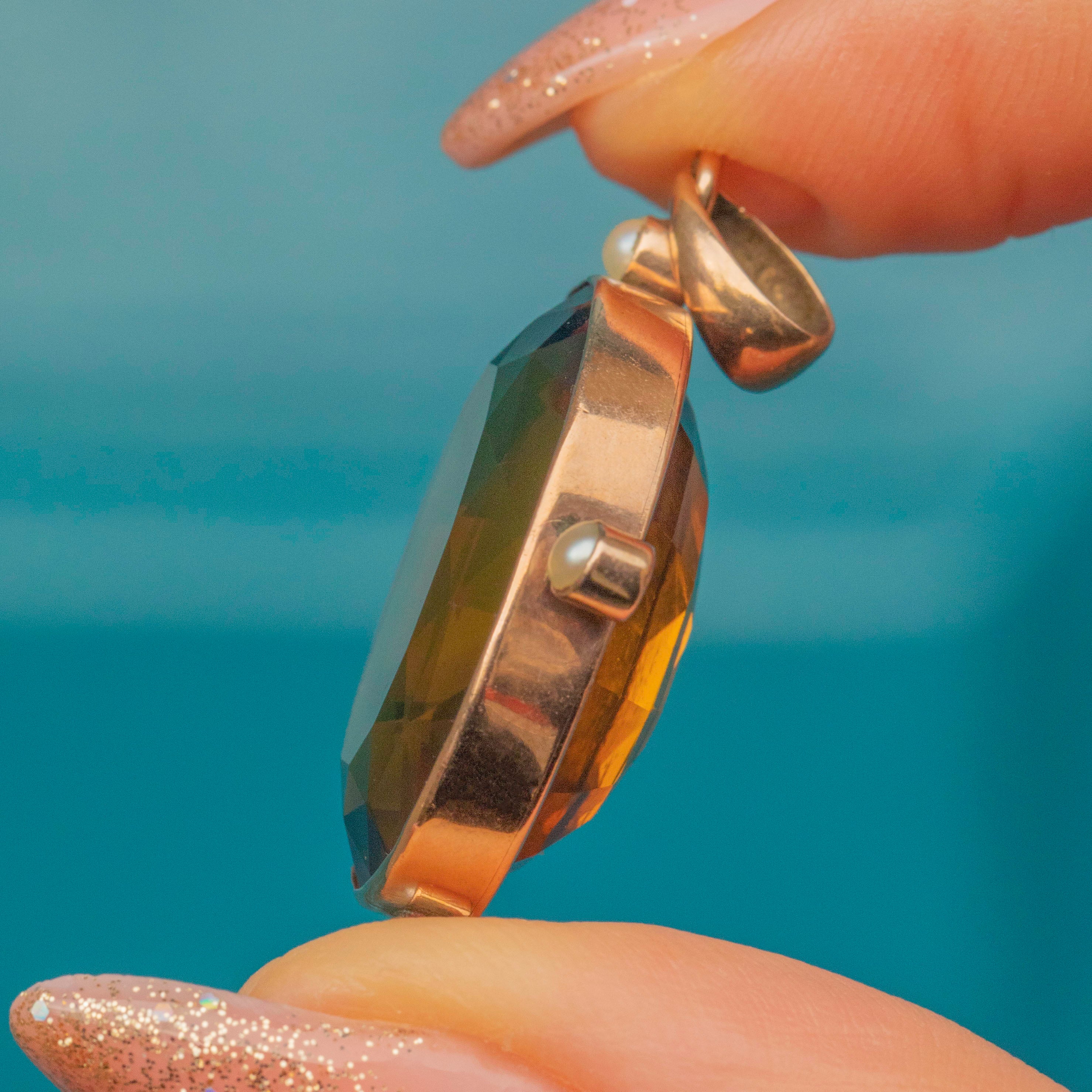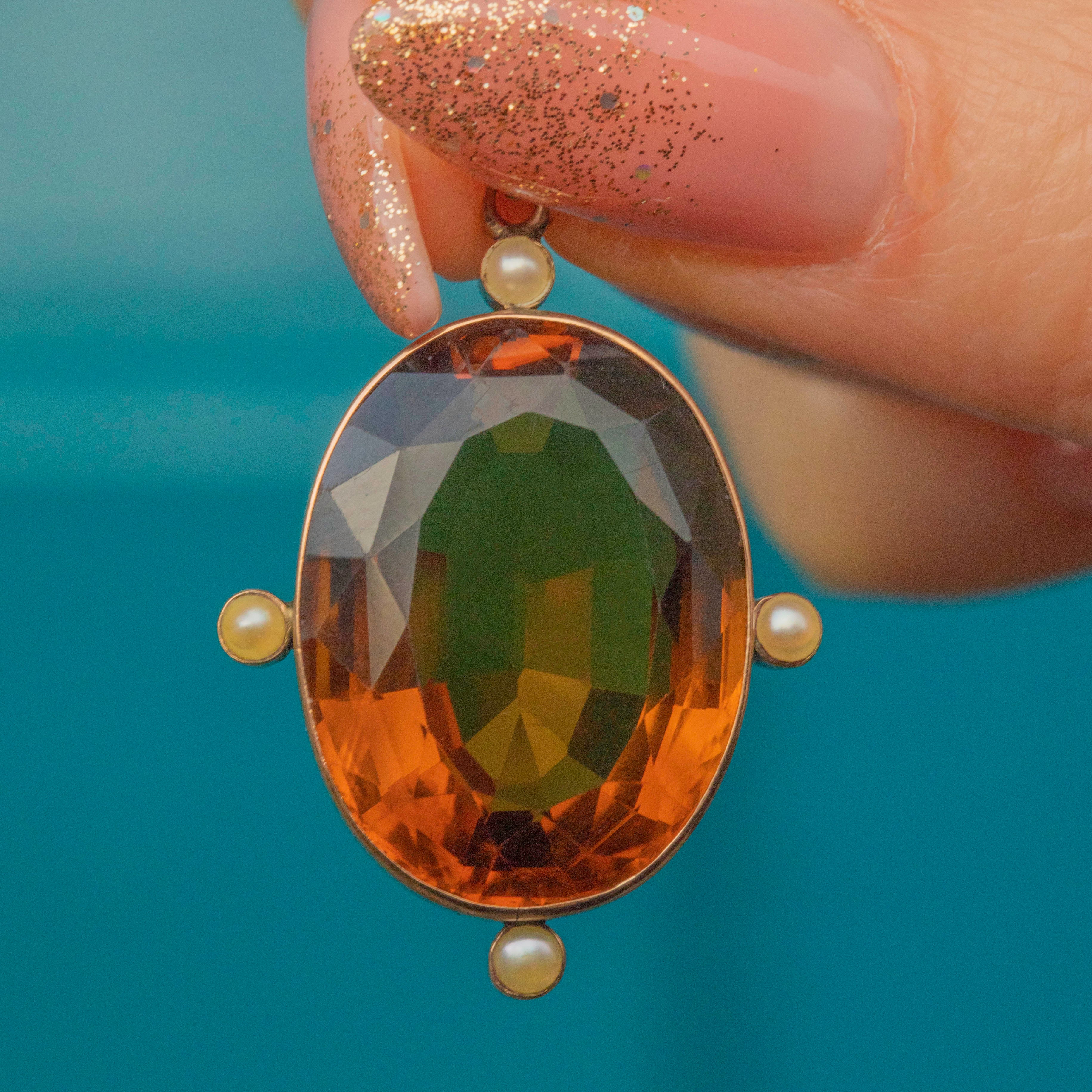 Antique 9ct Gold Bezel-Set Madeira Citrine Pearl Pendant 3.60ct