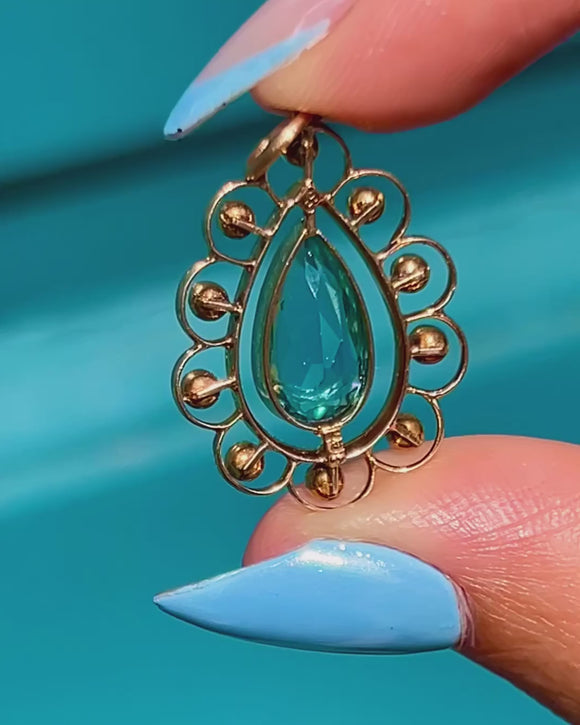 Antique 9ct Gold Blue Paste Pearl Pear Drop Pendant