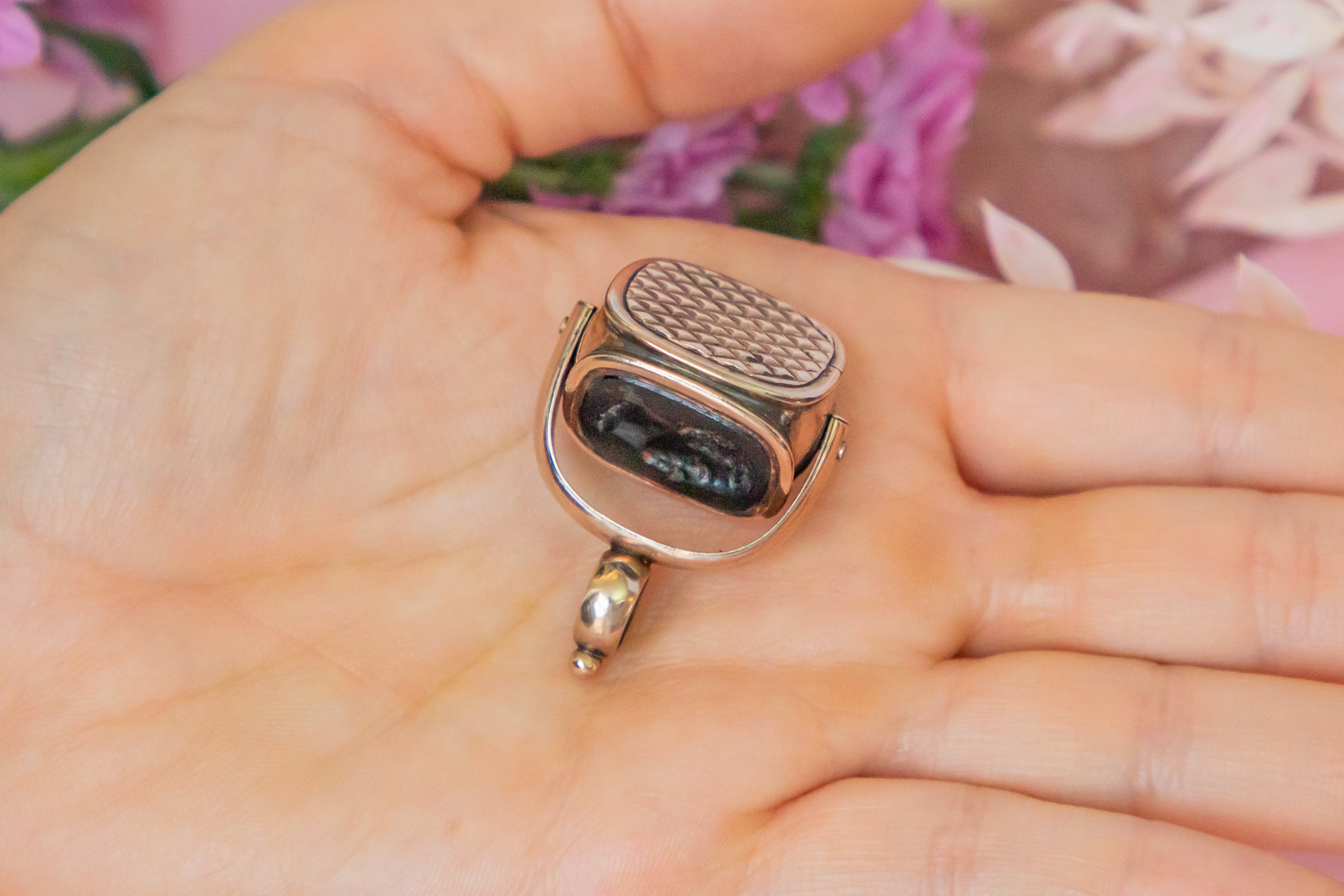 This is a charming spinner fob, and we can't help but fantasise about her history! Wear this piece with an antique belcher chain, and feel in tune with its original antique roots.