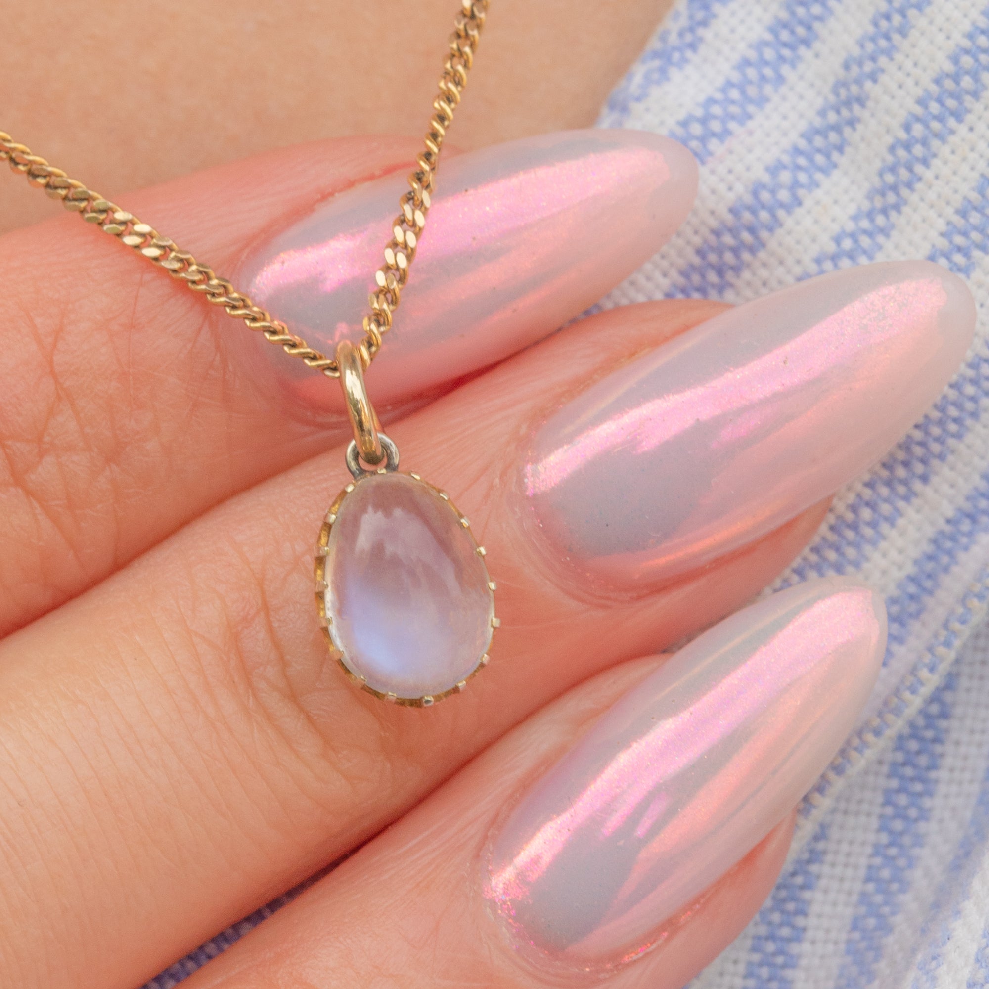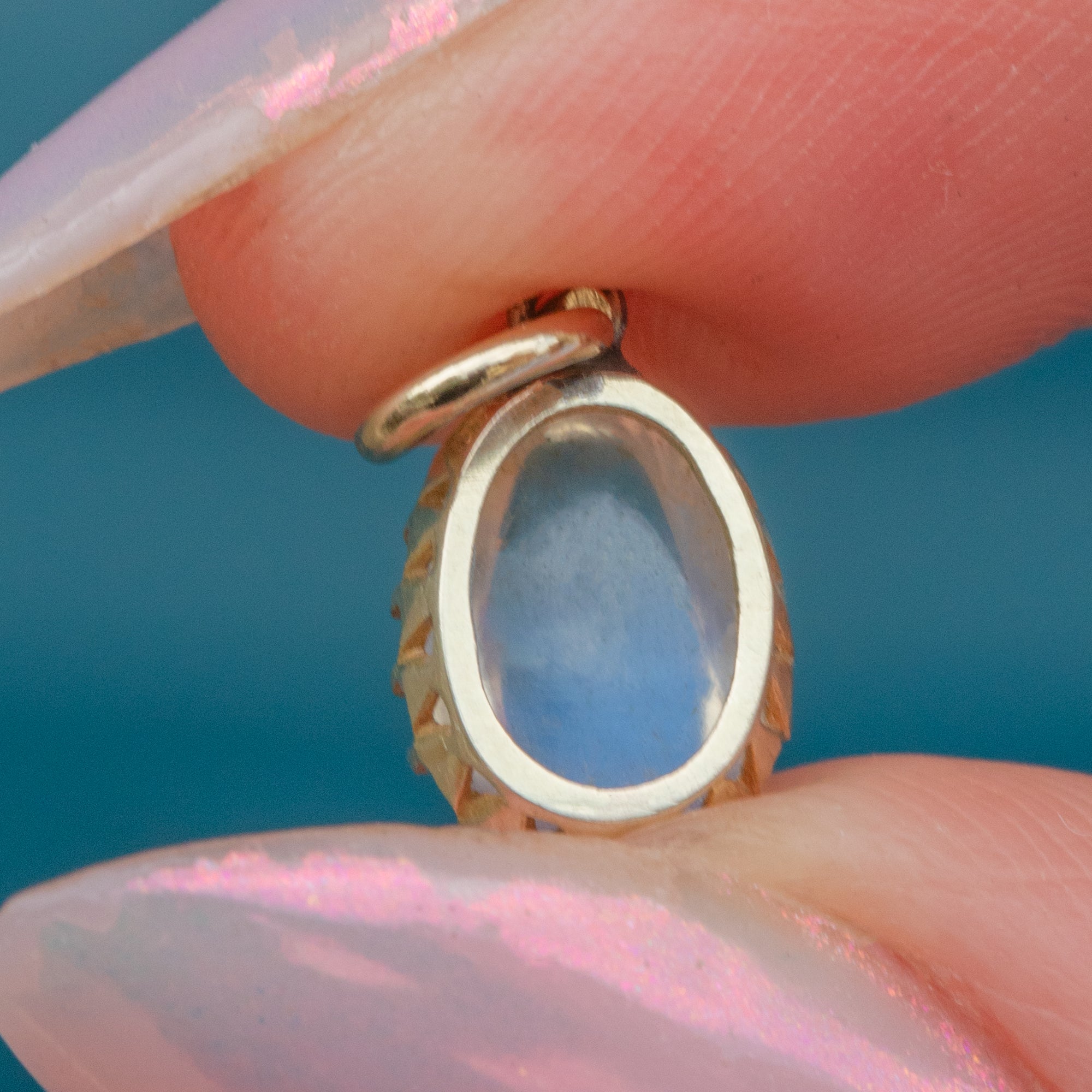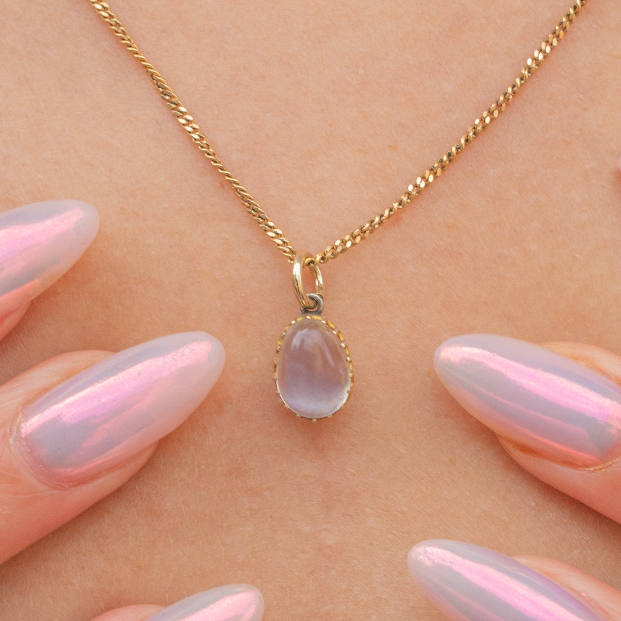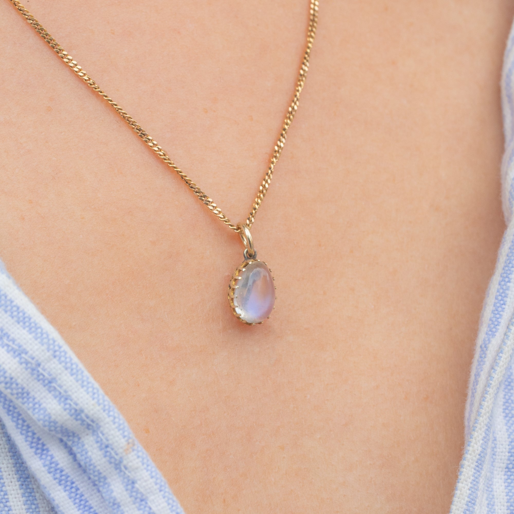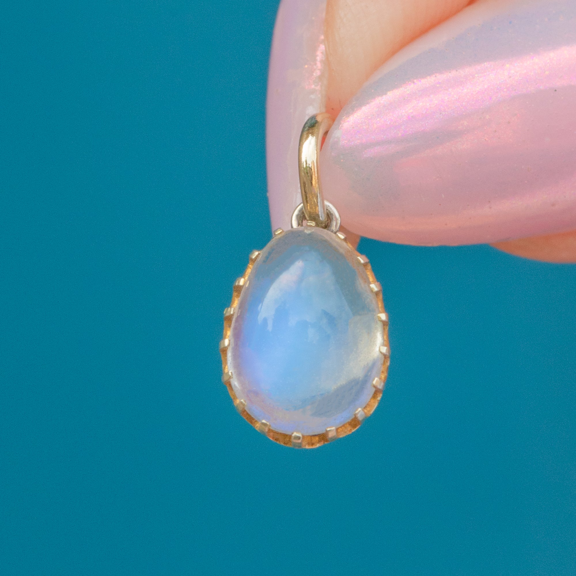 This celestial antique 9ct Gold Ceylon Moonstone pear charm is the perfect piece to radiate tranquility!