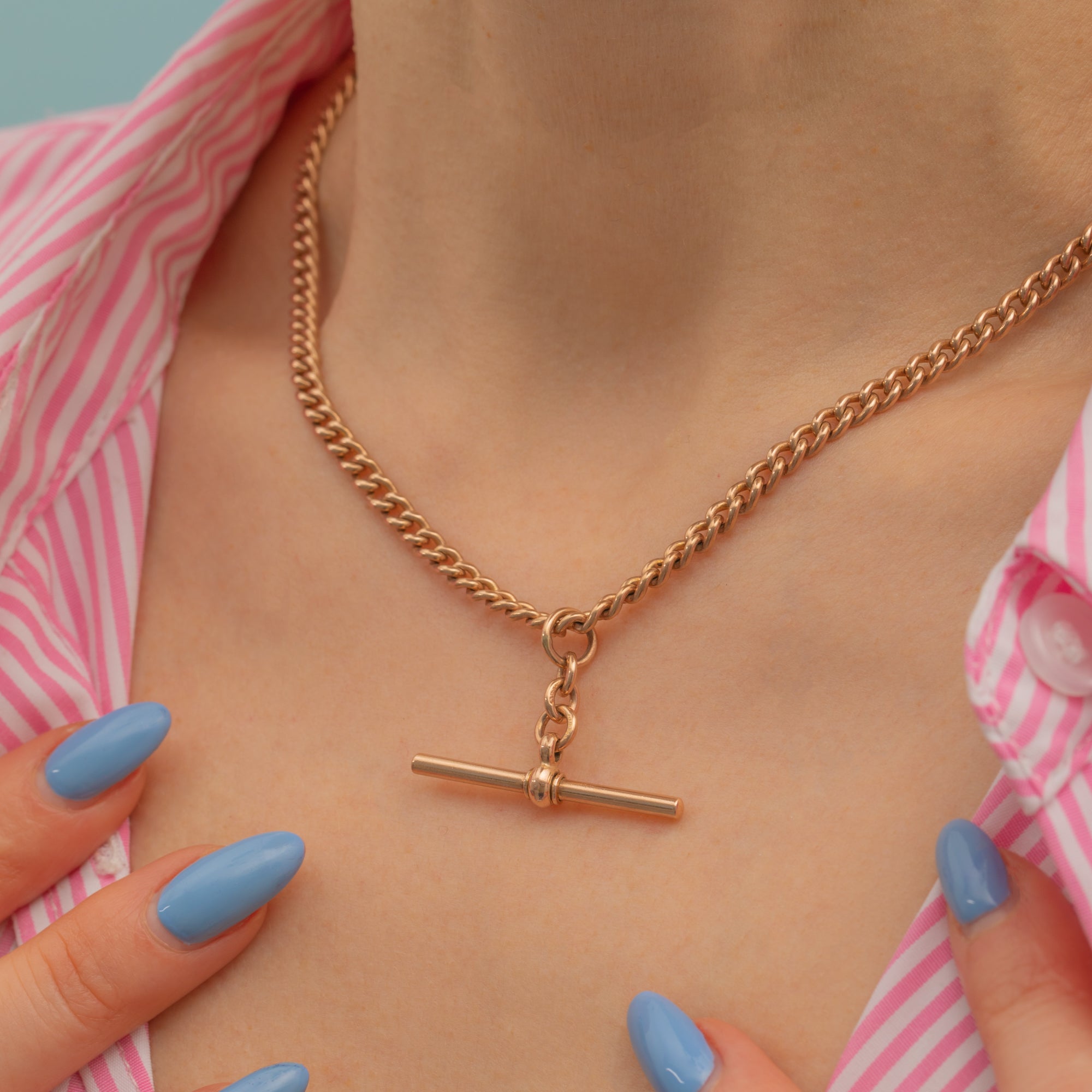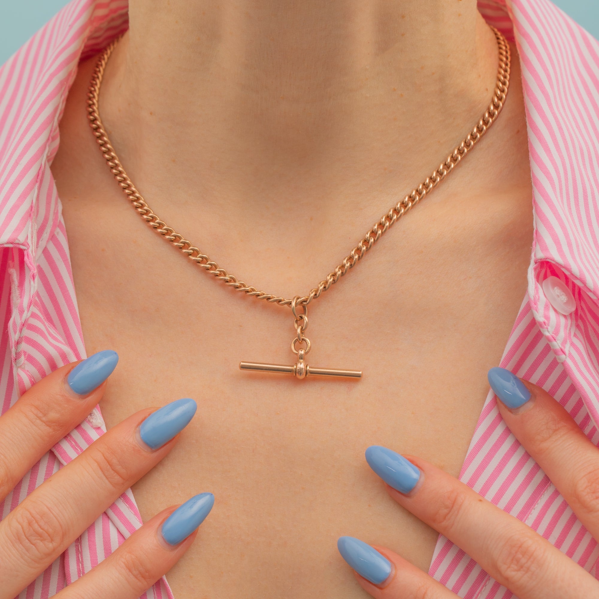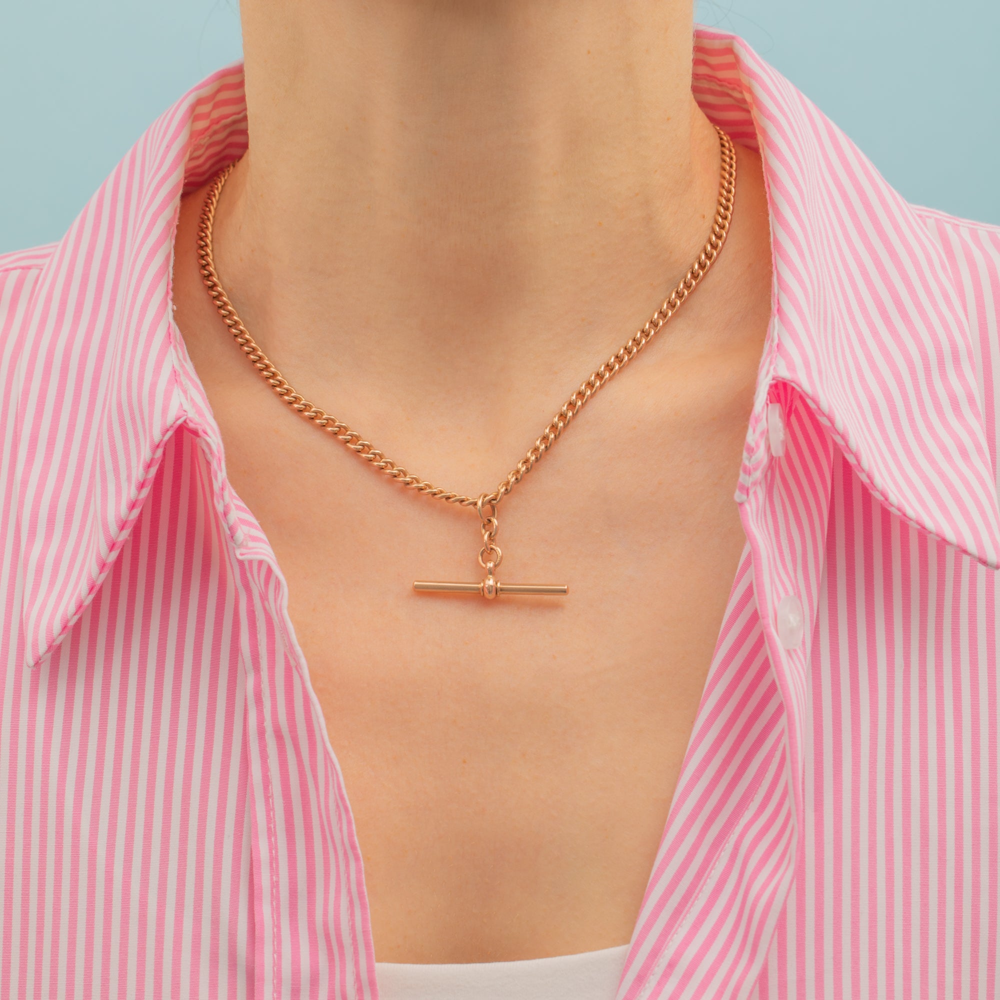 Please note, although the t-bar is "travelling" (ie it moves and dangles nicely!) it cannot be removed without a jeweller's intervention. Just wear this chain with a crisp white shirt or layered with other chunky necklaces for a chic look all year round.