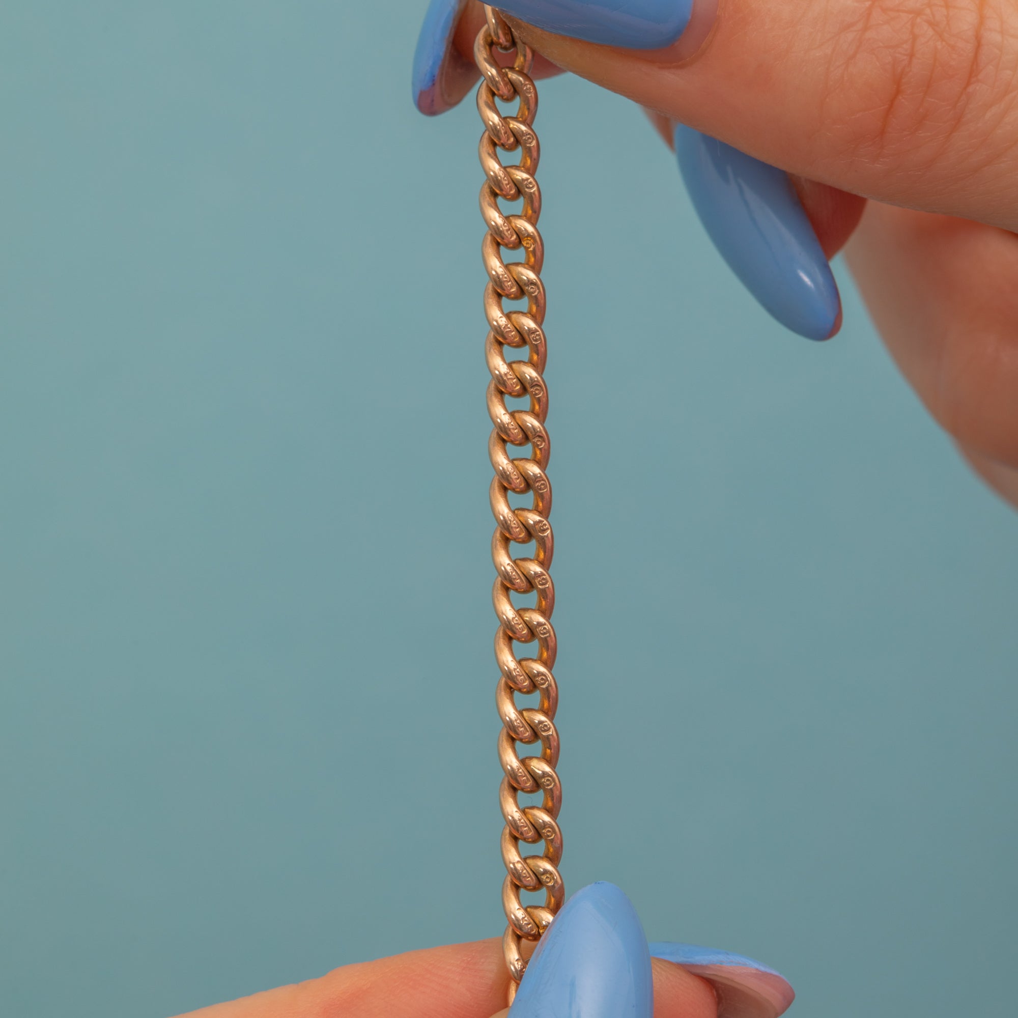This fantastic antique 9ct Gold curb link Albert chain is the perfect way to add a touch of Victorian luxury to any outfit. Boasting exuberant honey-hued 9ct Gold links, each clearly stamped solid 9ct Gold, this chain exudes prestige and class!