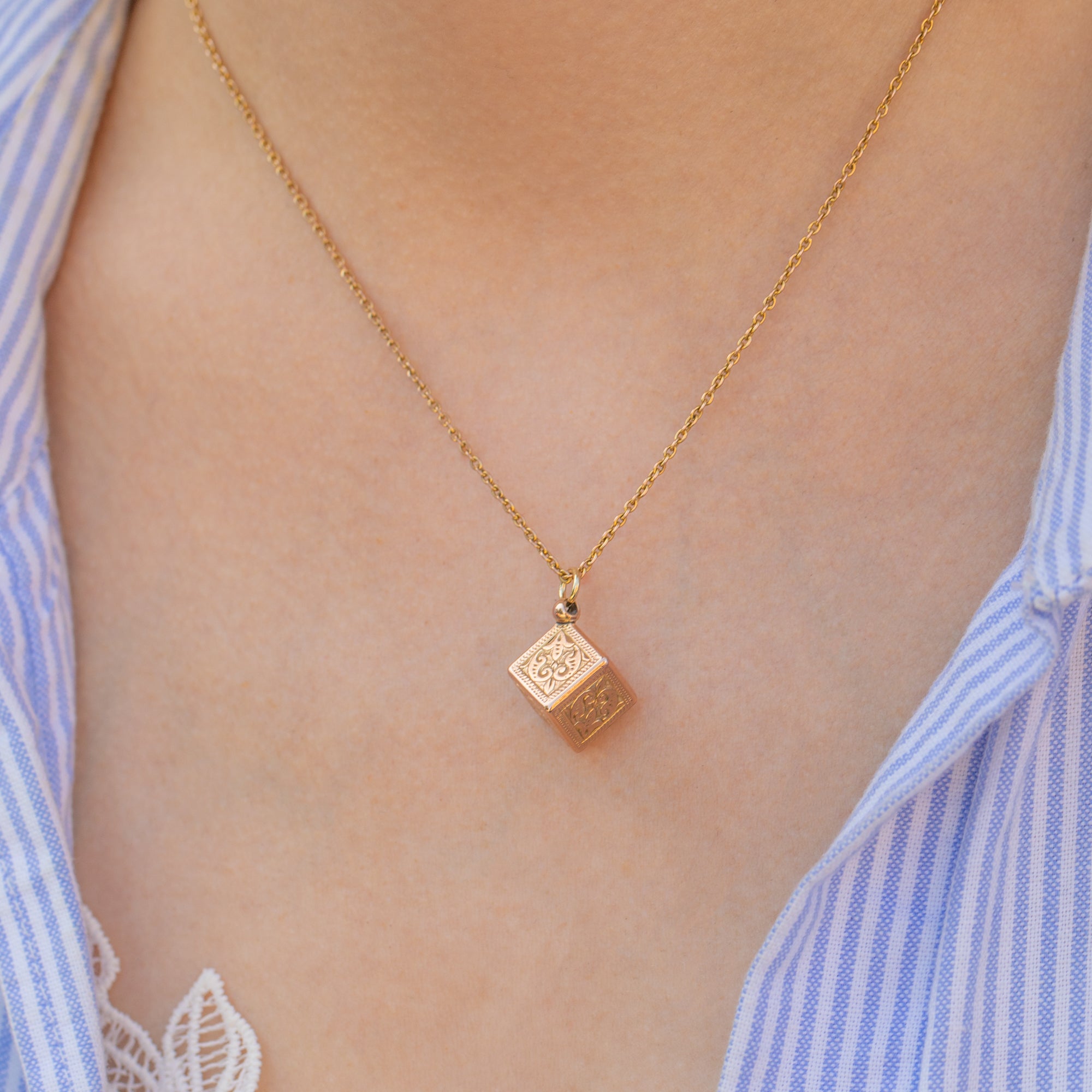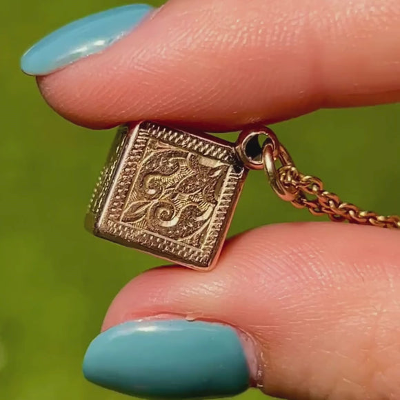 This antique 9ct Gold engraved cube charm is a wonderful Victorian treasure! Her delightful cube features intricate engravings on each side, showcasing the fine artistry of the era.