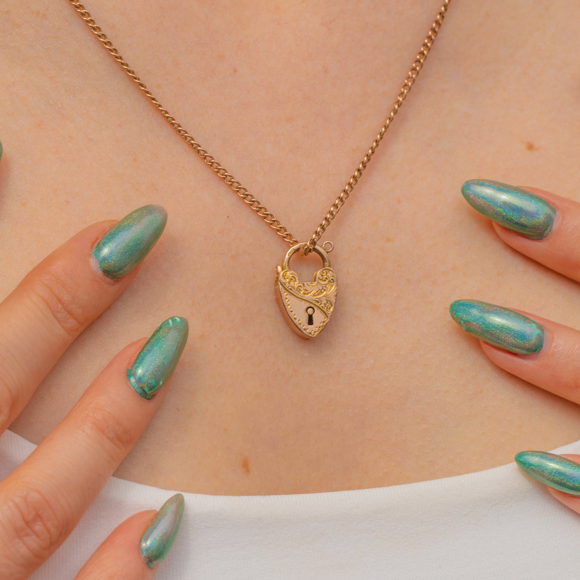 Crafted from 9ct Gold this heart padlock has mouthwatering reflective qualities and would look sublime however you choose to style her. Once given to protect love, we find the symbolism behind this Edwardian padlock pendant super romantic!