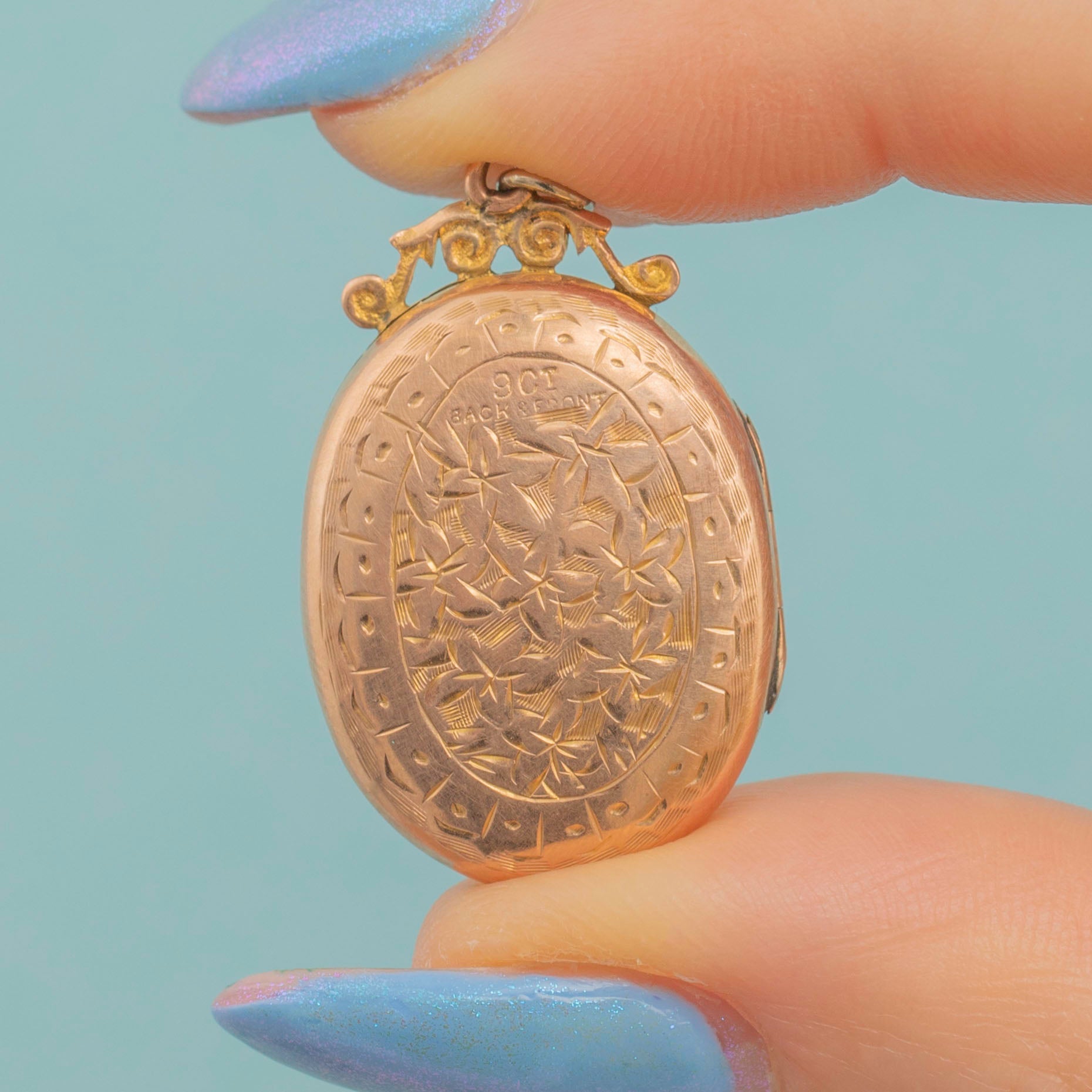This antique 9ct Gold engraved oval locket is a wonderful keepsake to wear close to your heart!