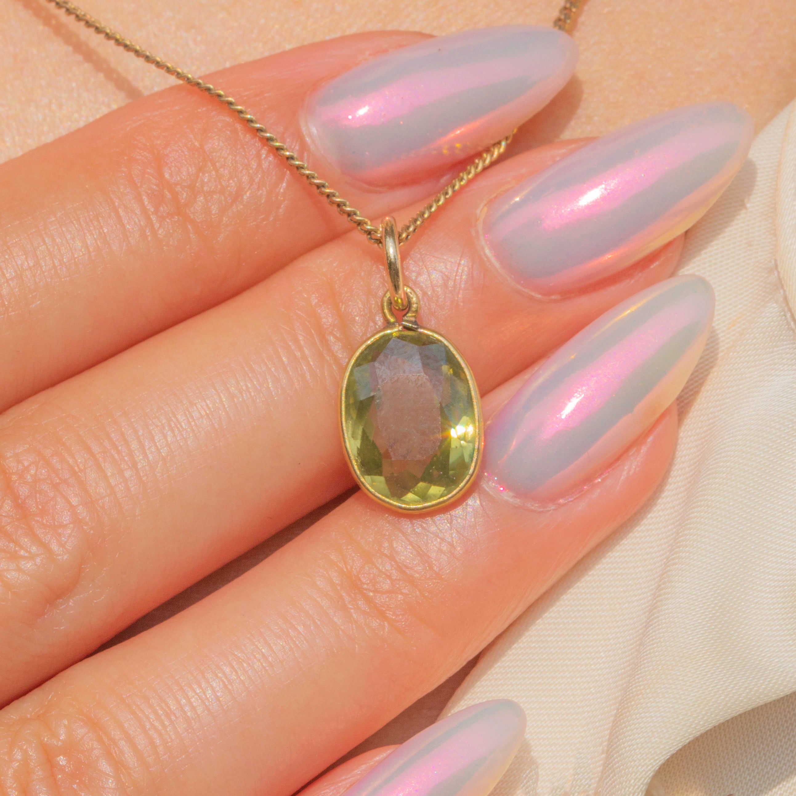 Bring earthy tones into your repertoire with this antique 9ct Gold 2.80ct Green Garnet bezel-set charm! Her olive green core flickers brightly as her crisp cut facets catch the light, she's an absolute treasure.