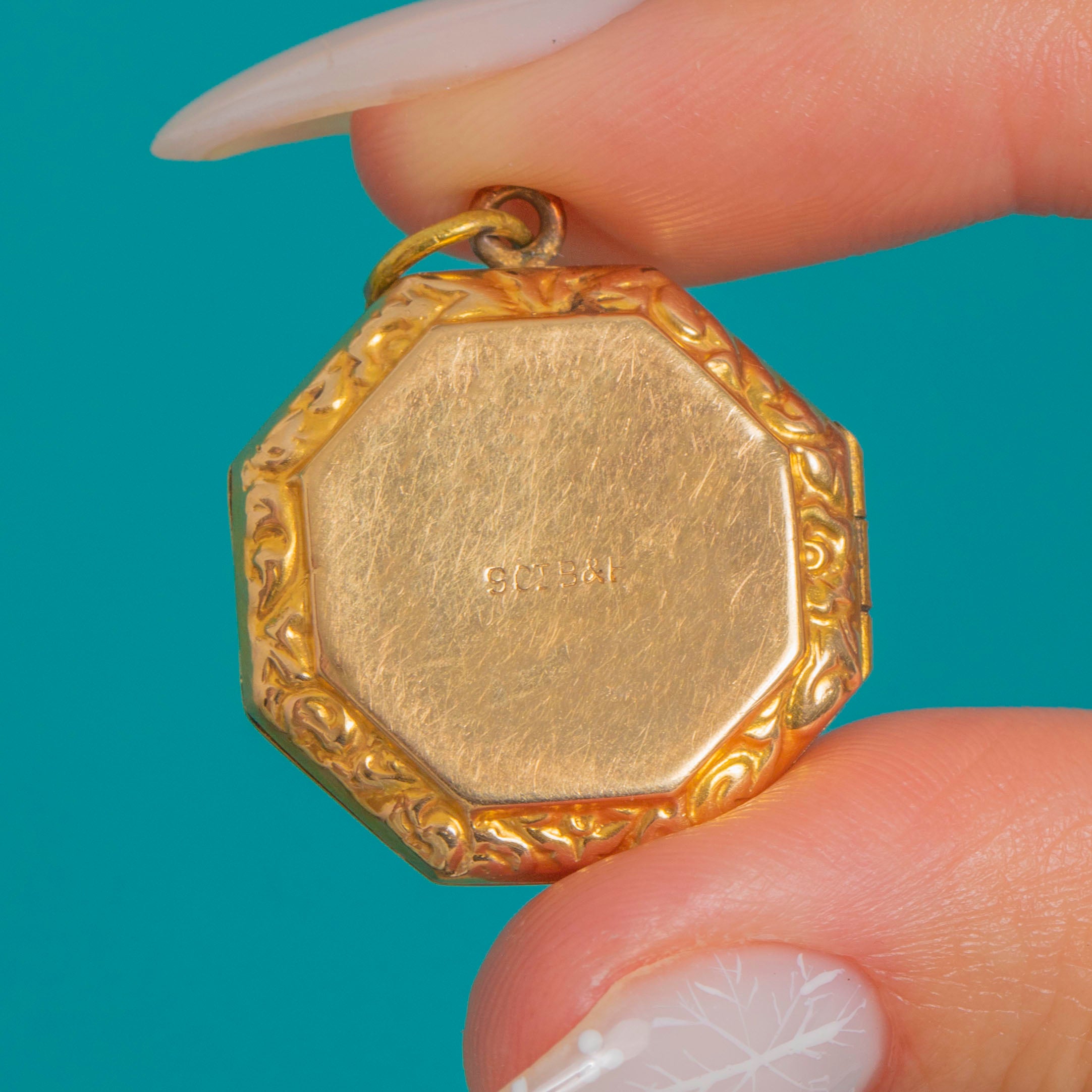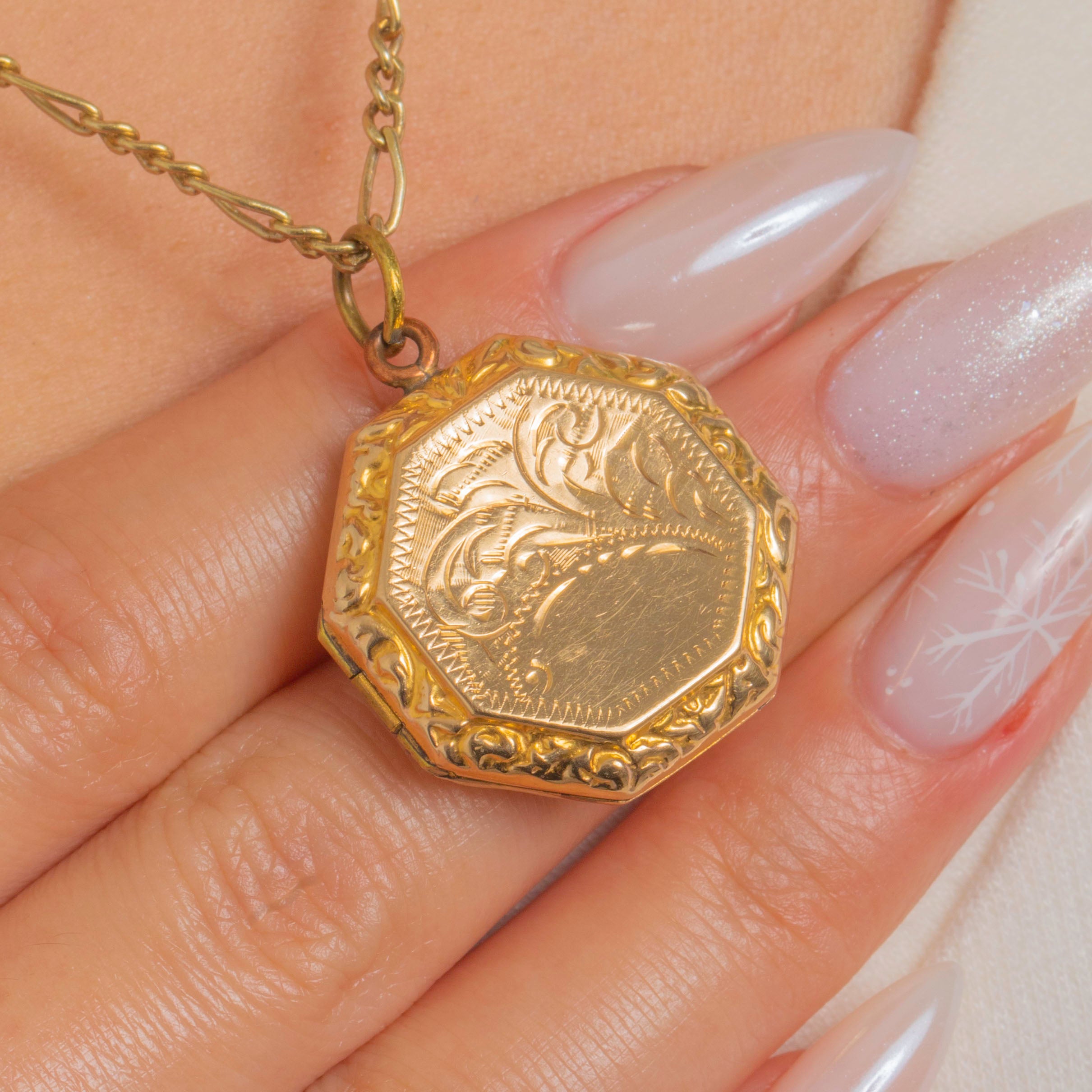 Antique 9ct Gold Hexagonal Engraved Locket