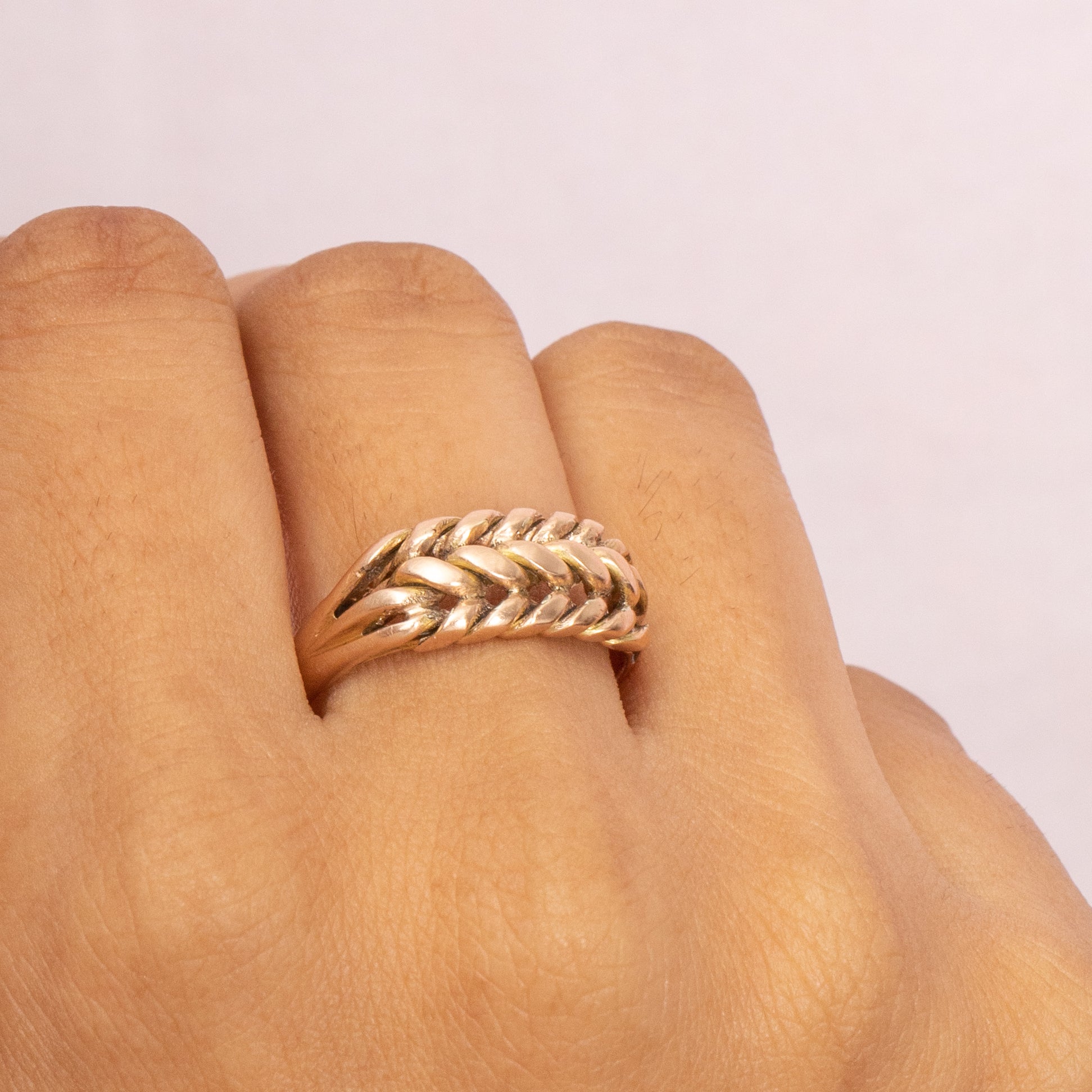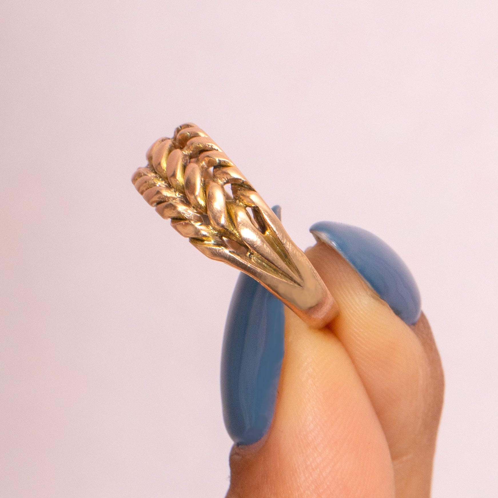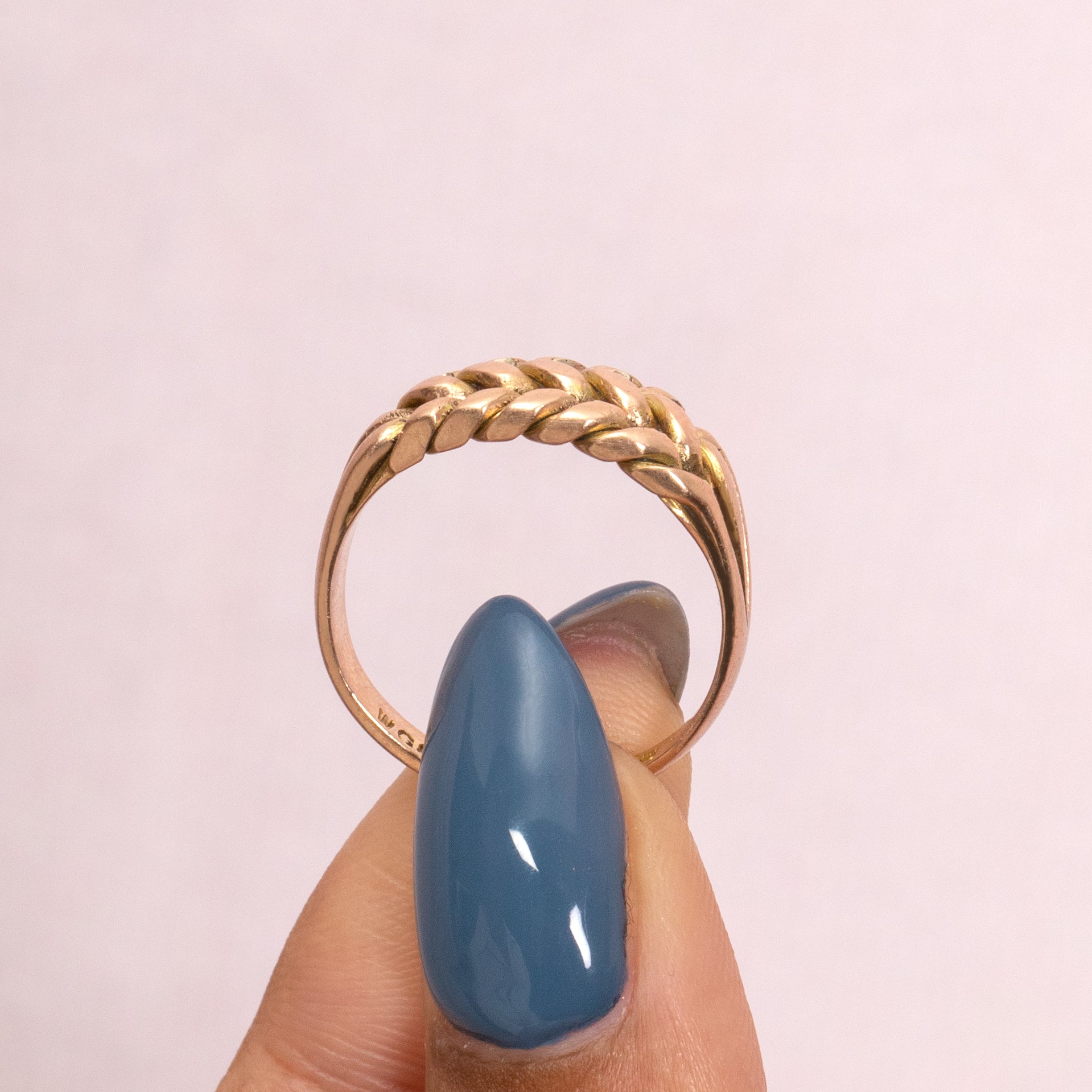 Add a flourish of romance to your ring stack with this antique 9ct Gold keeper ring! Her woven design is effortless, crafted from blushed 9ct Gold, providing great finger coverage. With a low profile too, she is a dream to wear daily.