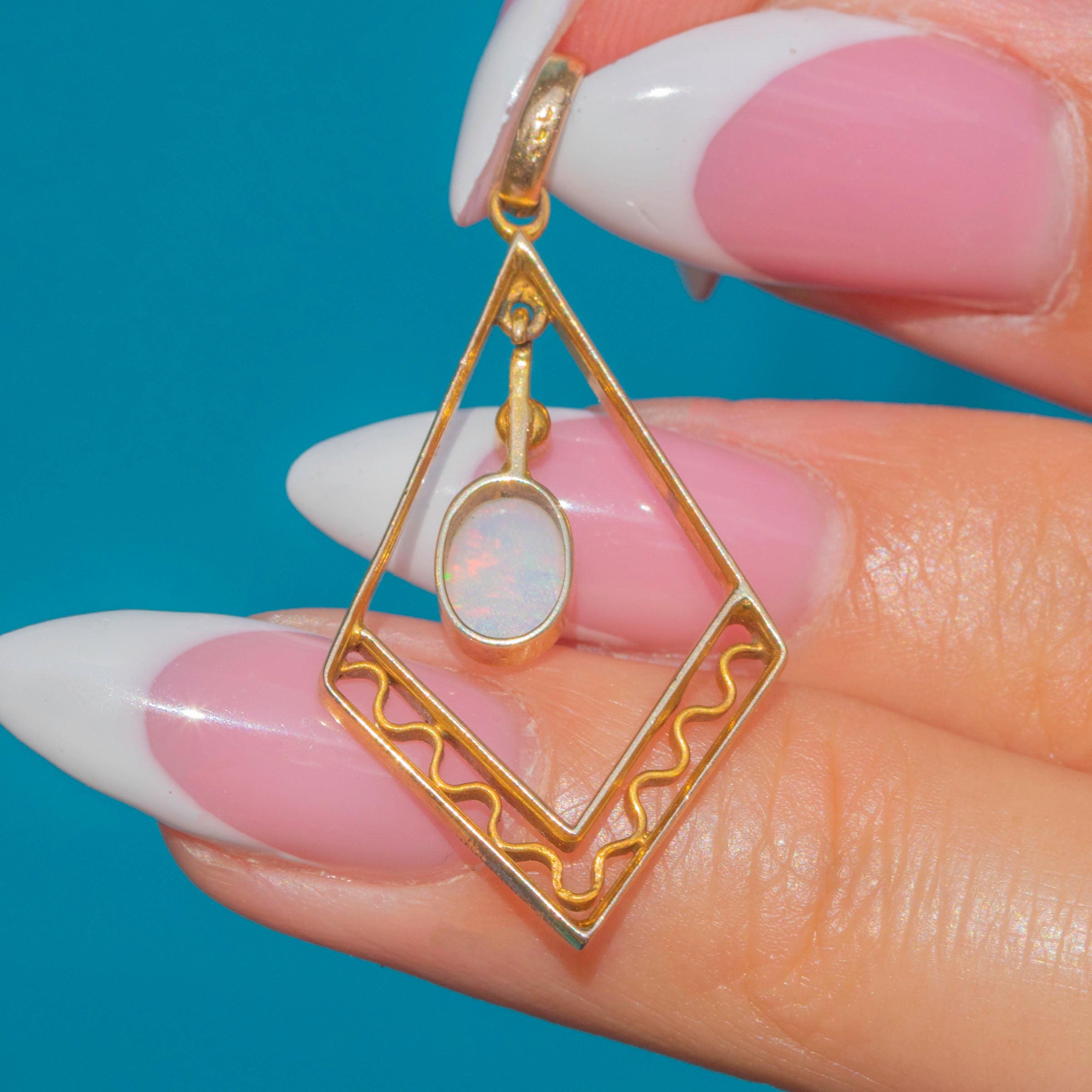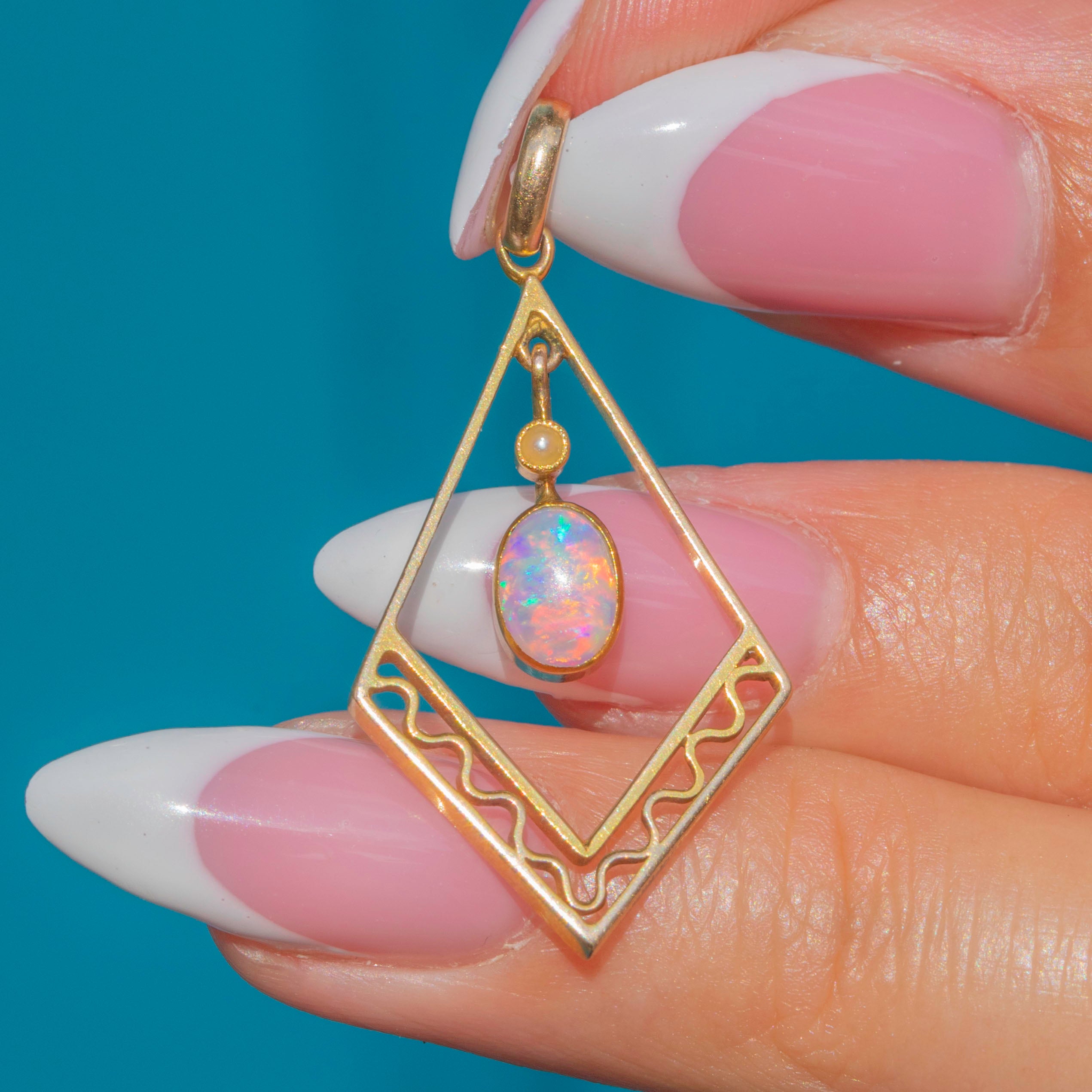 Antique 9ct Gold Opal Pearl Lozenge Pendant