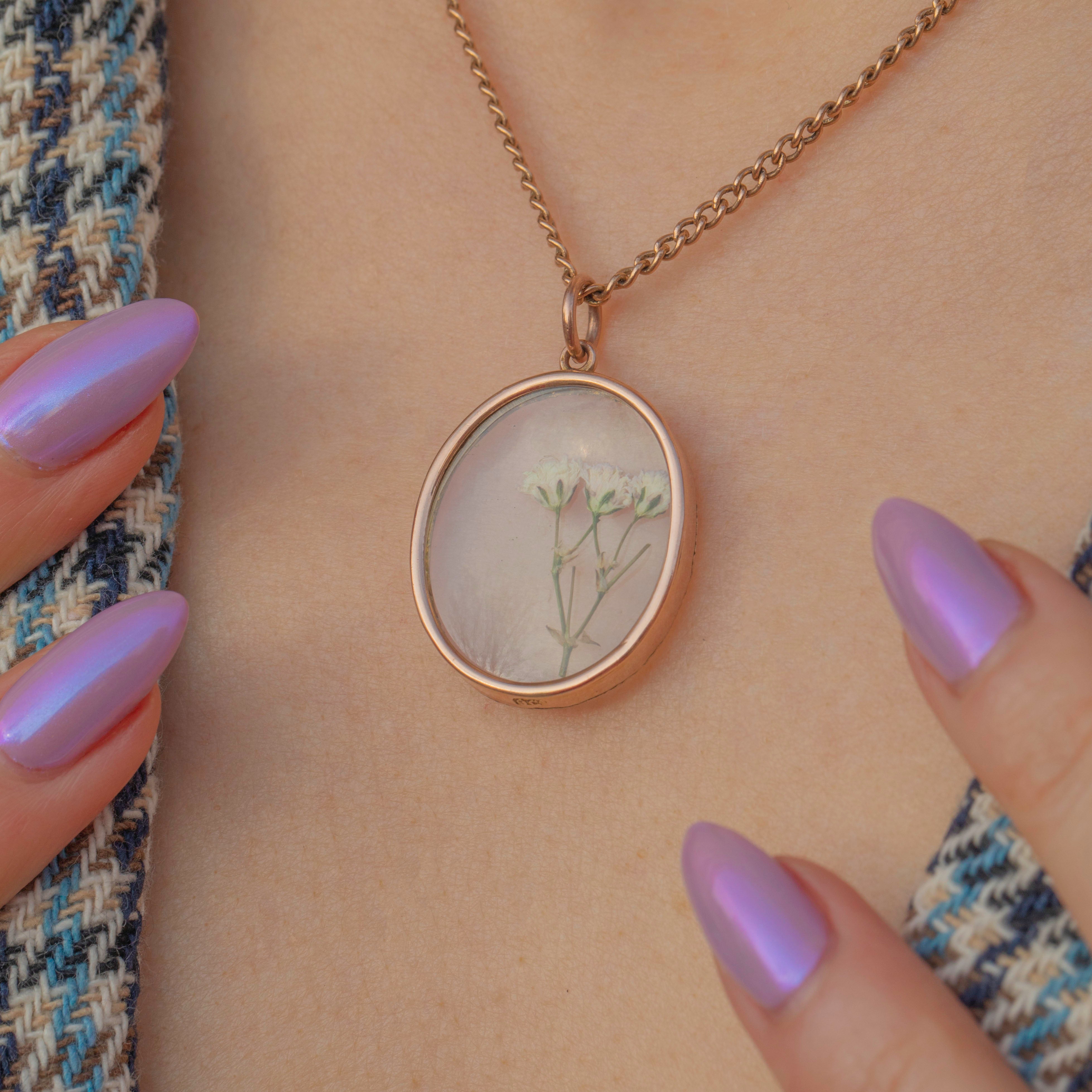 A small sprig of white blooms are encased within the glass panels adding a feminine finishing touch. The contents can easily be added to or replaced, providing you with endless styling possibilities and making this Edwardian locket a wonderful sentimental gift choice!