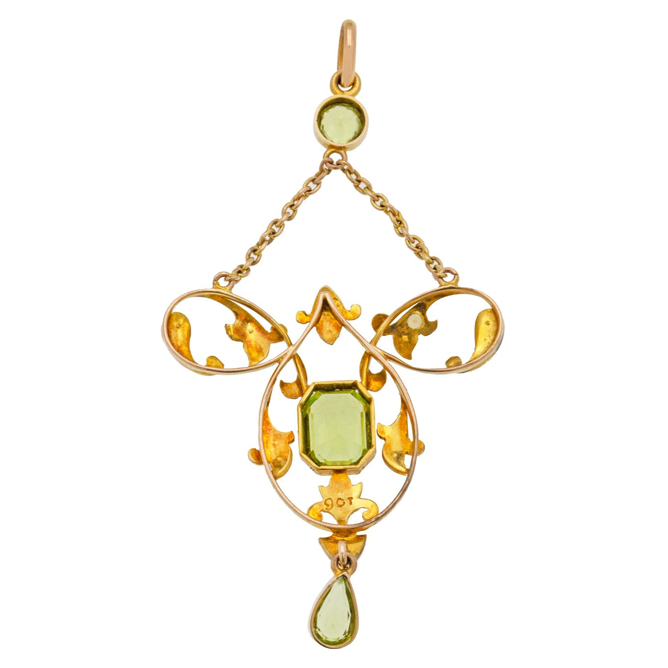This Art Nouveau pendant will make for a show-stopping adornment on your chest. We love the lime green hues from the Peridot, which is balanced beautifully by the Pearls! This feminine masterpiece will be a sure winner for you, and your collection.