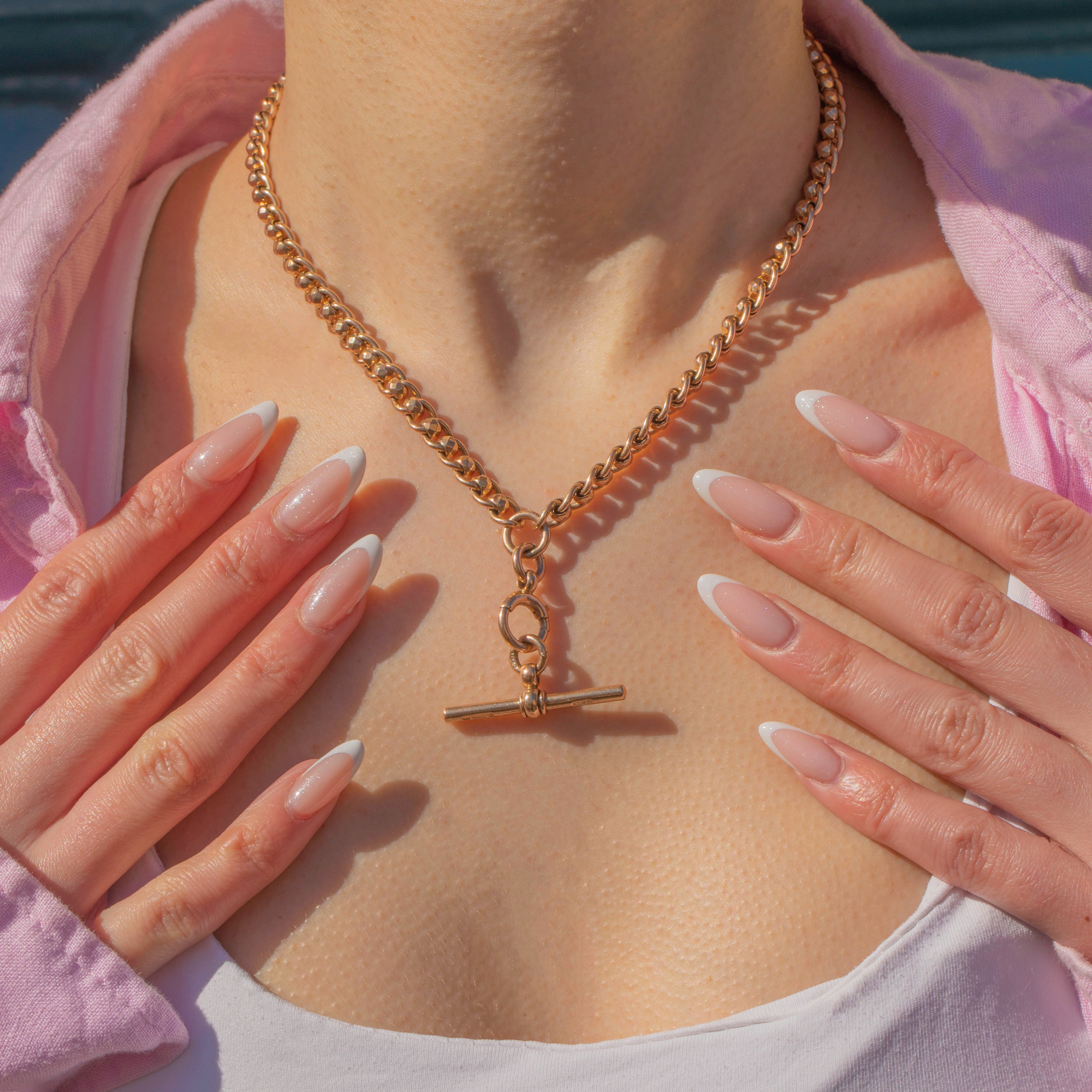 We love the styling potential of this solid Gold chain, picture it with your own pendant, favourite charms, or with its original T-bar taking centrestage! This rollerball Albert chain is a wonderful investment piece that will remain in your family for generations to come.
