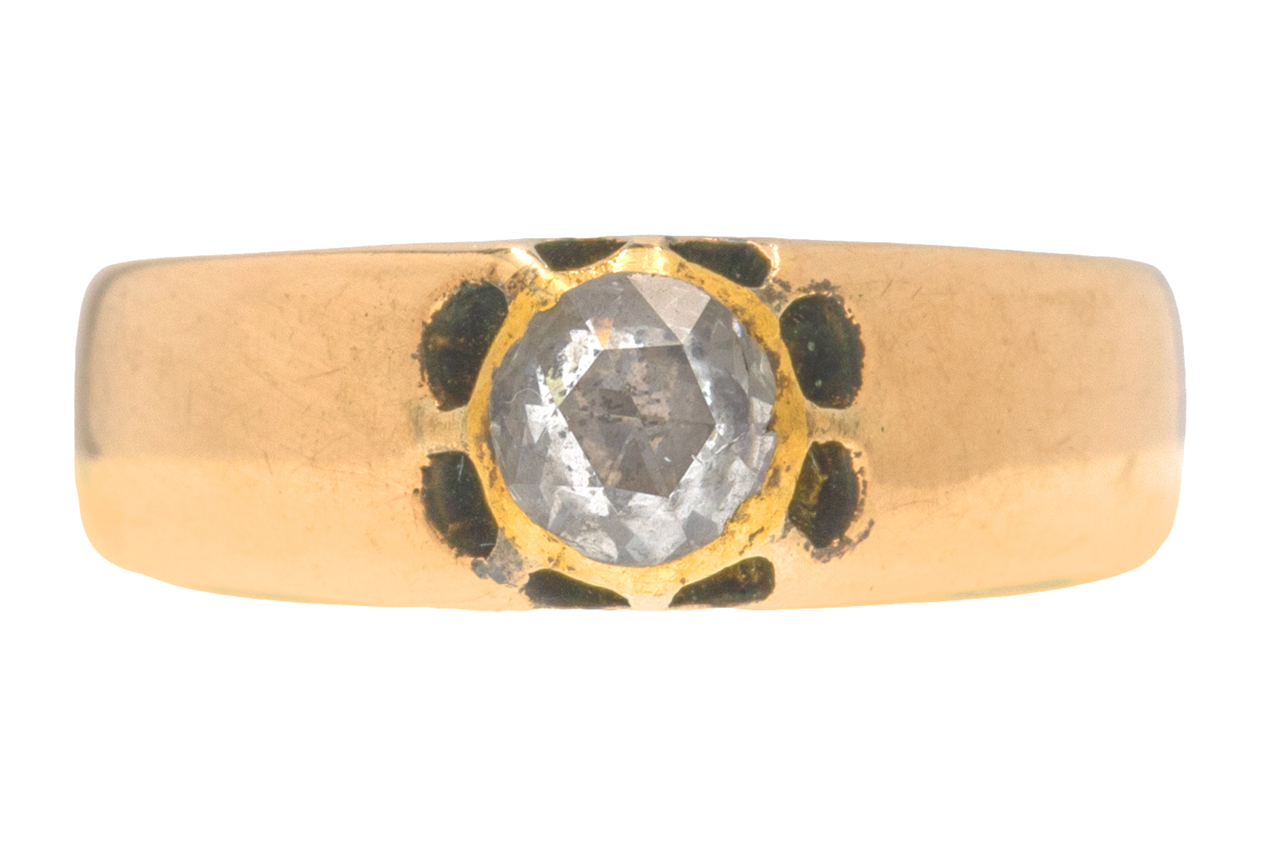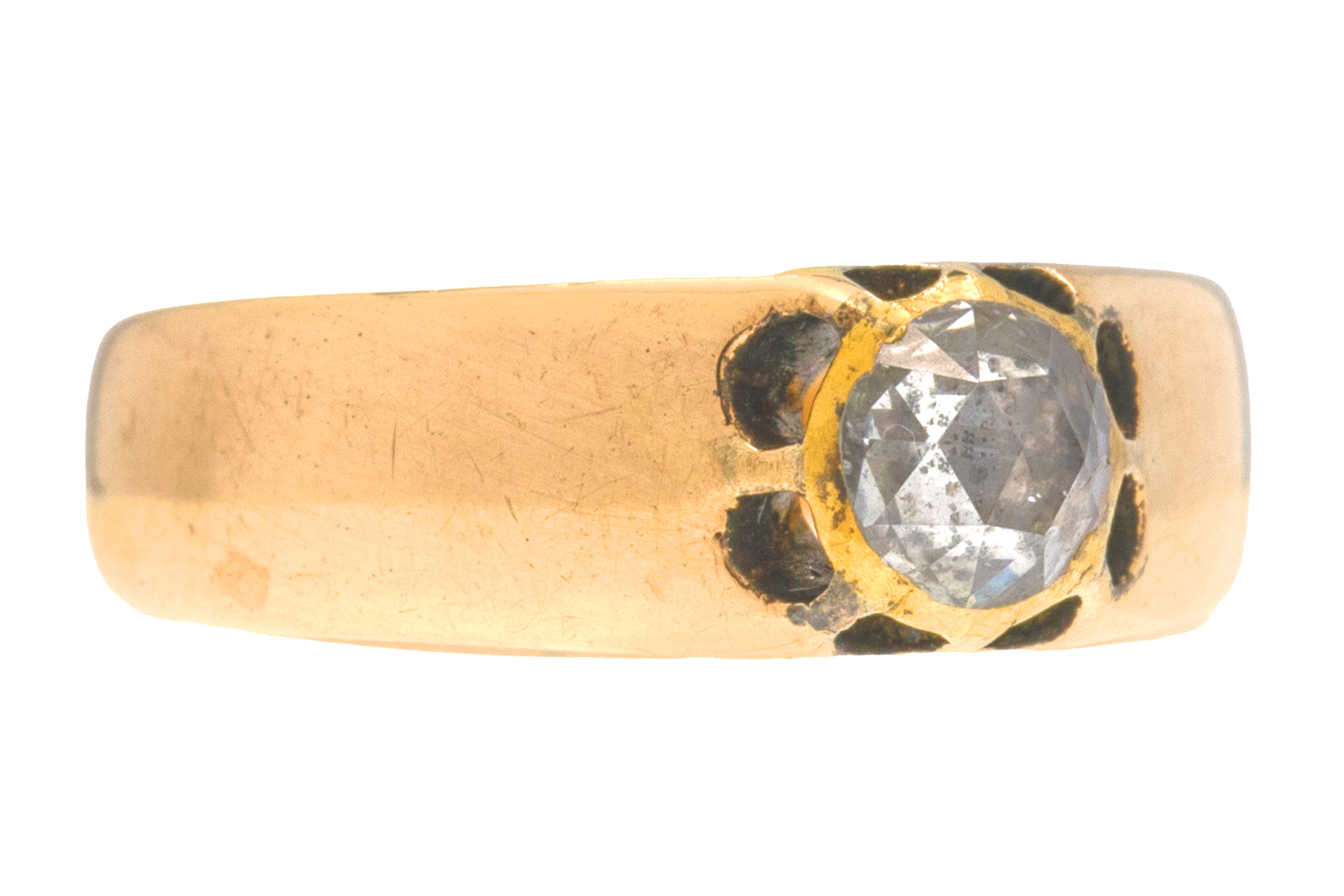 MATERIALS: 9ct Gold shank, 18ct Gold settings, rose-cut Diamond (0.26ct).