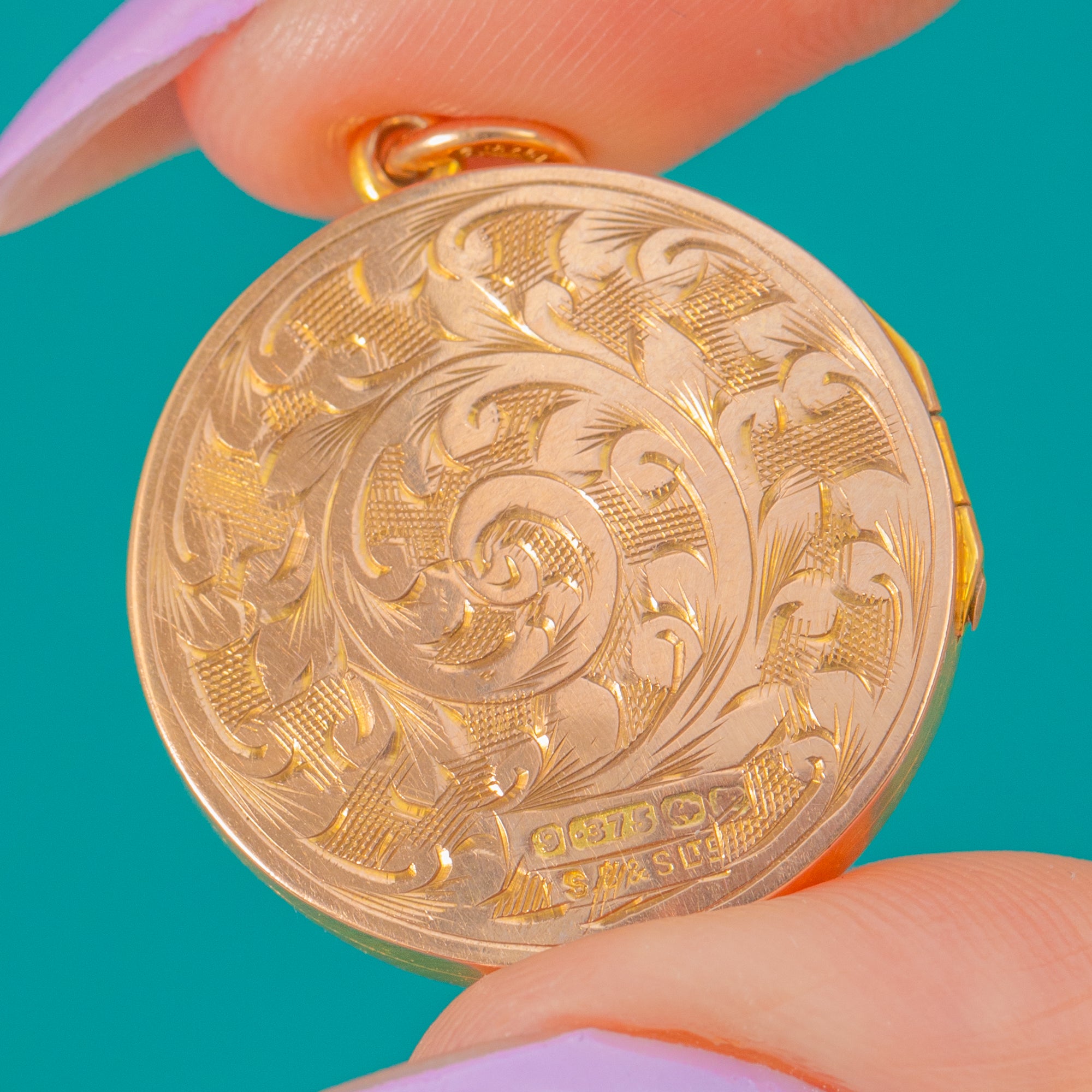 Antique SOLID 9ct Gold Round Engraved Locket, 1914
