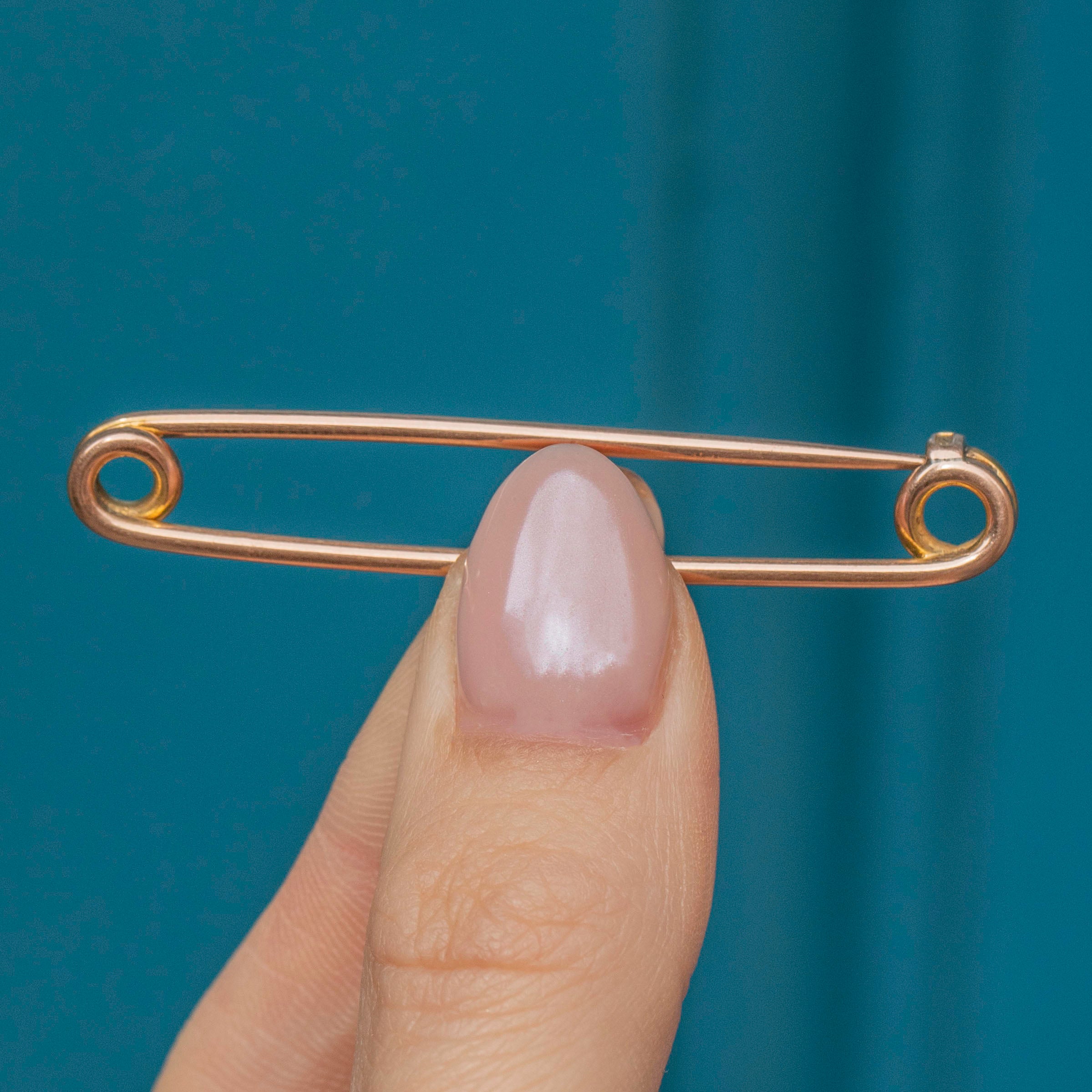 EXCELLENT. This antique 9ct Gold stock pin is in excellent condition! Her 9ct Gold is glossy, radiant, and smooth to the touch. The pin effortlessly clasps and stays securely shut when worn. There is little to report, this versatile stock pin will become an essential piece in your collection.