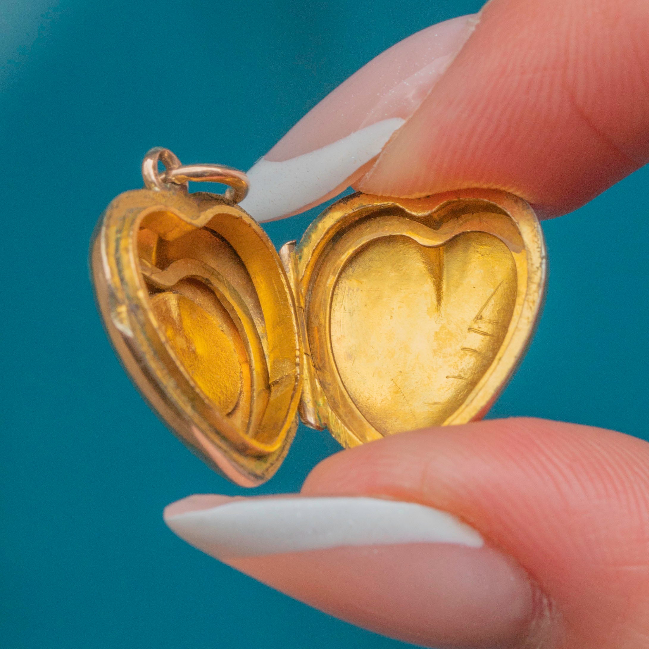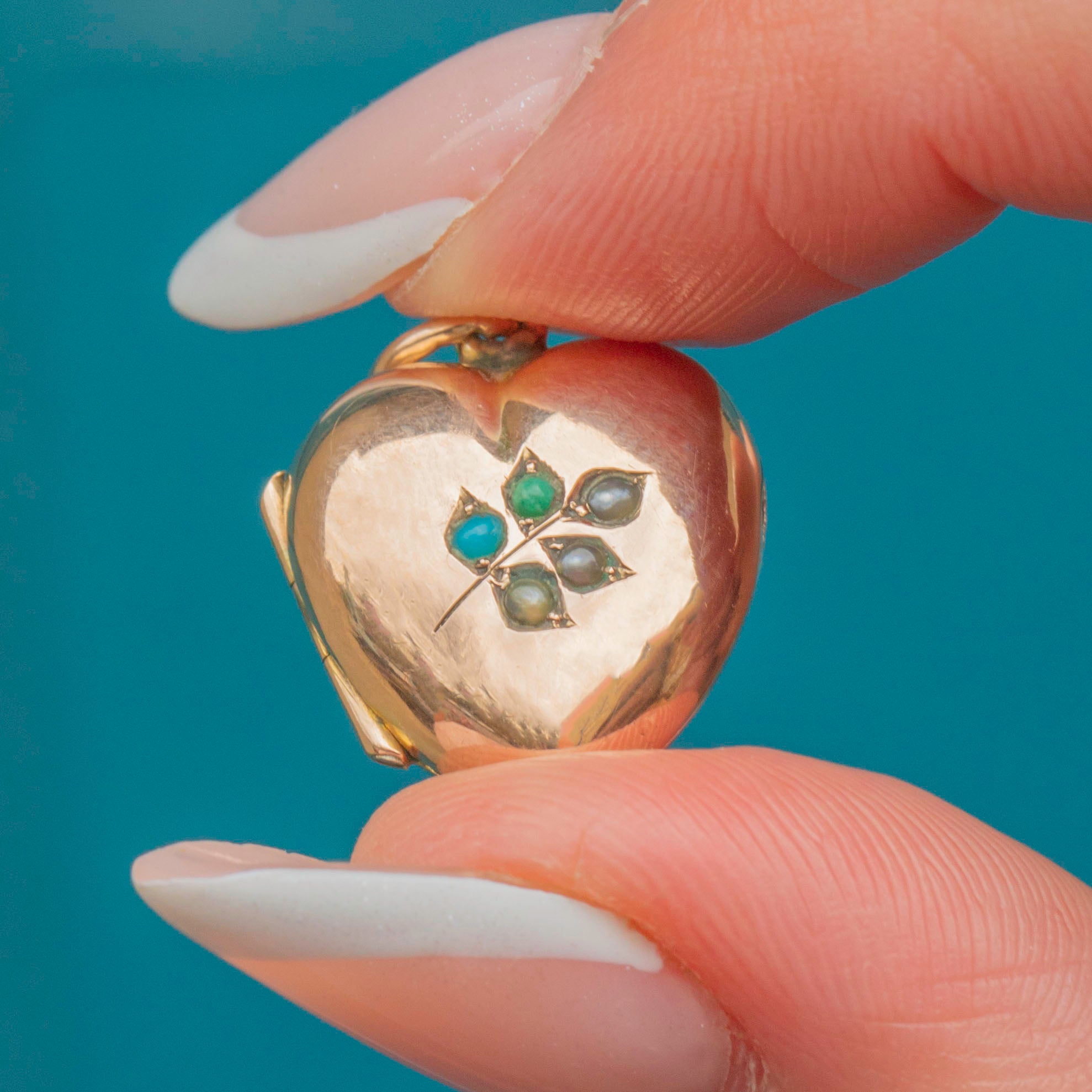 A timeless symbol of love, this antique 9ct Gold Turquoise Pearl puffy heart locket would make a beautiful gift choice! The satisfying, puffy heart form is crafted from sumptuous 9ct Gold with a high-shine polish that glints in the light.
