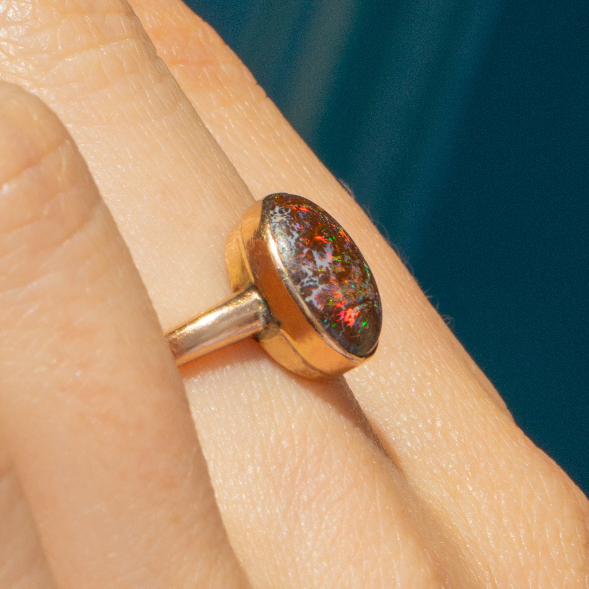 This phenomenal antique 9ct Gold Wood Opal ring is guaranteed to add some intrigue to your collection! Crafted from solid 9ct Gold, this Victorian ring has a superb cabochon-cut Wood Opal boasting a confetti display of neon colours across its smooth surface.
