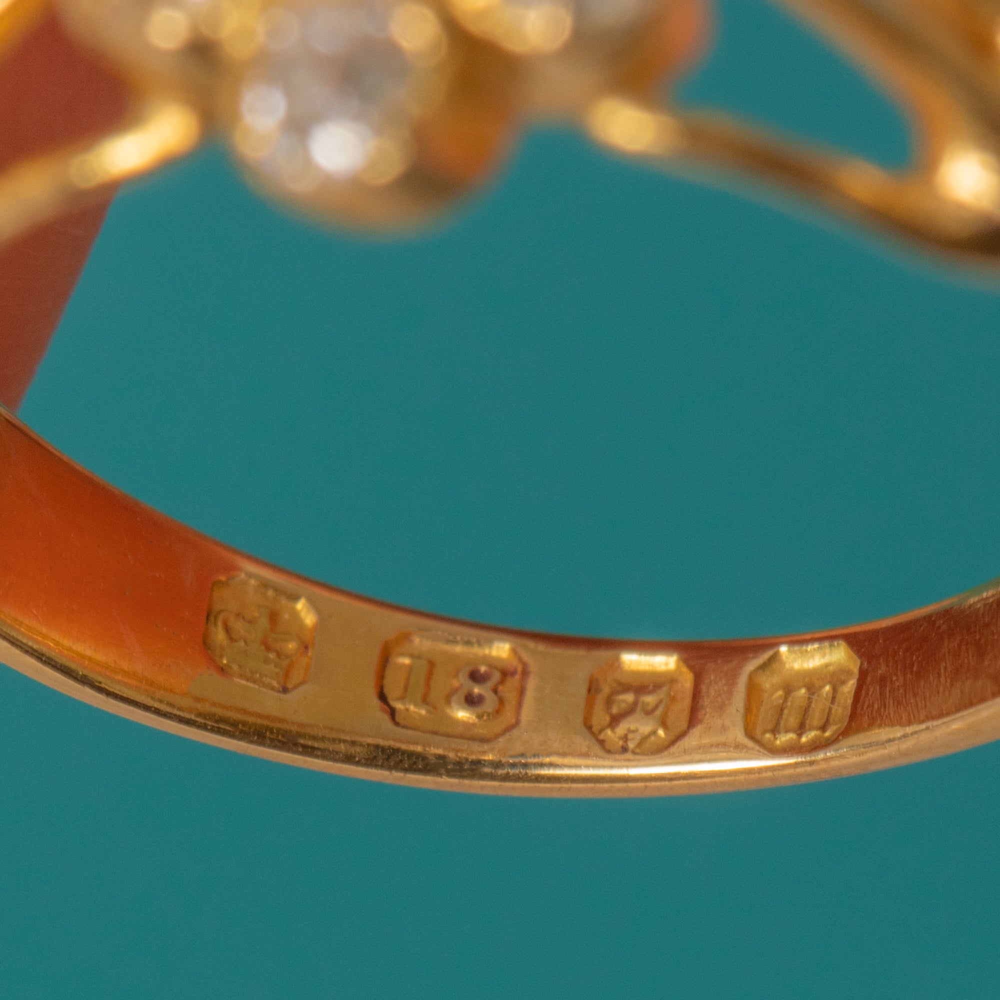 HALLMARKS: Crown for Gold, “18”, London leopard’s head, date letter “m” for 1927.