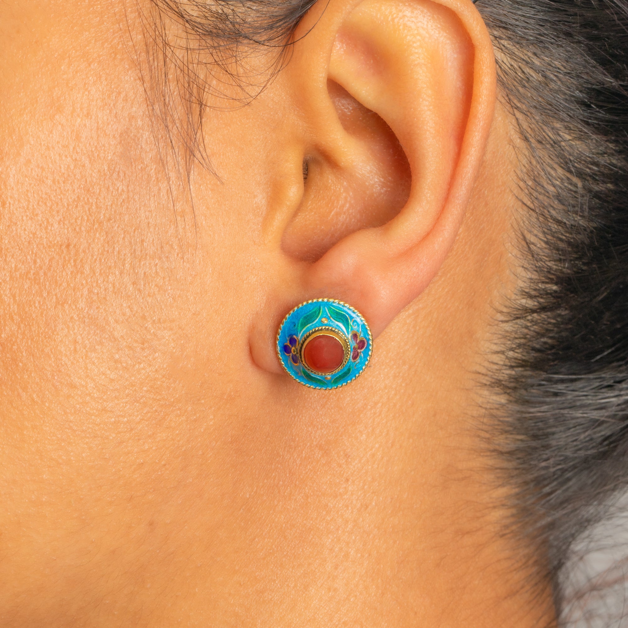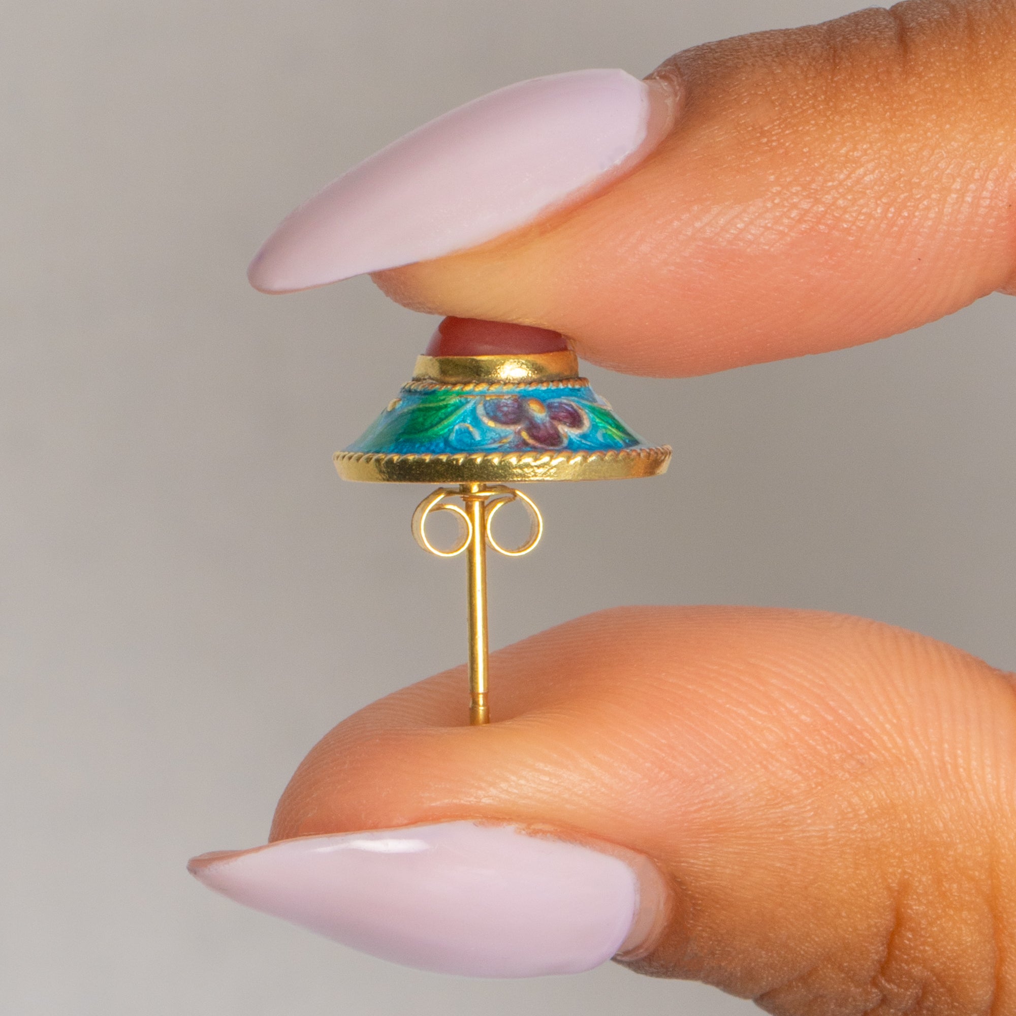 These antique Carnelian Enamel stud earrings are bursting with colour! Elevated at the centre of each earring sits a Carnelian cabochon with warming burnt orange hues that ignite beneath the light.