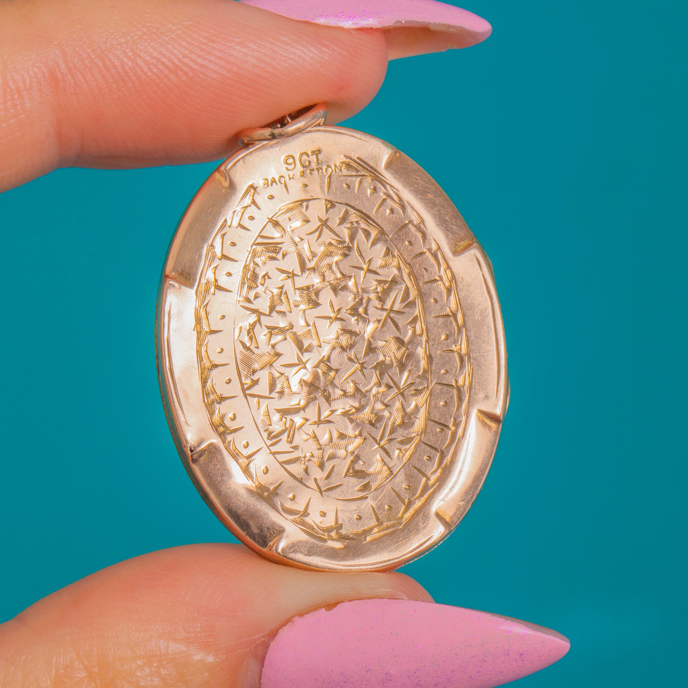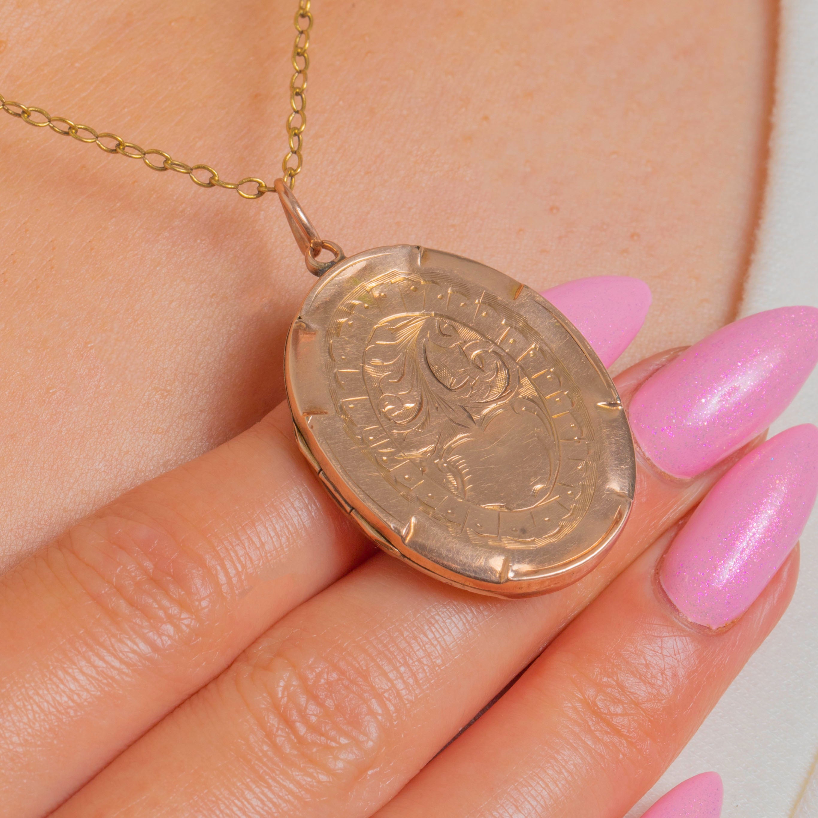 Antique Edwardian 9ct Rosy Gold Engraved Oval Locket
