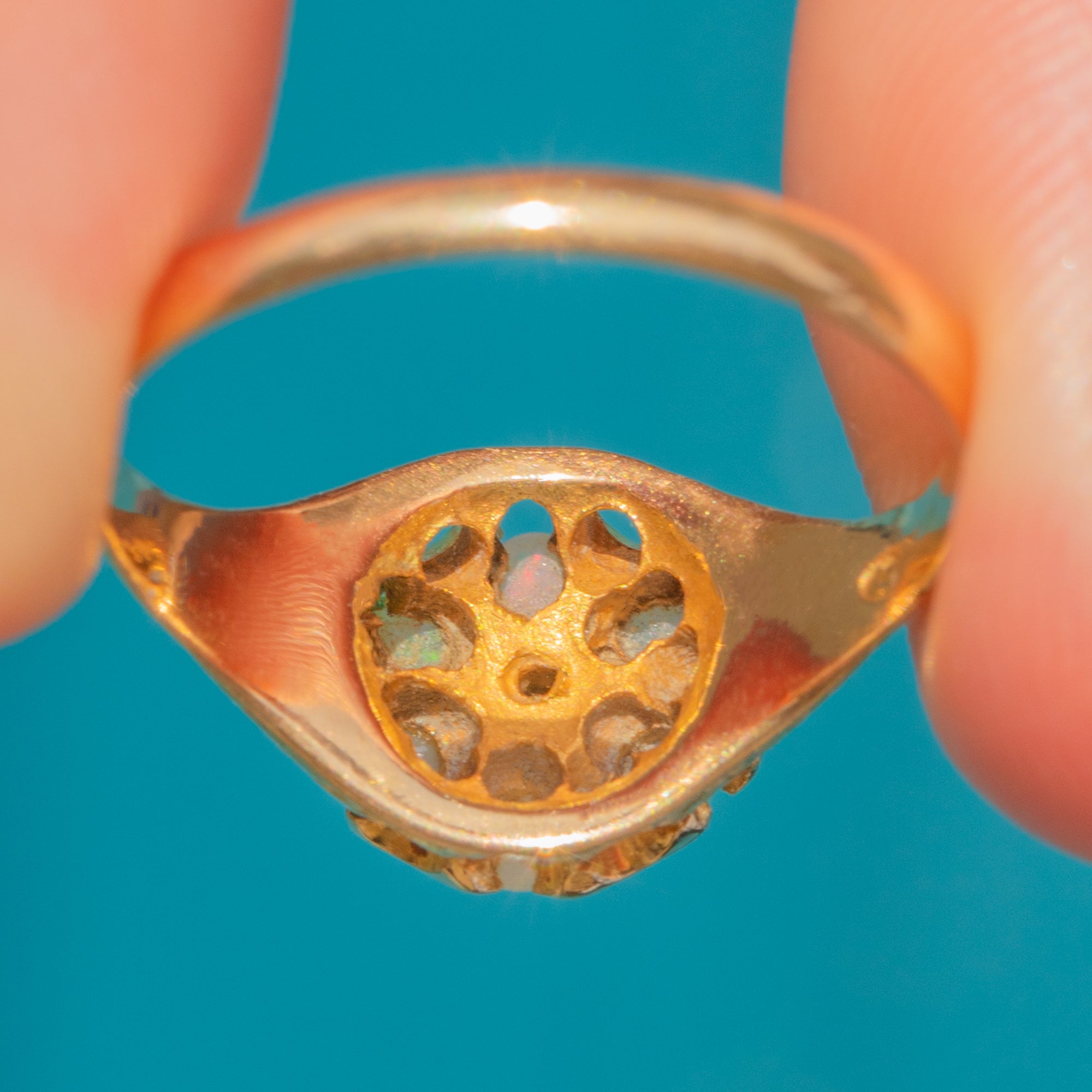 Antique Engraved 18ct Gold Opal Diamond 'Star' Cluster Ring