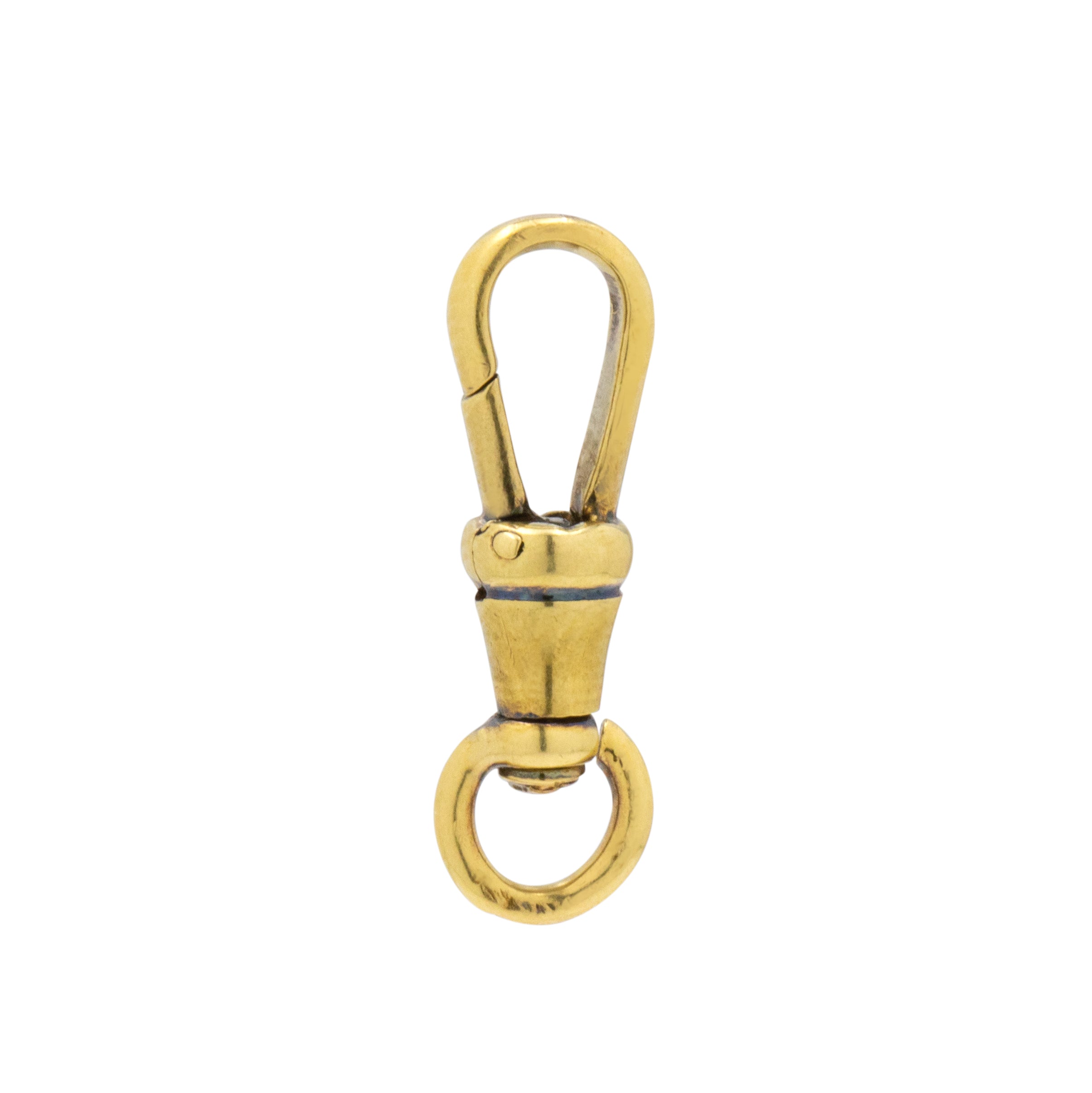 EXCELLENT. This antique 18ct Gold dog-clip charm holder is offered in excellent condition. The Gold has an even saturation throughout and will attend to all of your charm holding needs! Most importantly, the dog clip has excellent spring-back and will hold any charm safely in place.