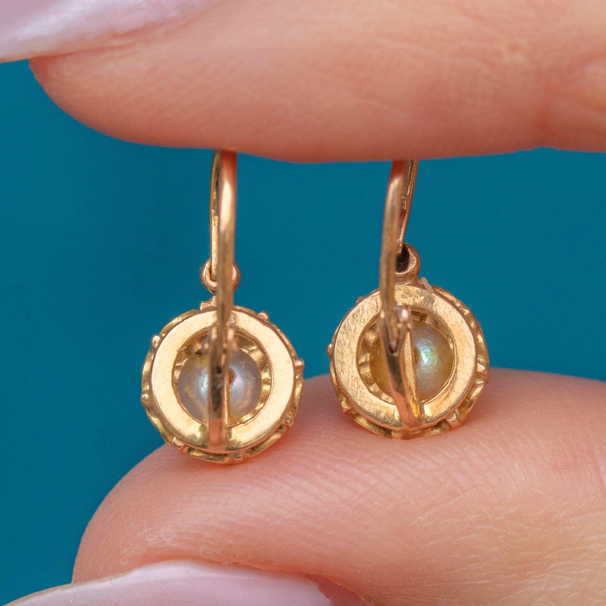Antique French 18ct Gold Pearl Dormeuse Earrings