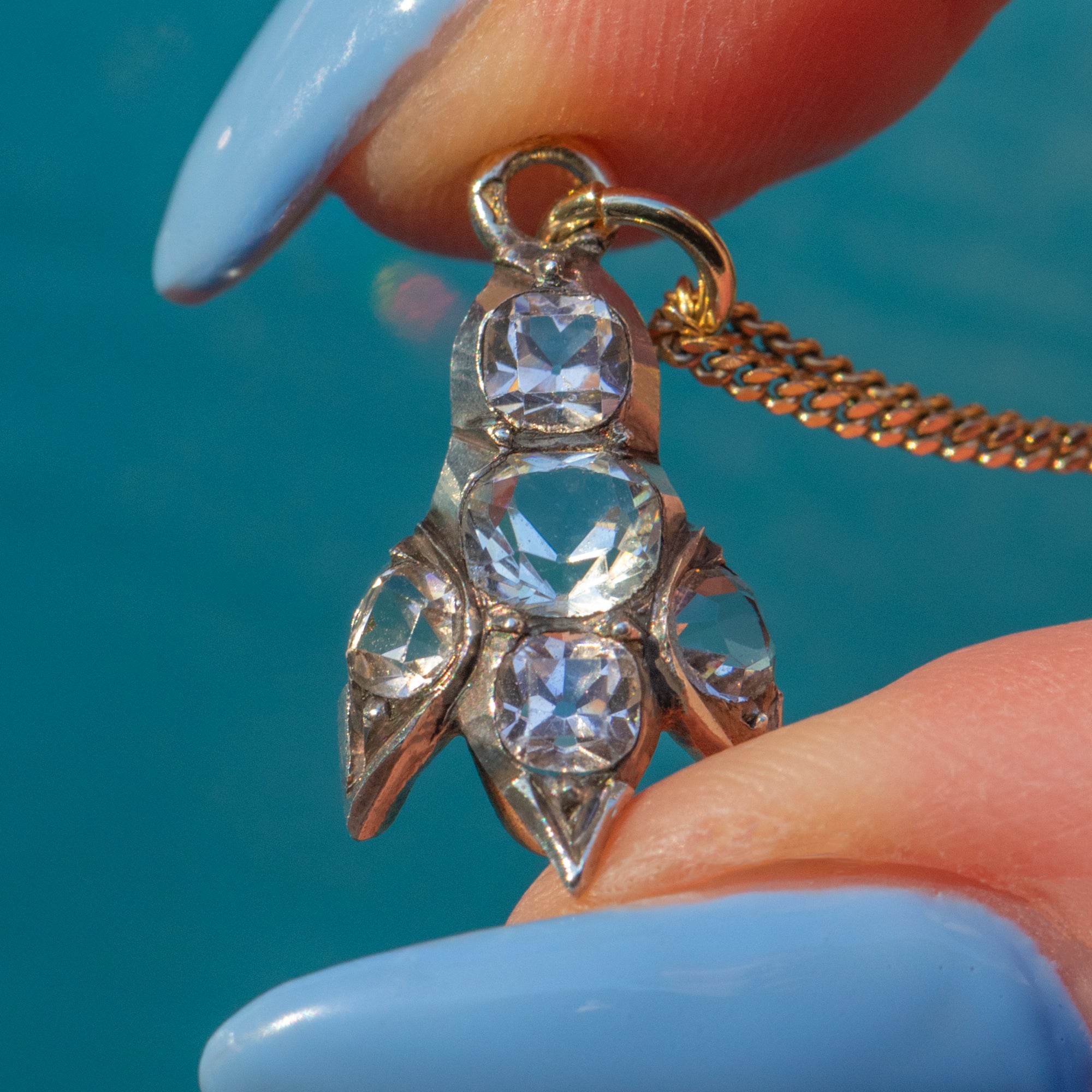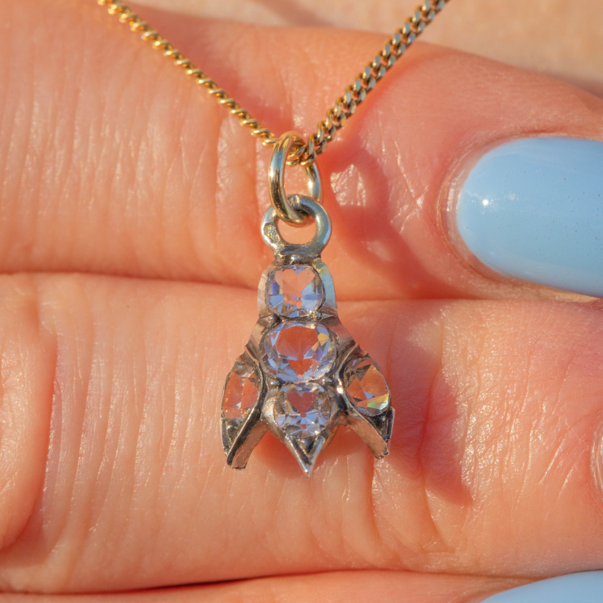 This pretty antique French Silver Paste fuchsia drop charm is the perfect dainty treasure for everyday wear. Crafted from Silver and inlaid with glimmering hand-cut Paste gems, this Victorian pendant takes the form of an elegant fuchsia flower.
