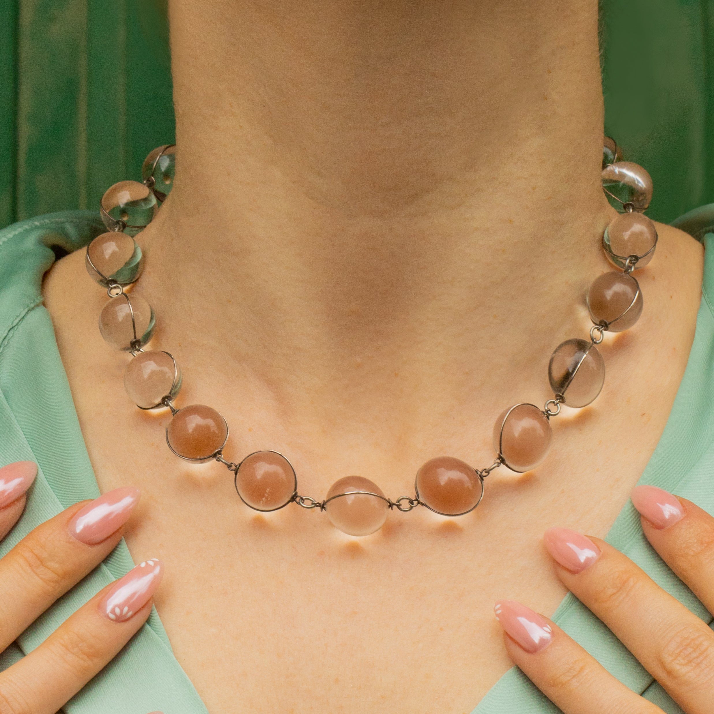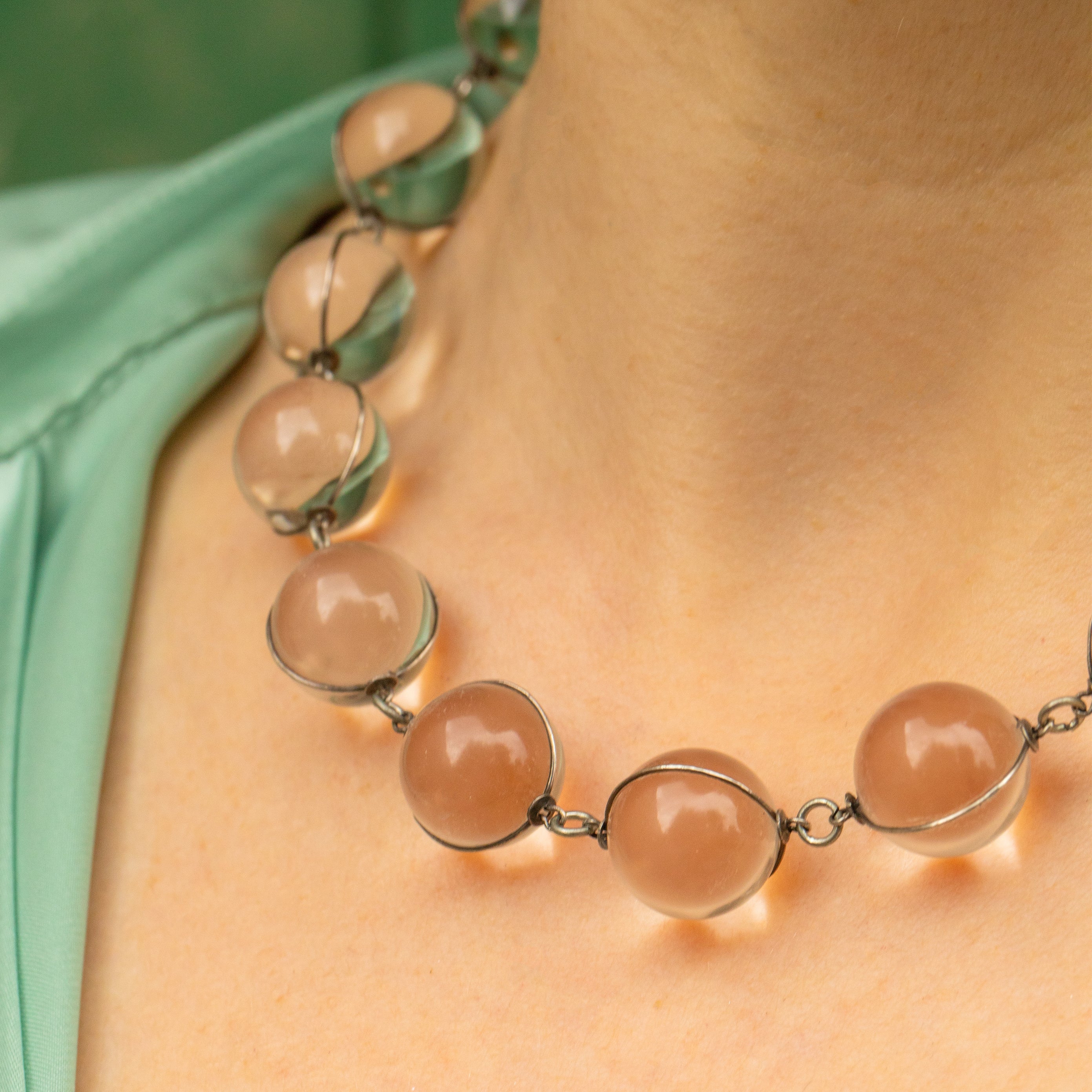 This antique Rock Crystal Pools of Light necklace is a rare treat! Complete with 19 exquisite antique polished Rock Crystal spheres, you will have so much fun wearing this statement necklace.