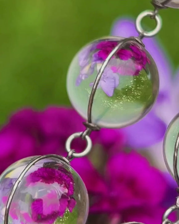 MATERIALS: Tests as Sterling Silver cages, metal connecting jump-rings, Rock Crystal orbs.