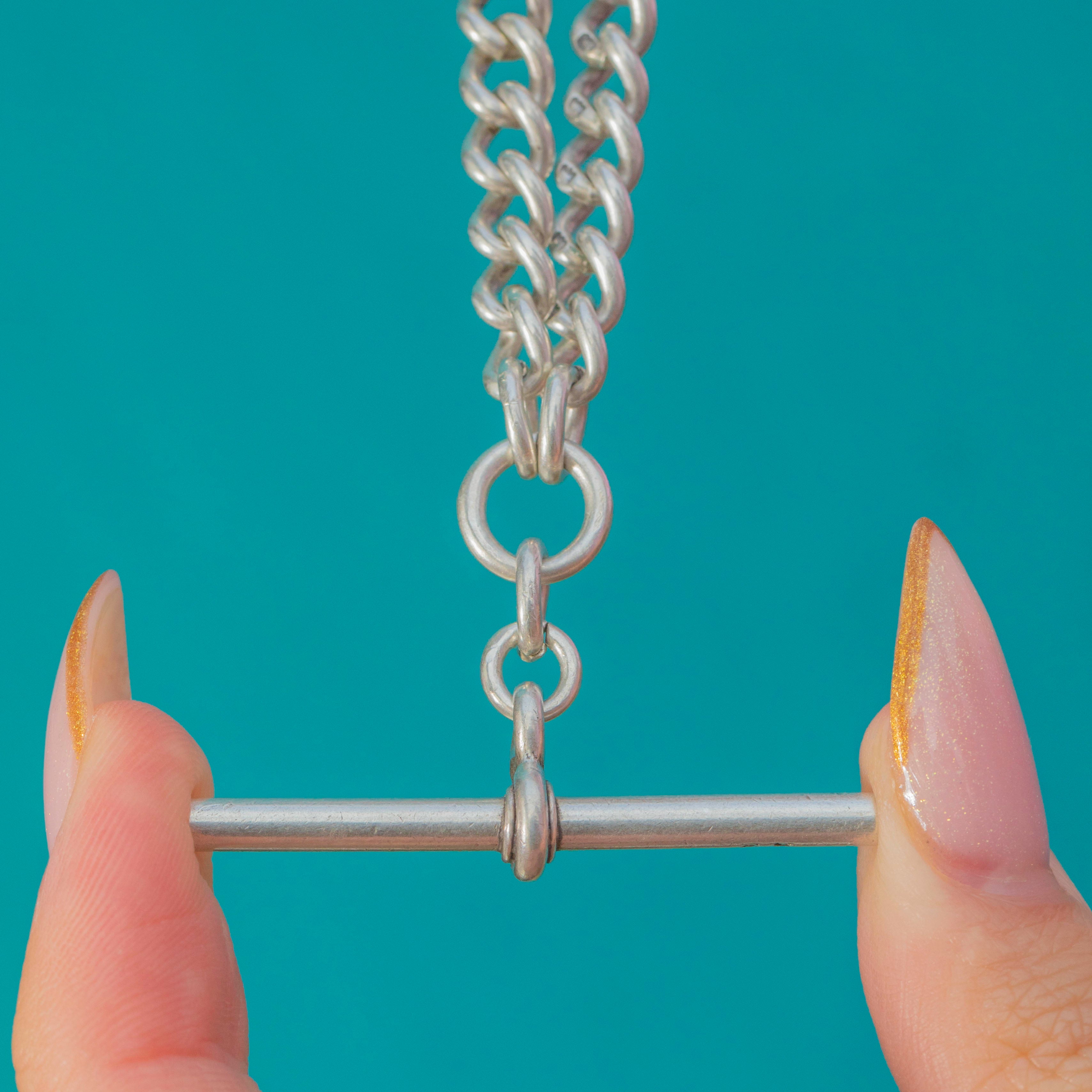 Antique Silver Albert Chain with Matching Dog-Clips & T-Bar