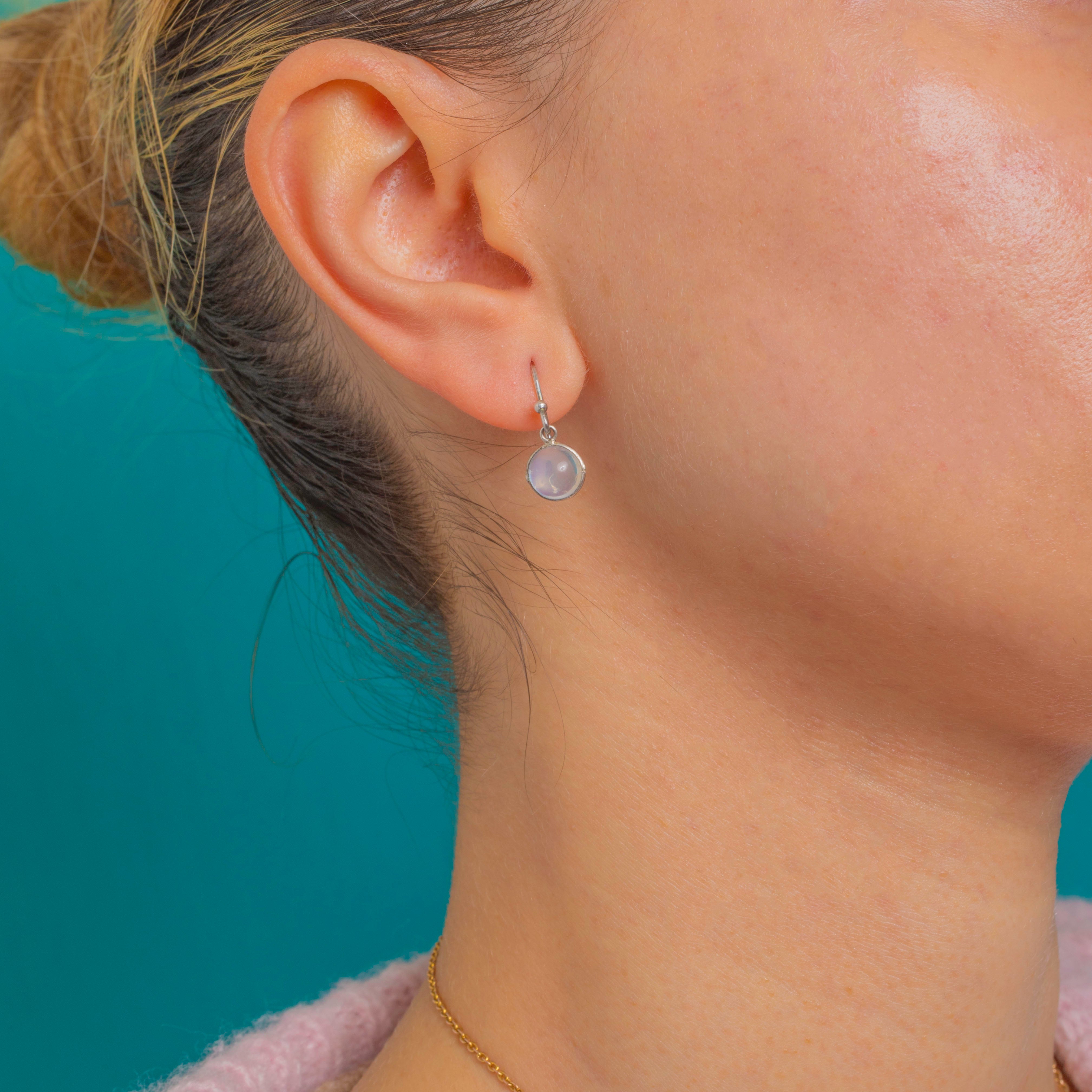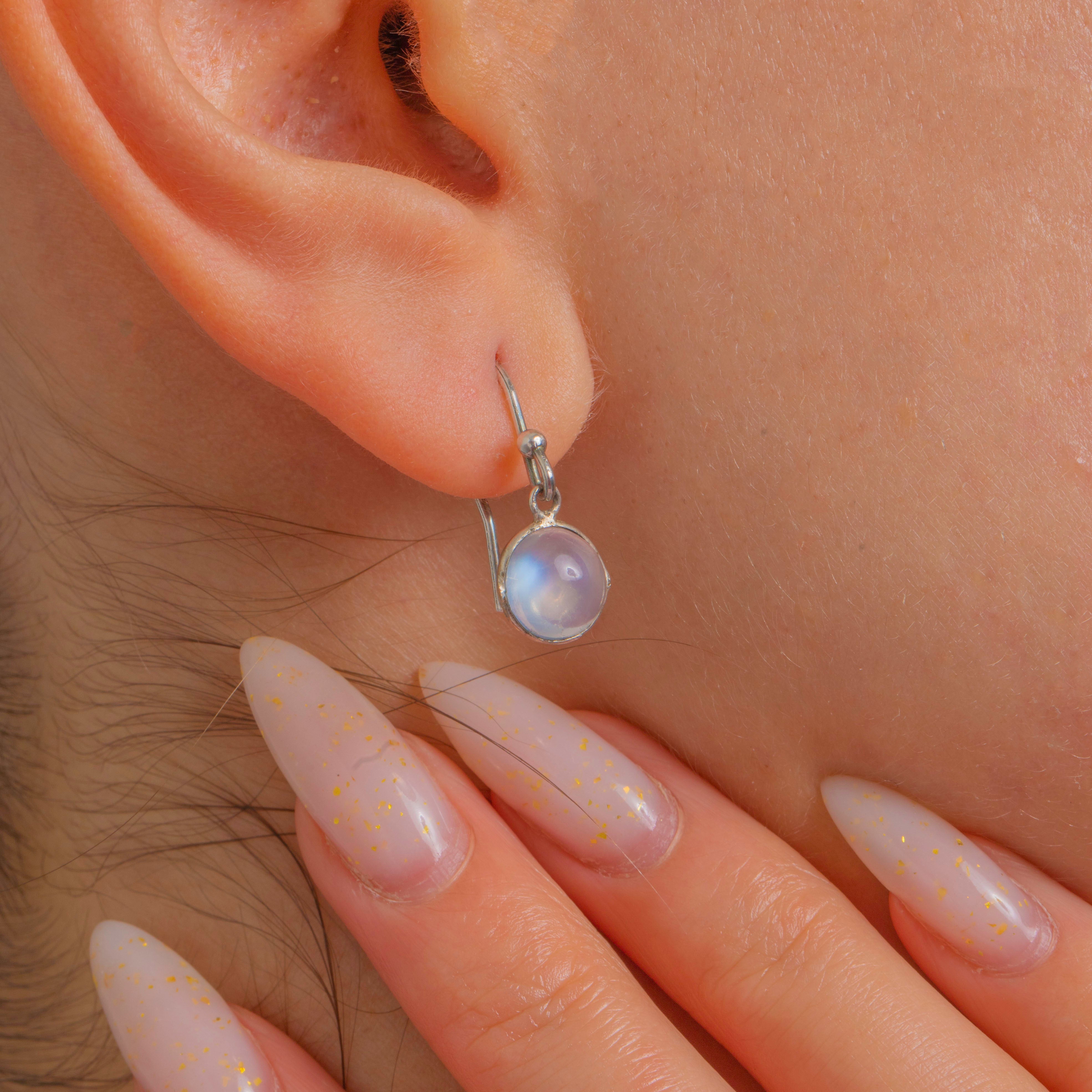 The minimalist circular silhouette feels wonderfully refined, with subtly hand-finished bezels that add character without fuss. Wear them day to night—the luminous Moonstones do all the talking.
